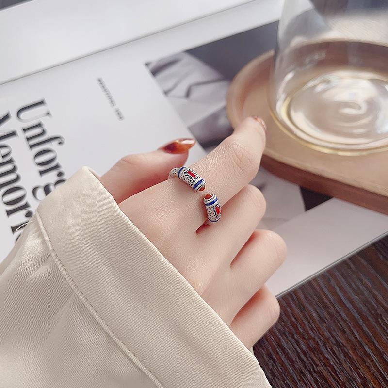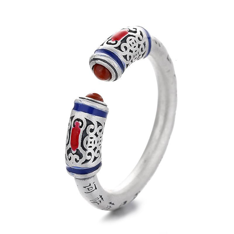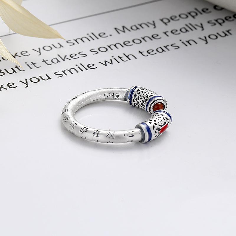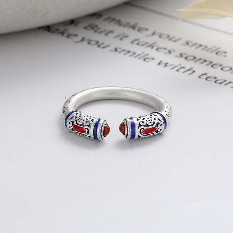 Wu Lin retro do ágata roja del sur viejo tallas de sutra del corazón moda antigua nacional anillo abierto directo de fábrica plata