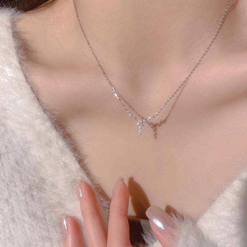 Collar de estrella intermitente, collar de estrella hueca de diamante de lujo ligero, cadena de clavícula de estilo frío simple para mujer, accesorios de moda