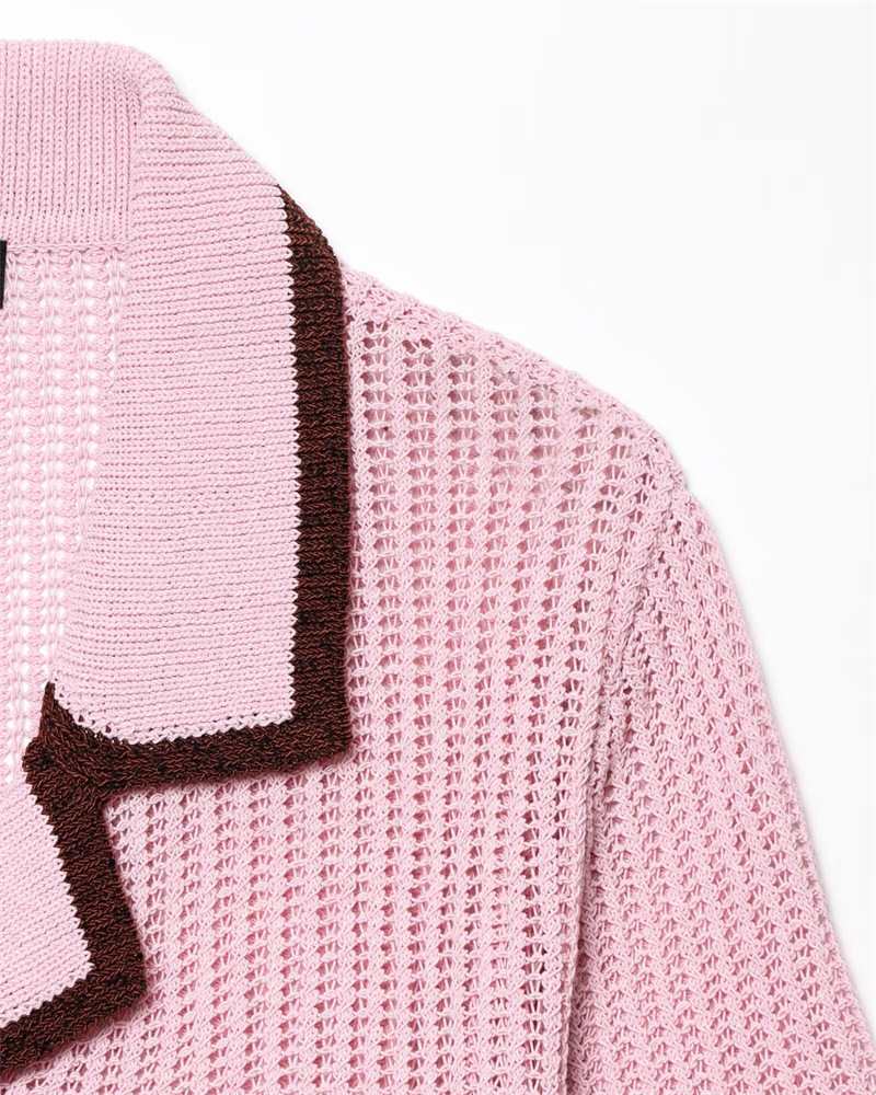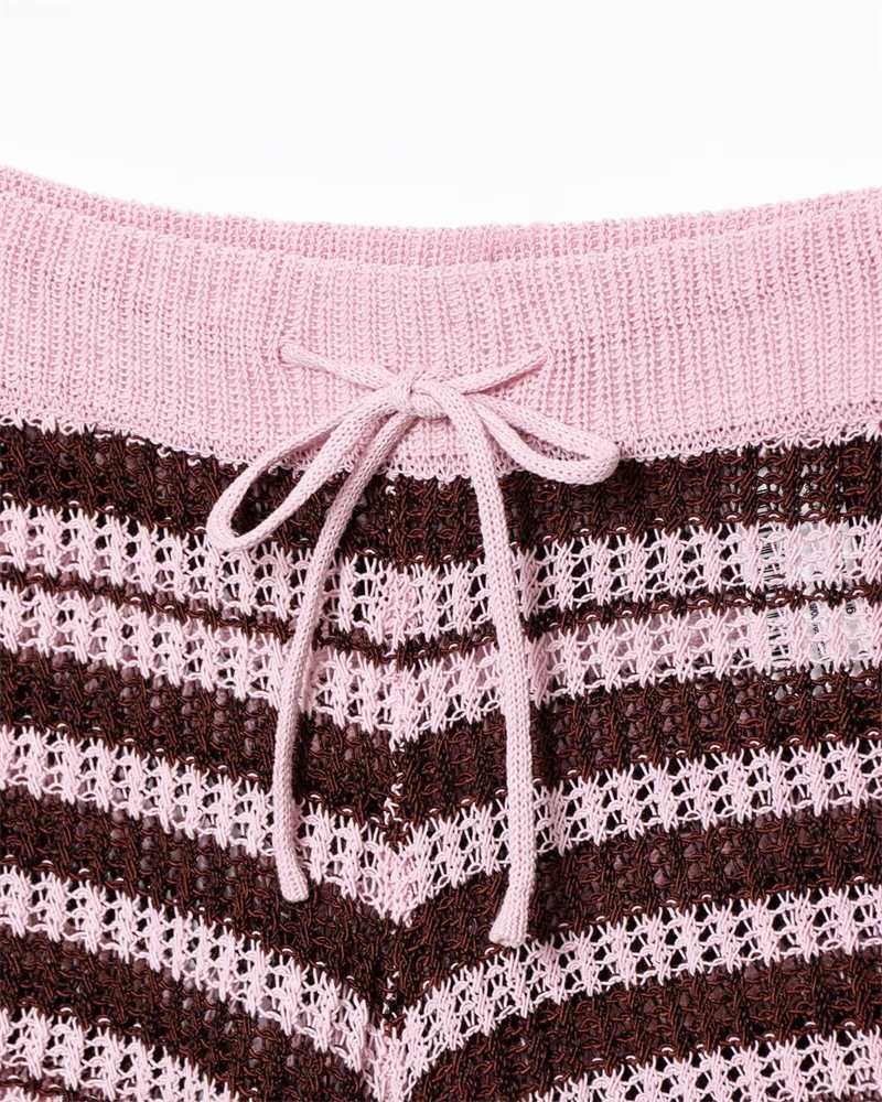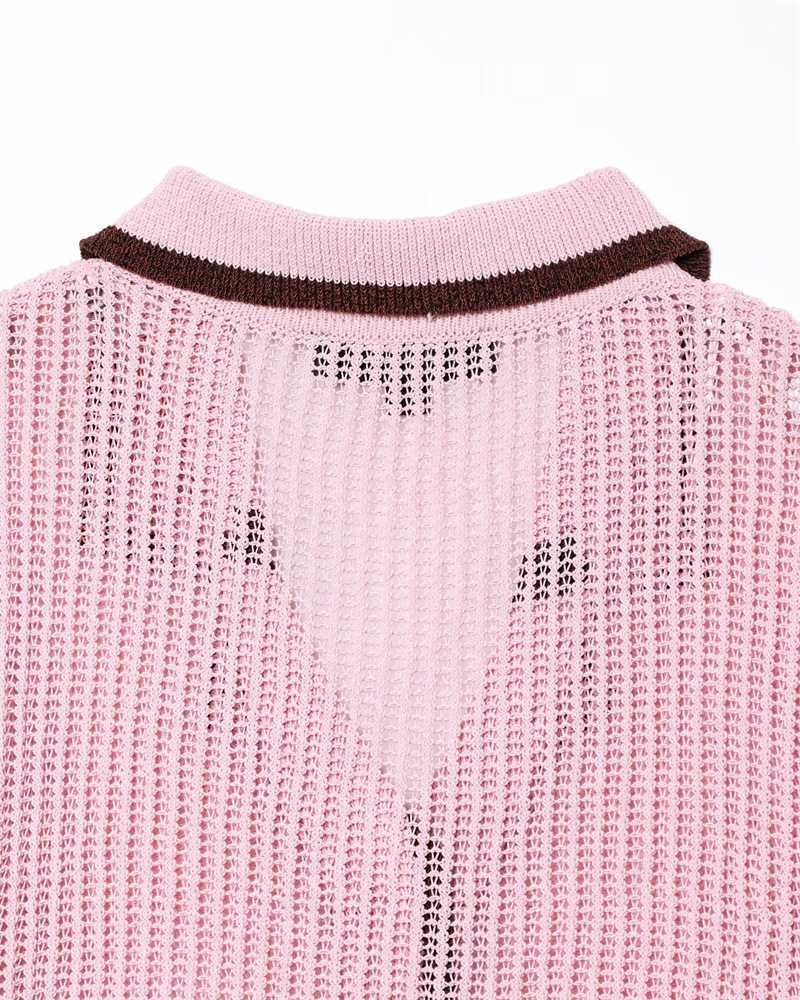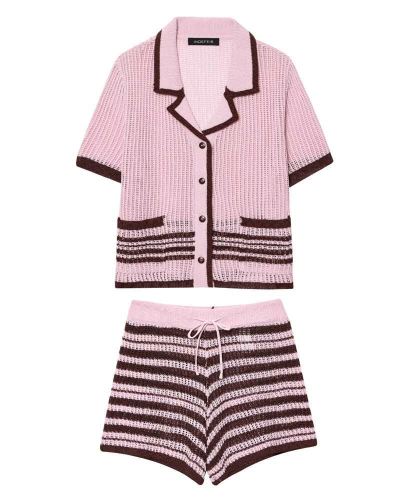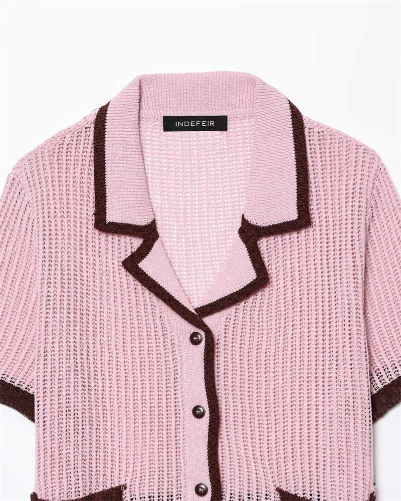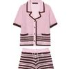 Shorts con Diseño de Primavera con Cordones Tops de Punto Nuevo Solapa Manga Corta Traje Casual Comercio Exterior