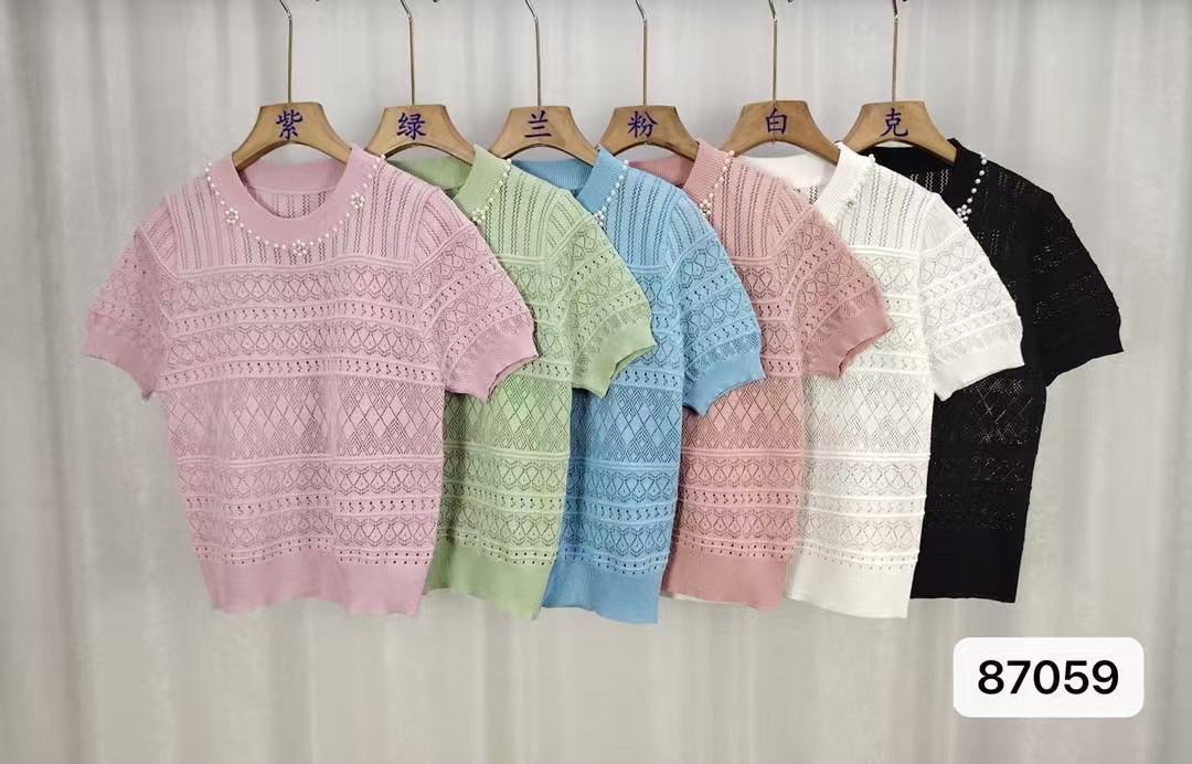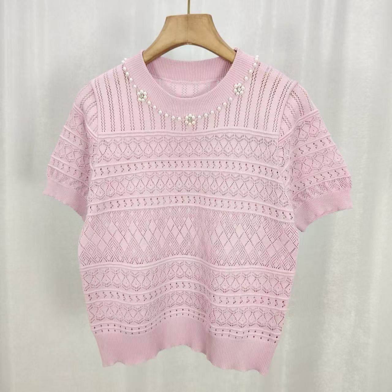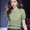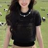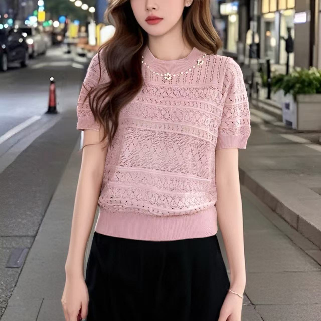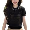 Suéter corto de punto con temperamento calado de diseño veraniego, camiseta de manga corta dulce y chic de nicho francés, prenda exterior