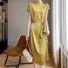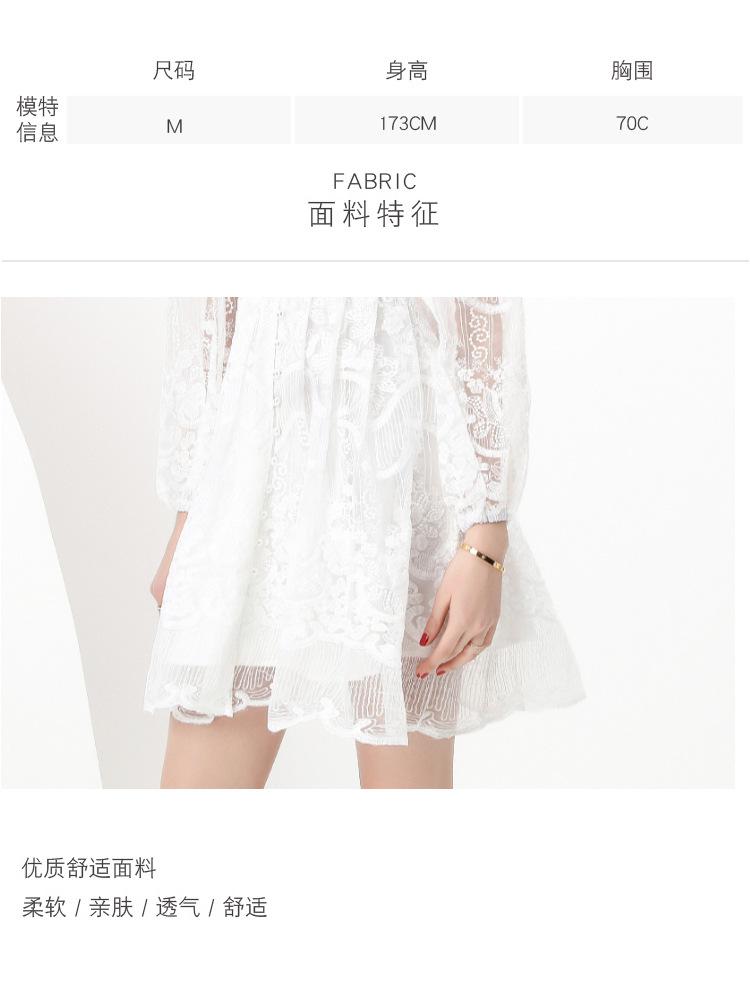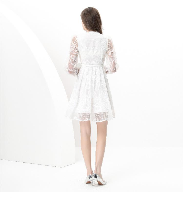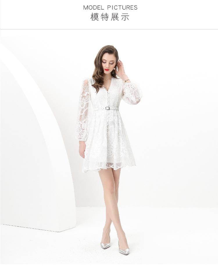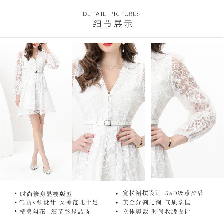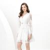 Vacaciones 2025 - Vestido Mini de Encaje Estilo Palacio Cuello en V Manga Larga Cinturilla Bajo Ancho