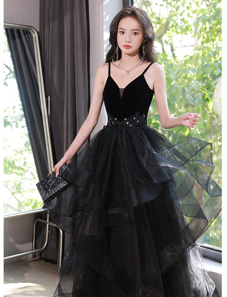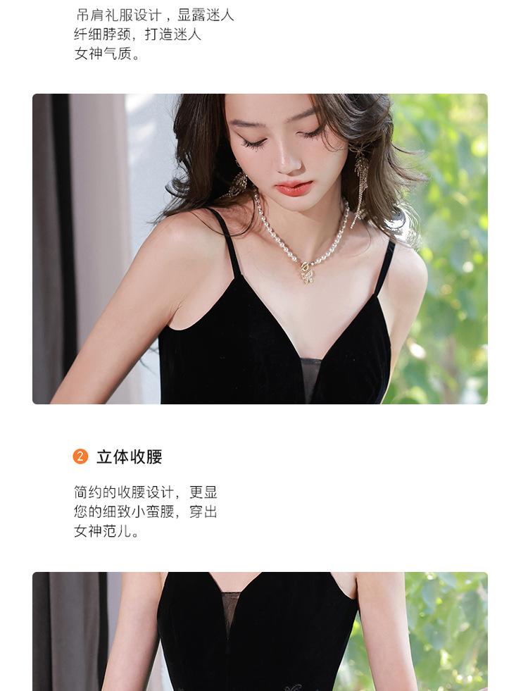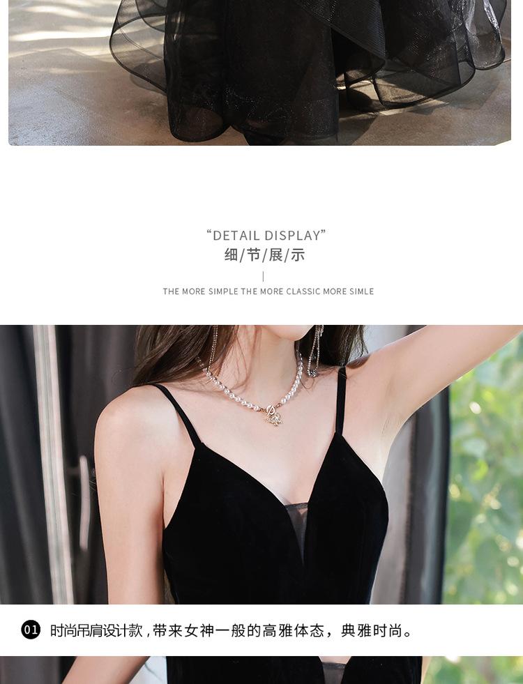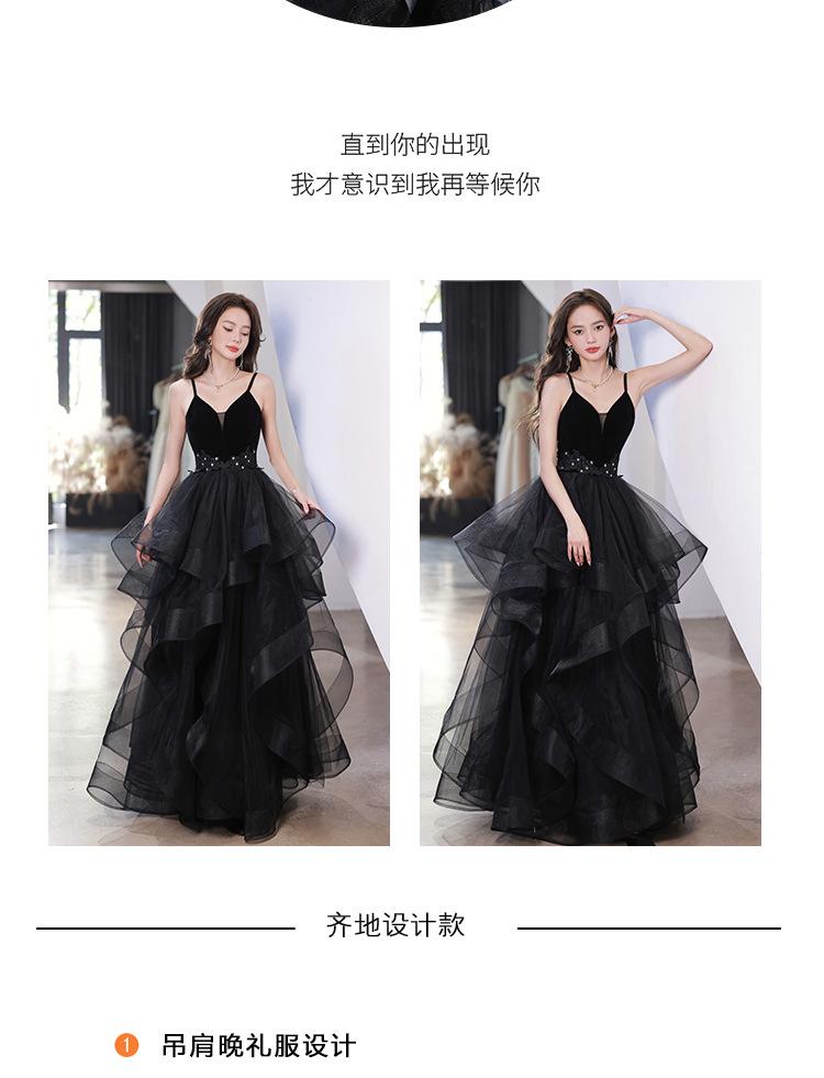 Vestido de Noche Negro con Tirantes 2025 Nuevo Elegante Dama Hada Vestido de Noche Moda Vestido Sexy Venta al por Mayor