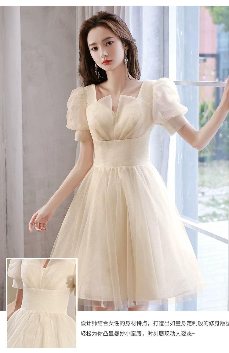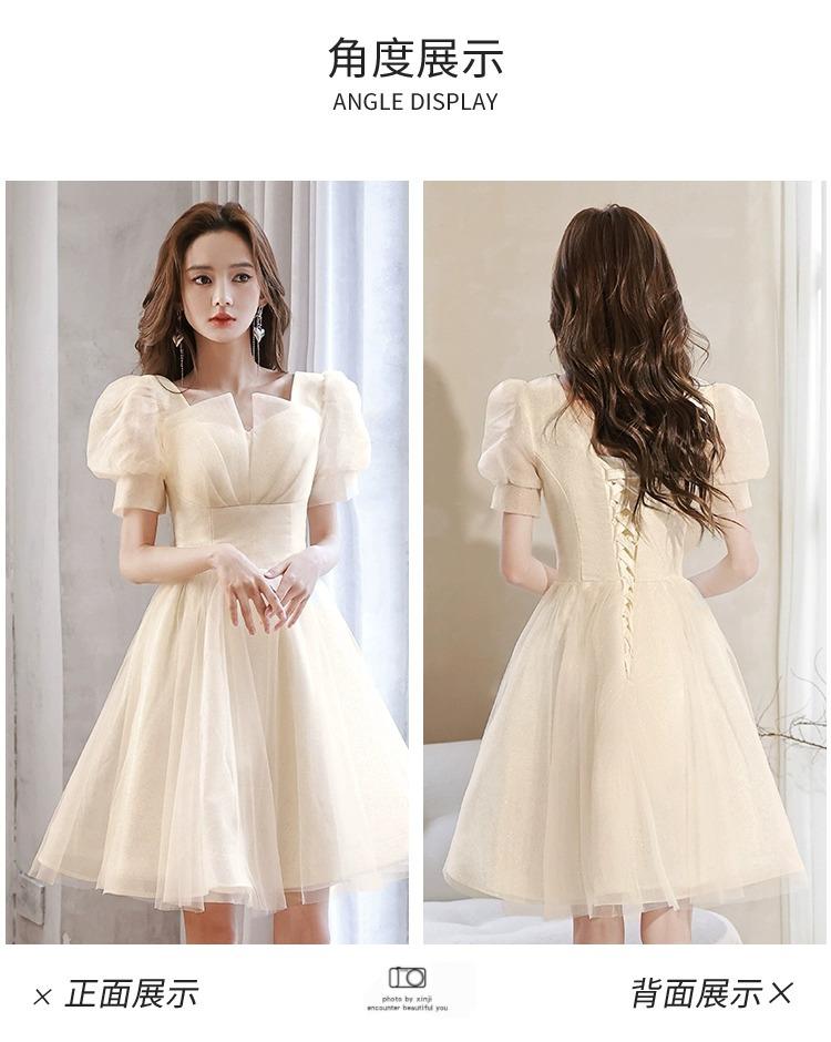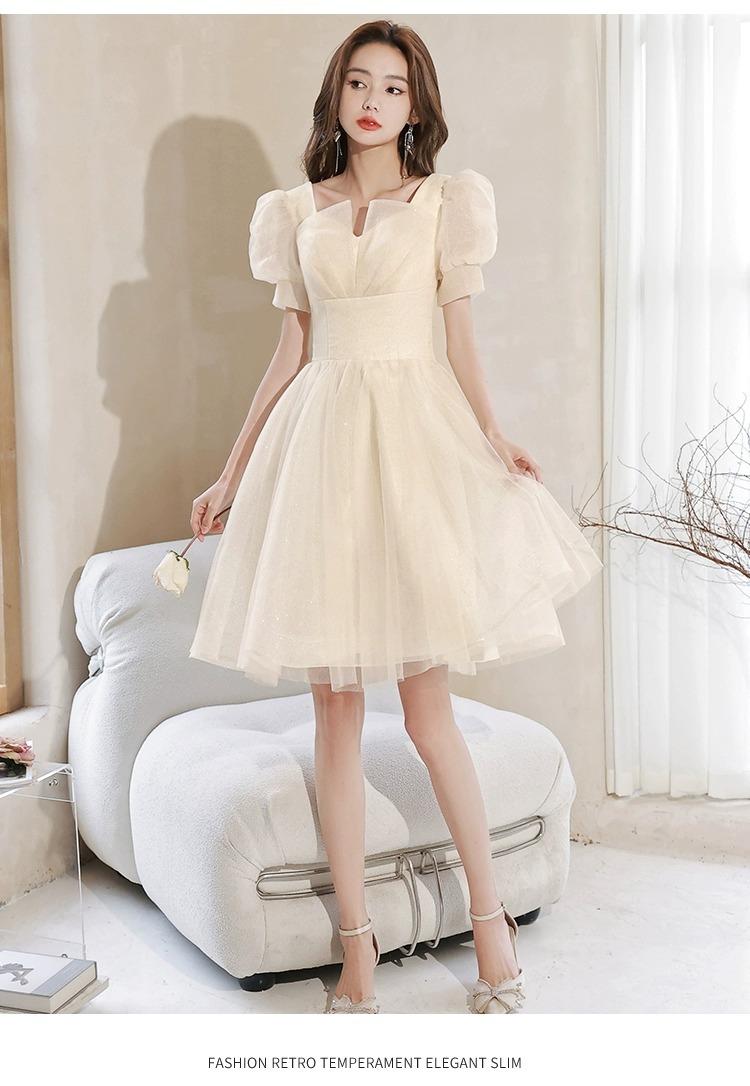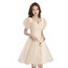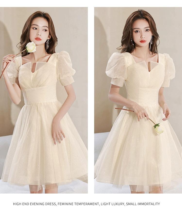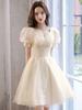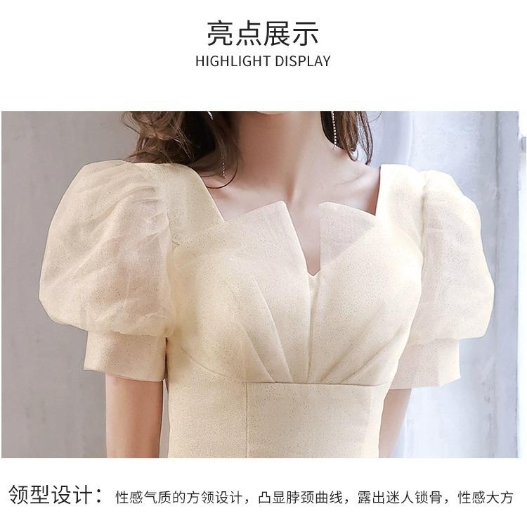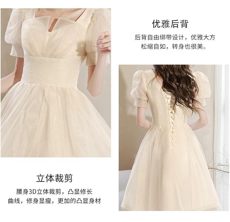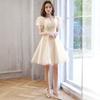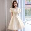Vestido de Noche Francés, Color Champagne de Alta Gama Corto Banquete Reunión Anual de Empresa Cumpleaños Vestido de Princesa, Elegante Anfitrión Primavera