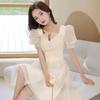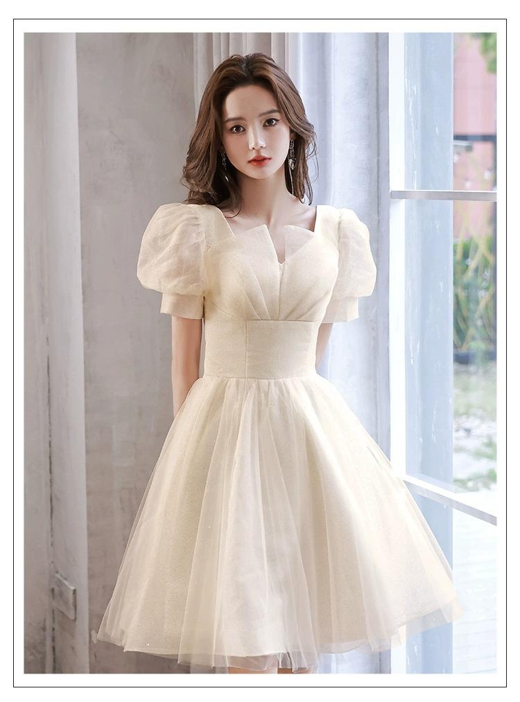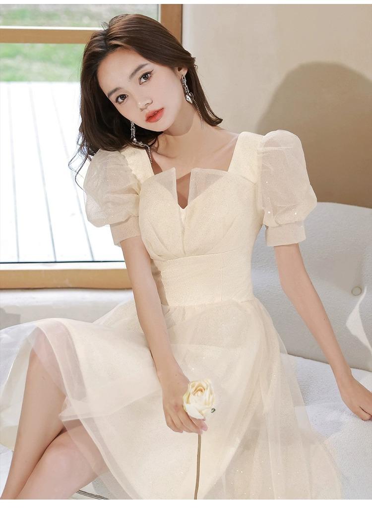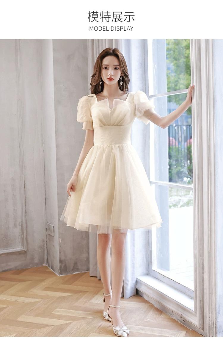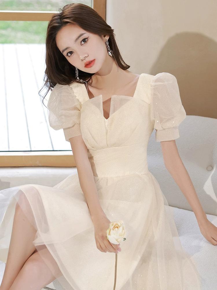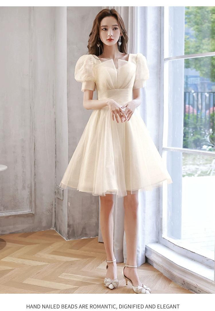 Vestido de Noche Francés, Color Champagne de Alta Gama Corto Banquete Reunión Anual de Empresa Cumpleaños Vestido de Princesa, Elegante Anfitrión Primavera