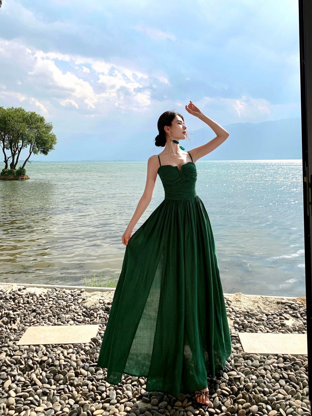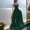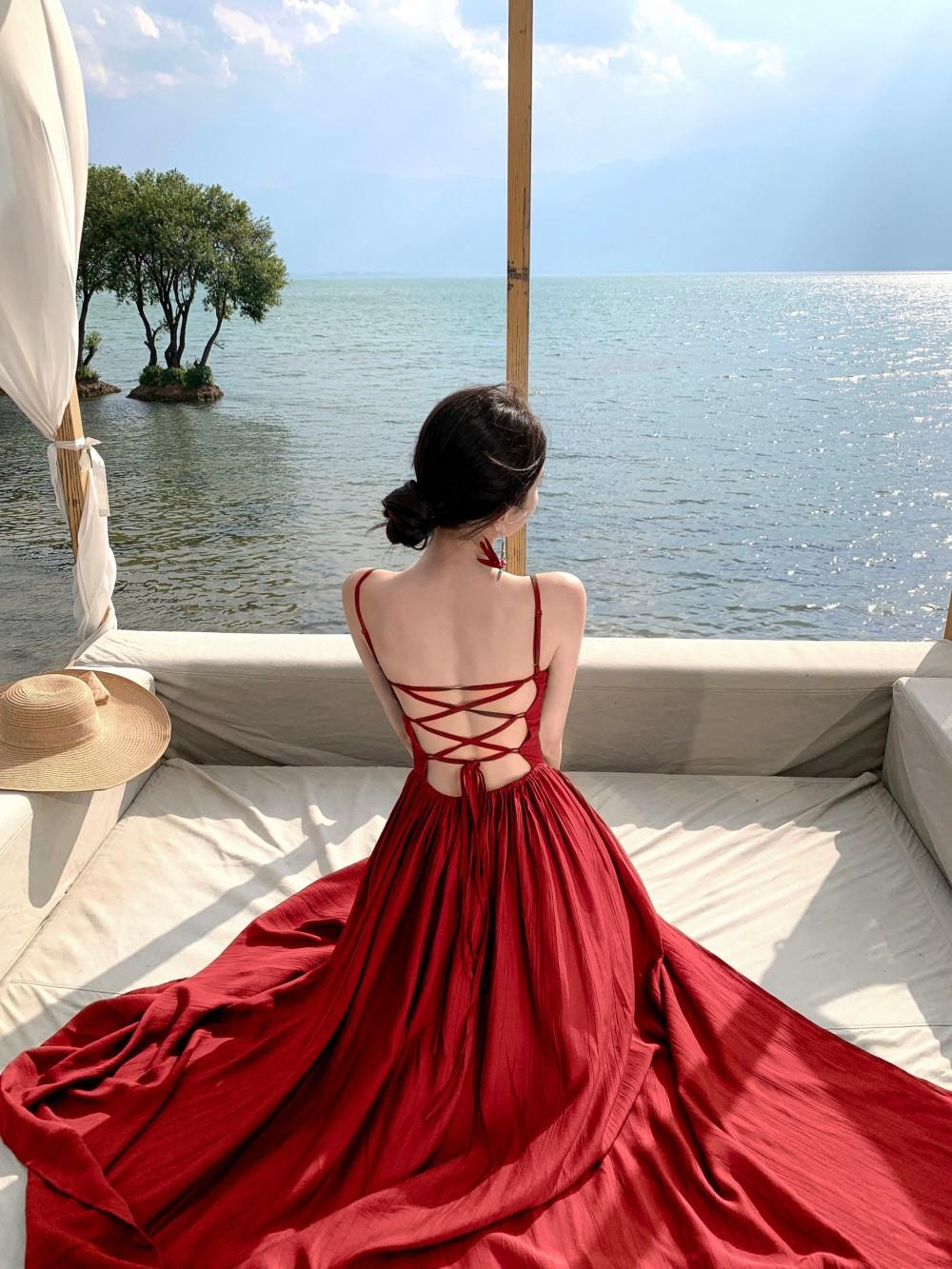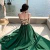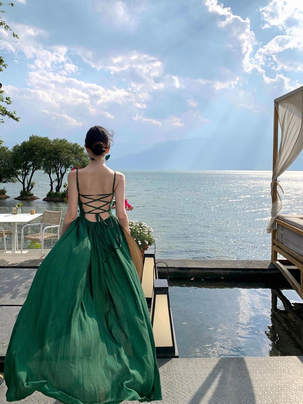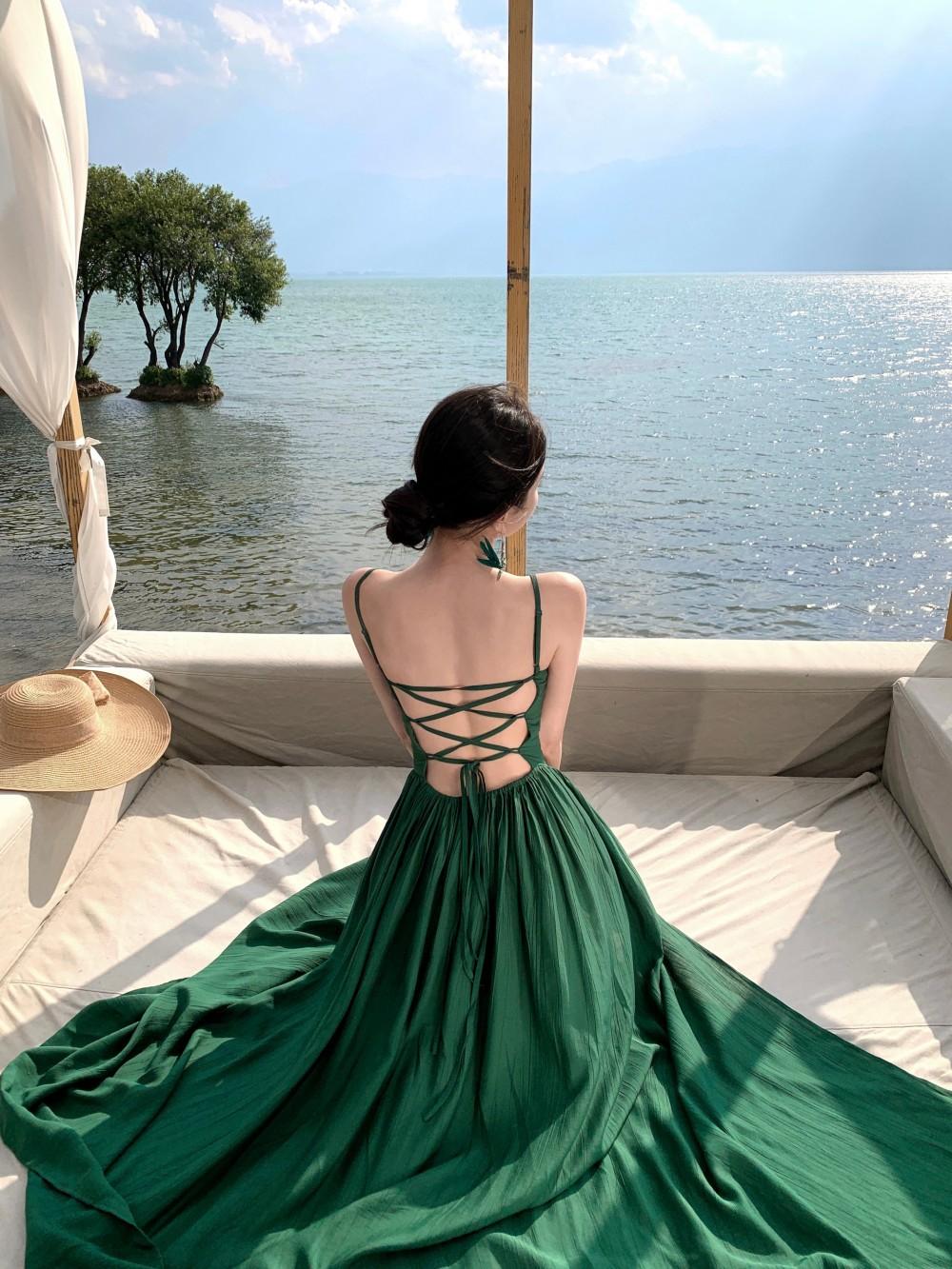 Deseo Puro Sexy Vestido de Tirantes Qingman 2025 Verano Nuevo Estilo Cintura Hueca Tirantes Espalda Descubierta Vacaciones de Playa Vestido Largo