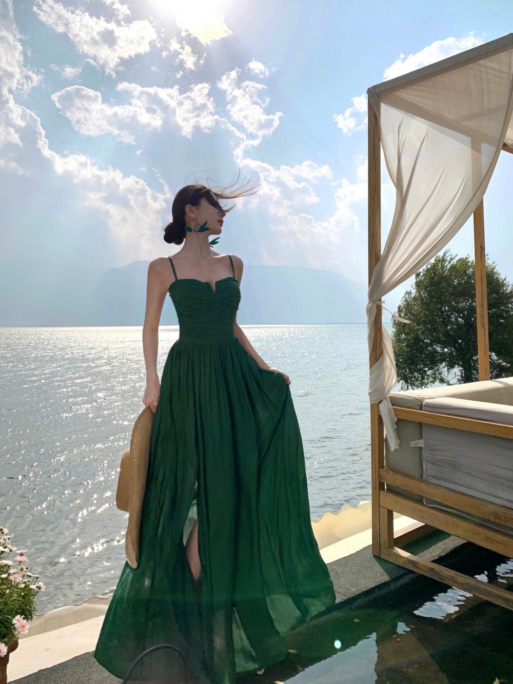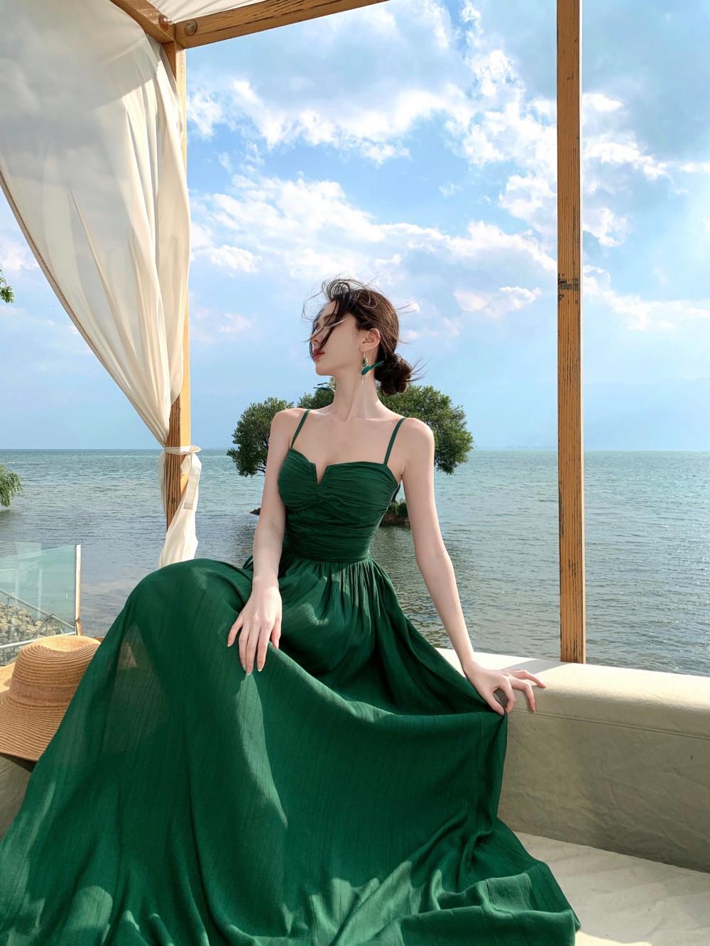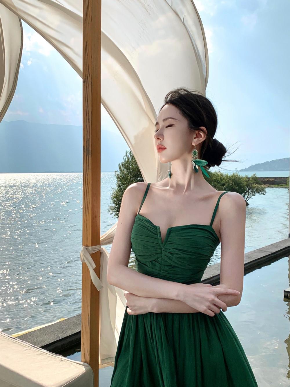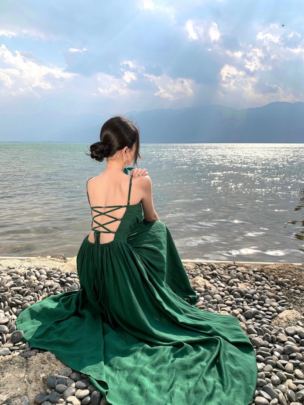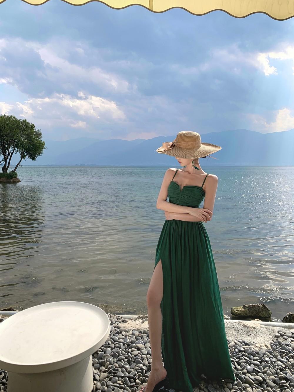 Deseo Puro Sexy Vestido de Tirantes Qingman 2025 Verano Nuevo Estilo Cintura Hueca Tirantes Espalda Descubierta Vacaciones de Playa Vestido Largo