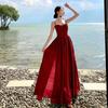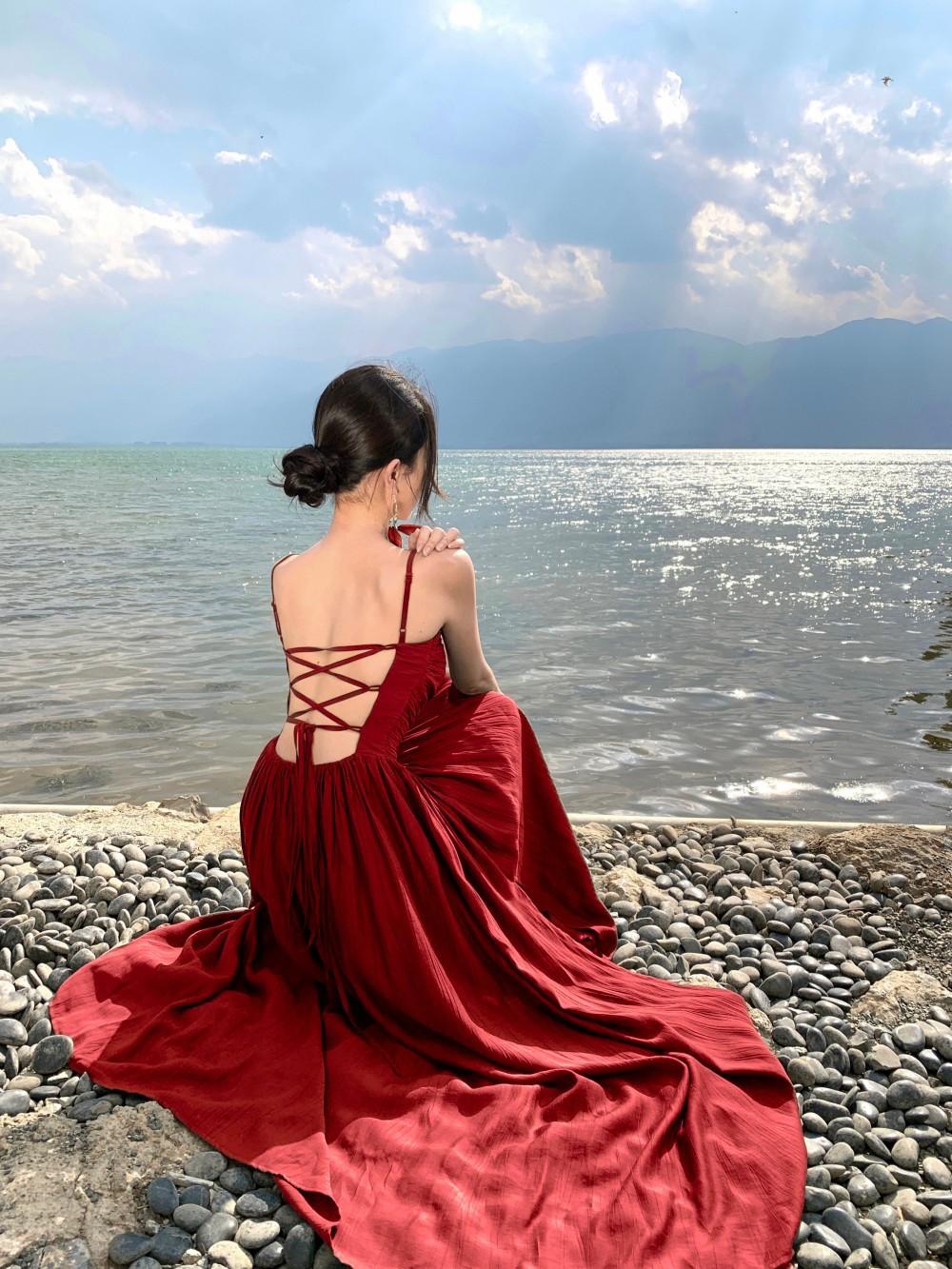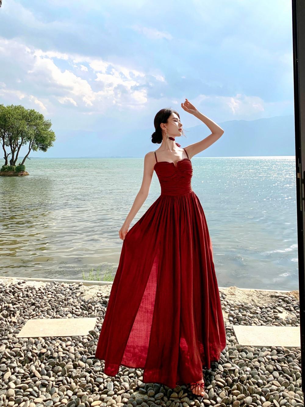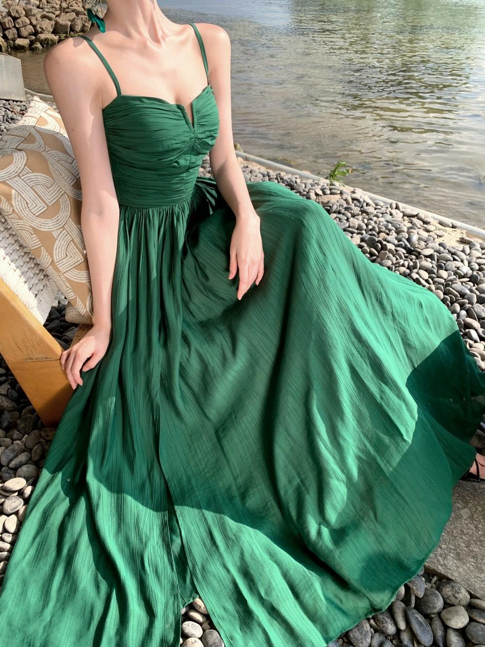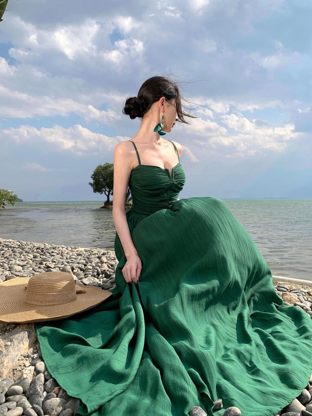 Deseo Puro Sexy Vestido de Tirantes Qingman 2025 Verano Nuevo Estilo Cintura Hueca Tirantes Espalda Descubierta Vacaciones de Playa Vestido Largo