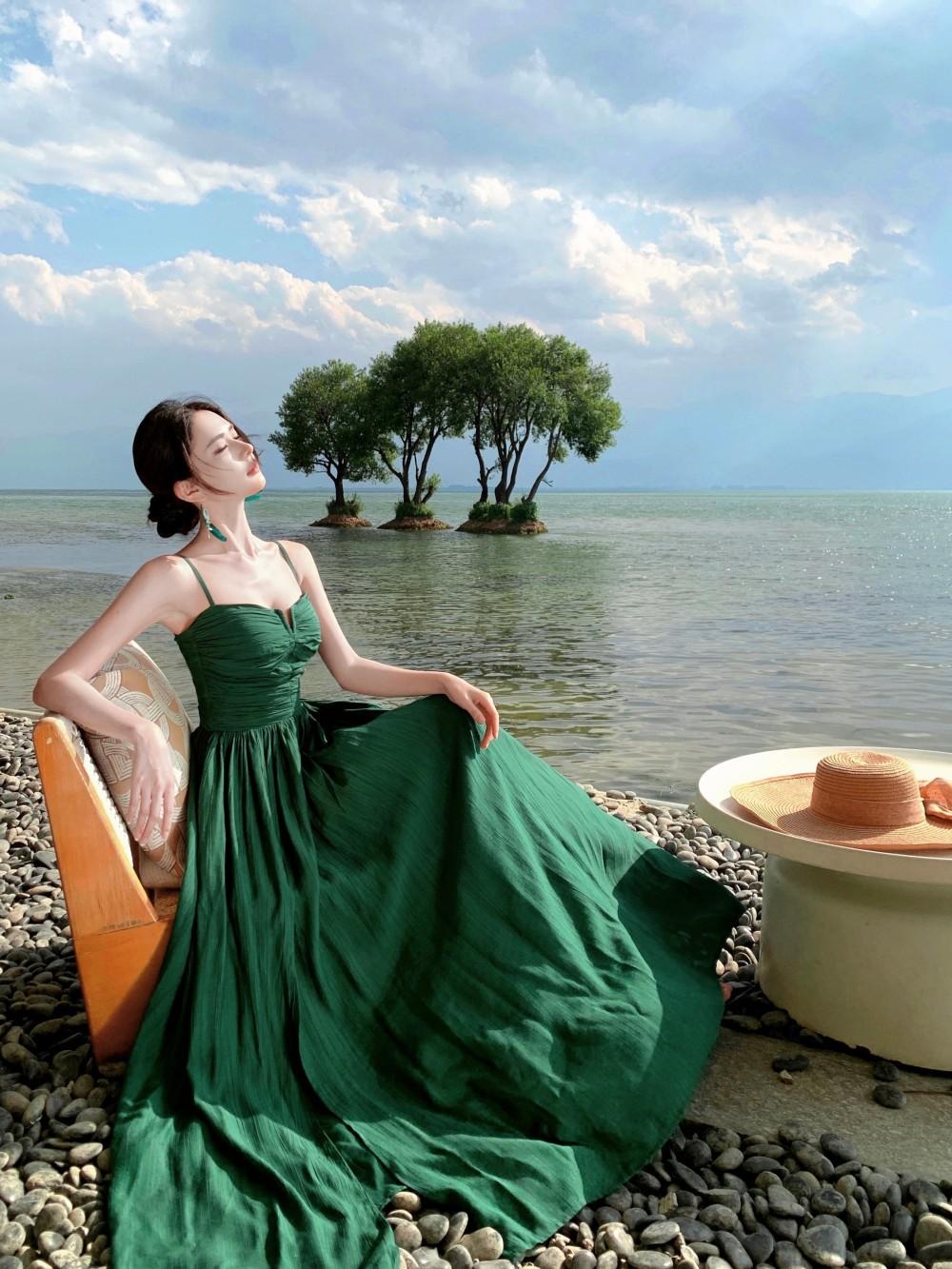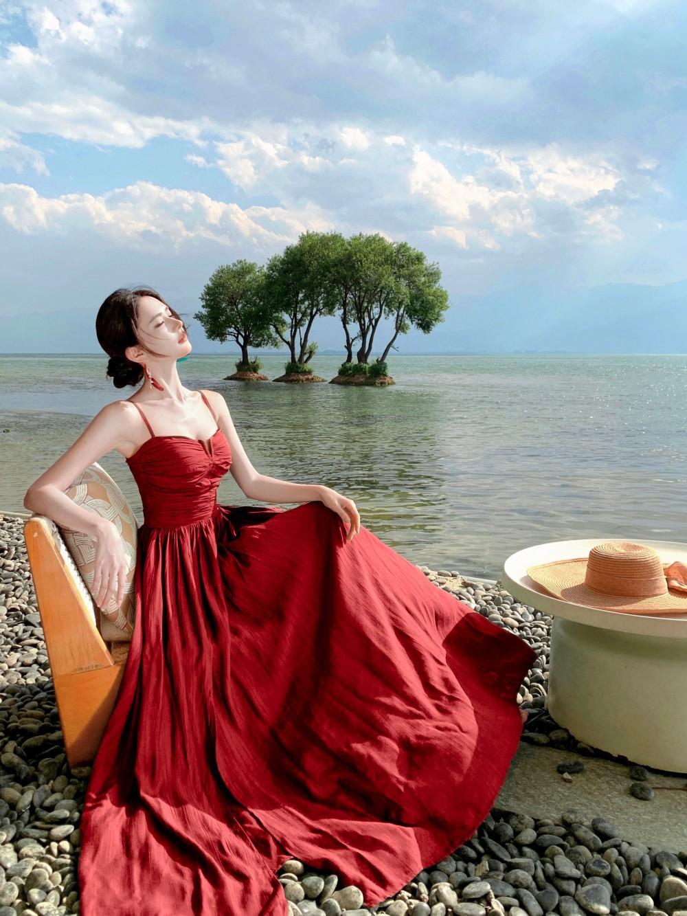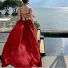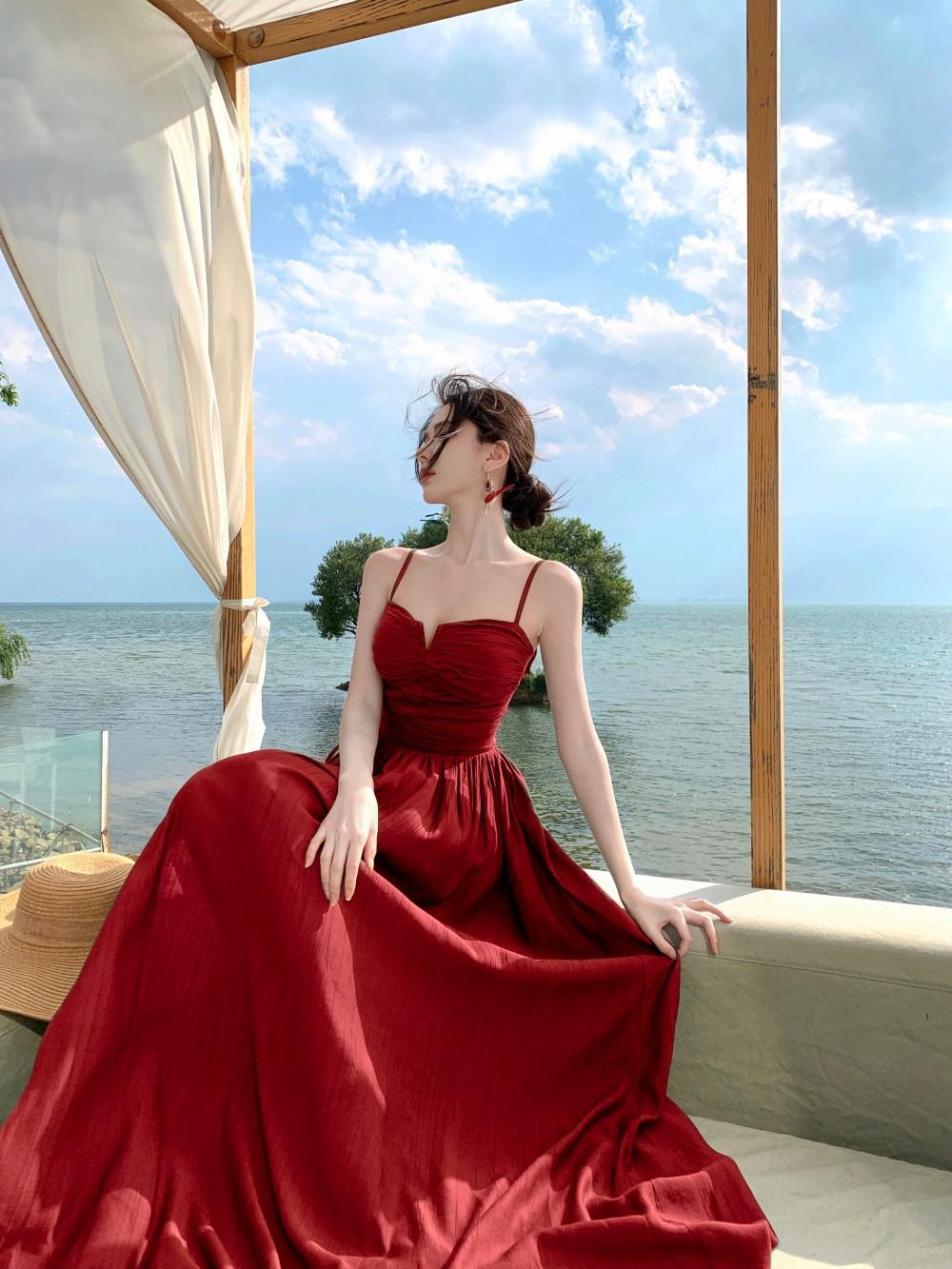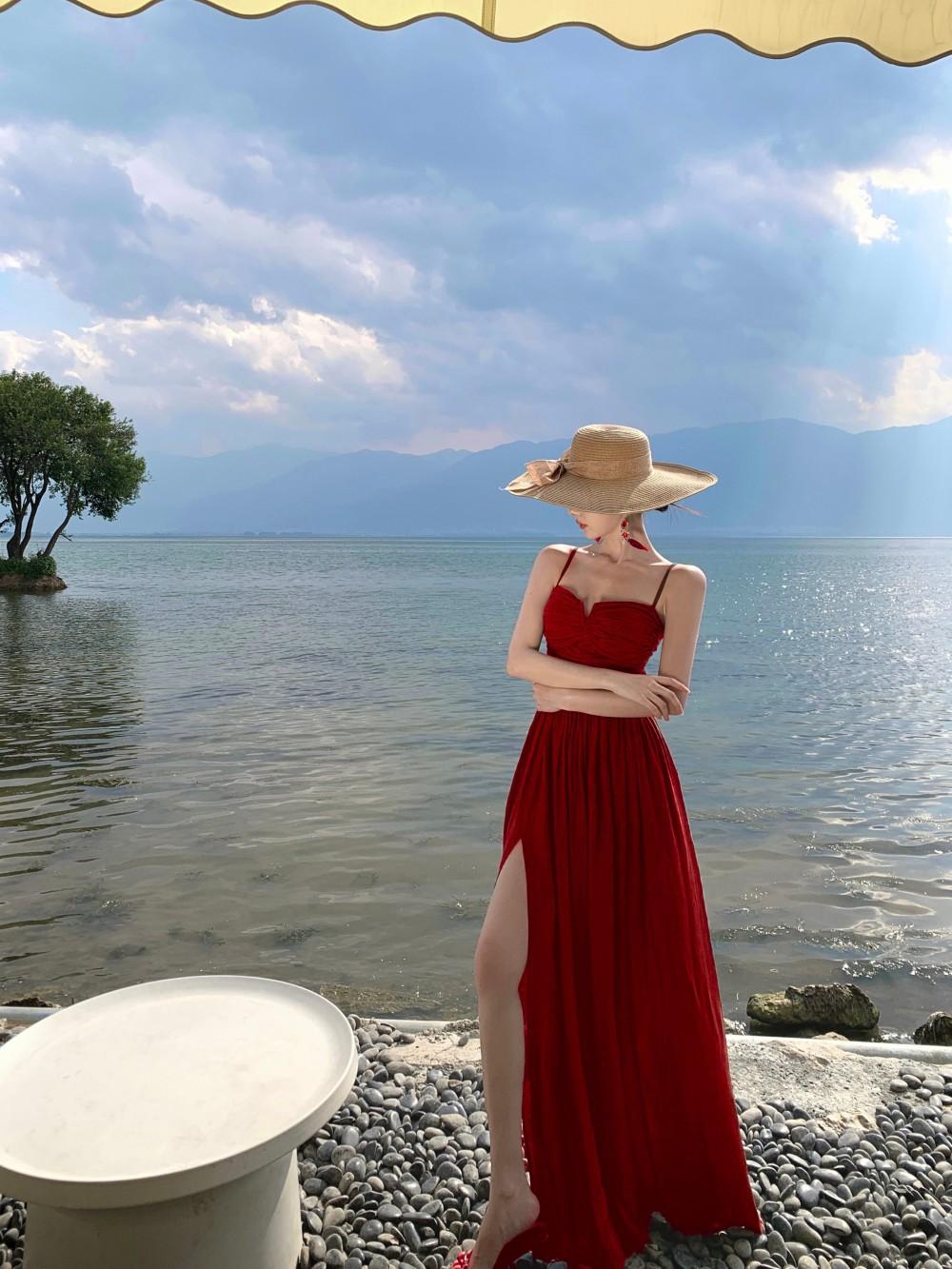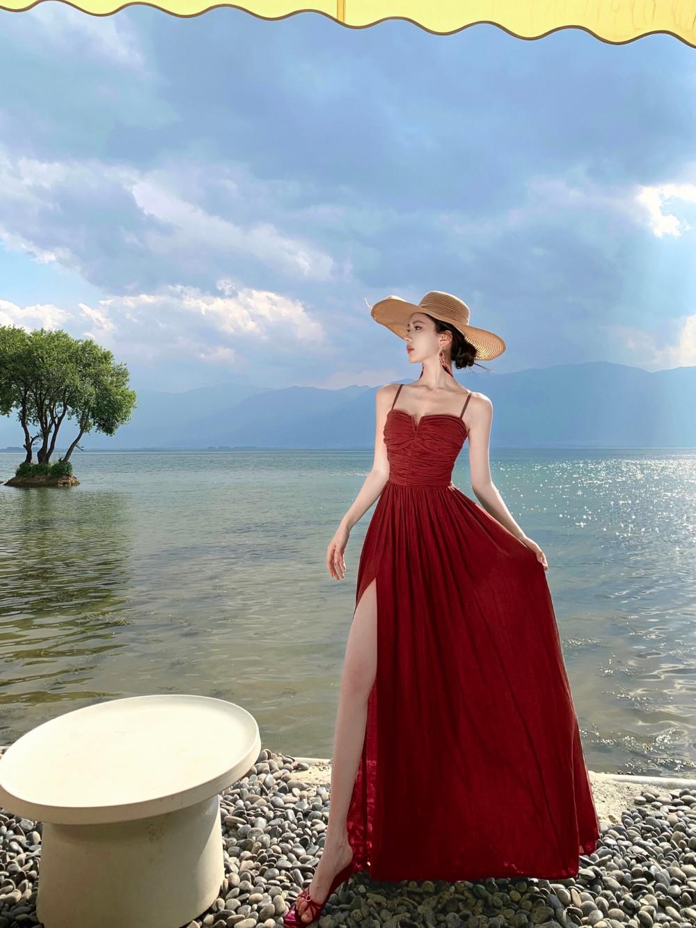 Deseo Puro Sexy Vestido de Tirantes Qingman 2025 Verano Nuevo Estilo Cintura Hueca Tirantes Espalda Descubierta Vacaciones de Playa Vestido Largo