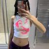 Verano 2025 Retro Cuello Redondo Jersey Sin Mangas Estampado Crop Top Casual Ropa Europea y Americana para Mujer Camisola Chaleco