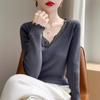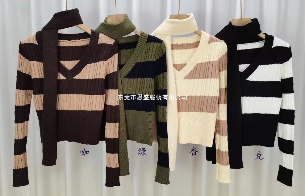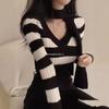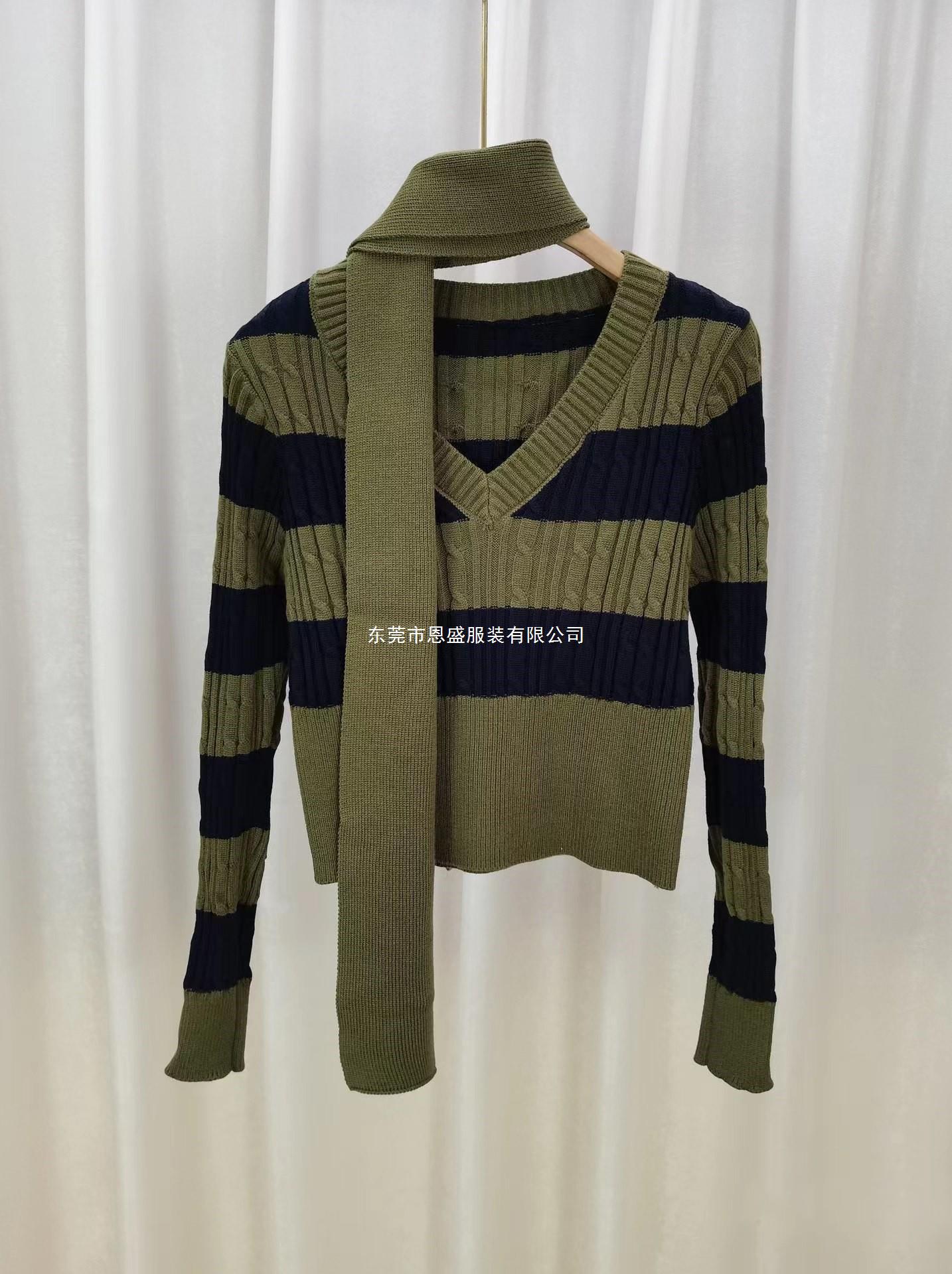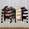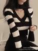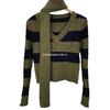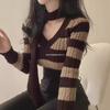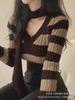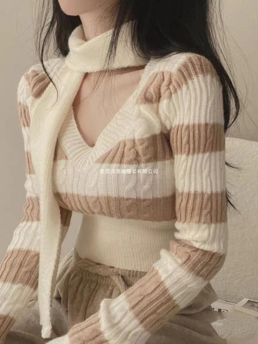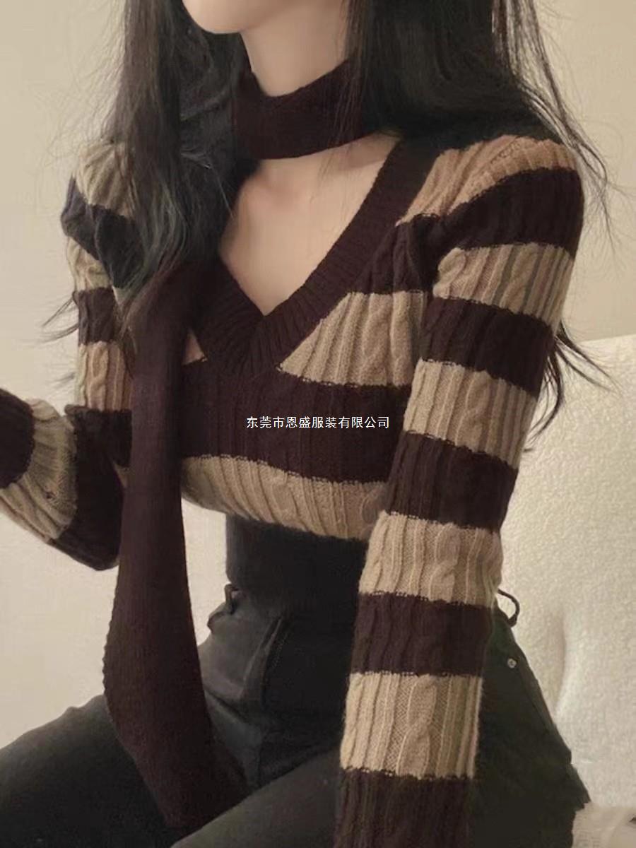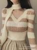 Nuevo Otoño 2024 Diseño Celebridad de Internet Cuello en V Torcido Suéter Ajustado Bufanda Corta Rayada Top de Punto para Mujer