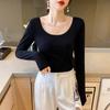 Camiseta de Cuello Alto Ajustada para Mujer, Camiseta Asimétrica Slim de Manga Larga con Cuello de Pila, Top Sencillo y Versátil, Elegante