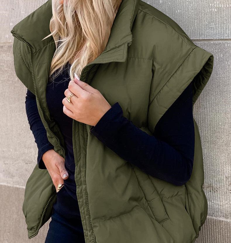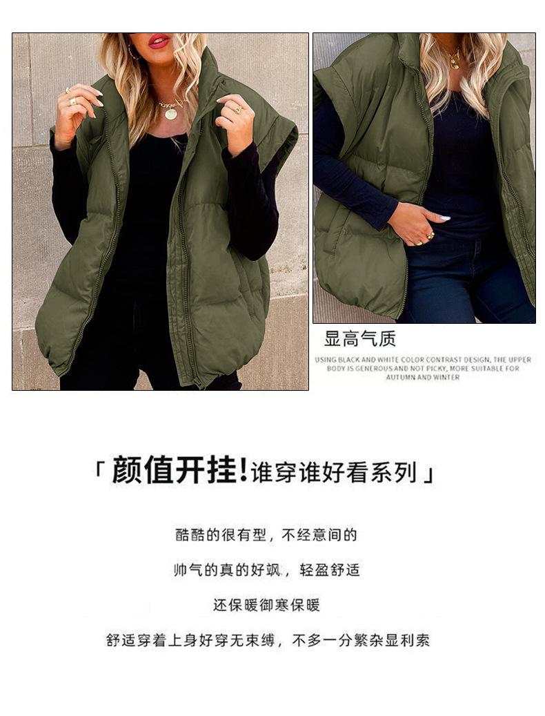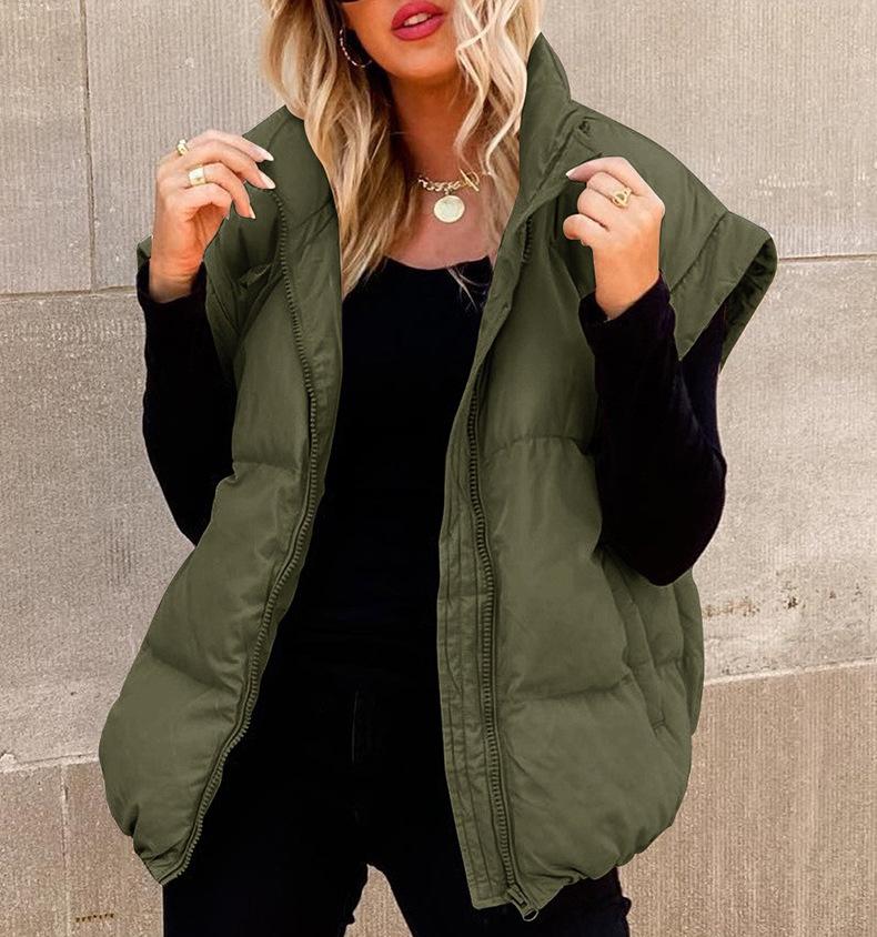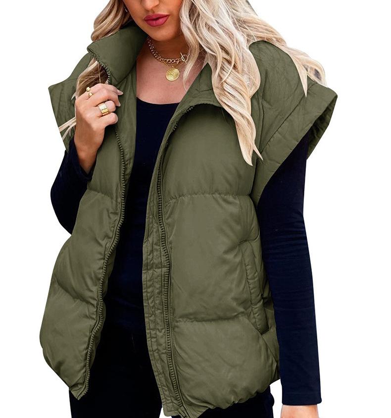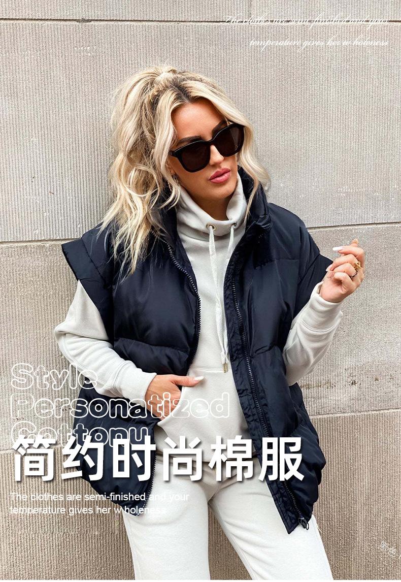 Chaleco Corto de Algodón Grueso de Cuello Alto Casual para Mujer de Talla Grande Suelto Nuevo Personalizado Europeo y Americano 2025