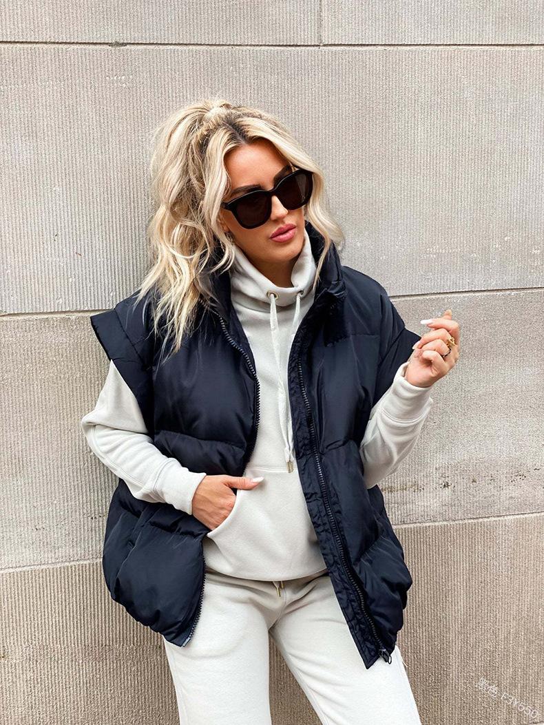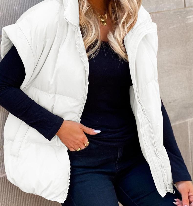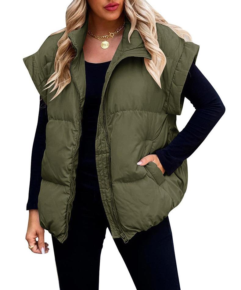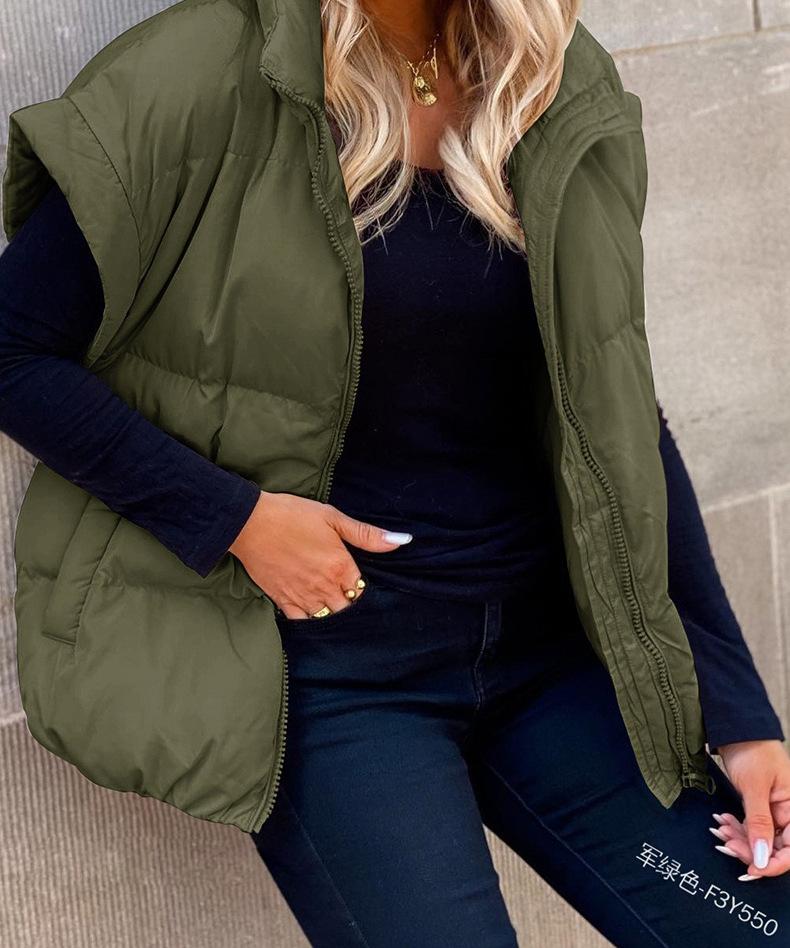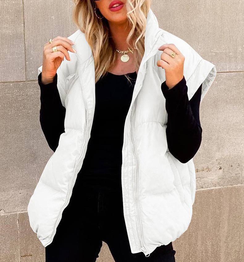 Chaleco Corto de Algodón Grueso de Cuello Alto Casual para Mujer de Talla Grande Suelto Nuevo Personalizado Europeo y Americano 2025