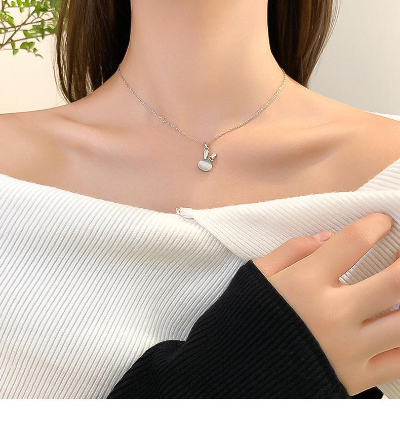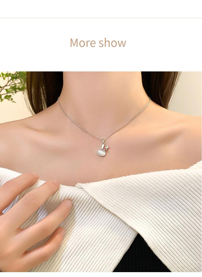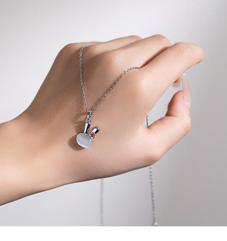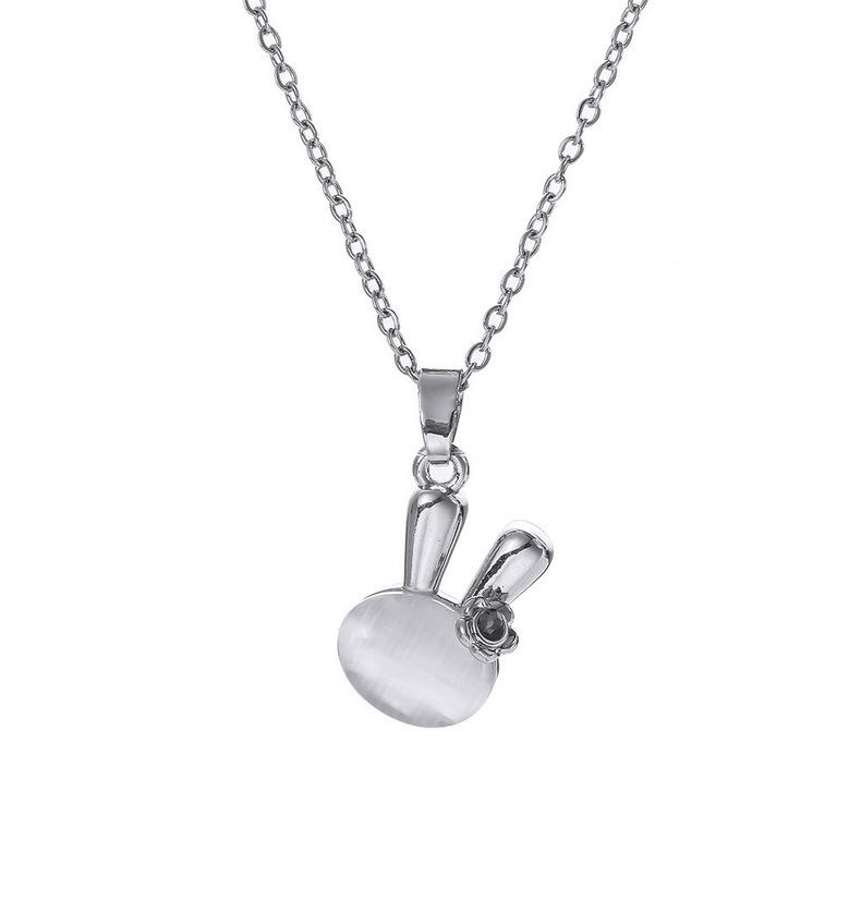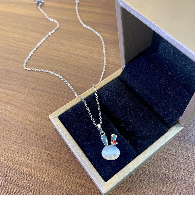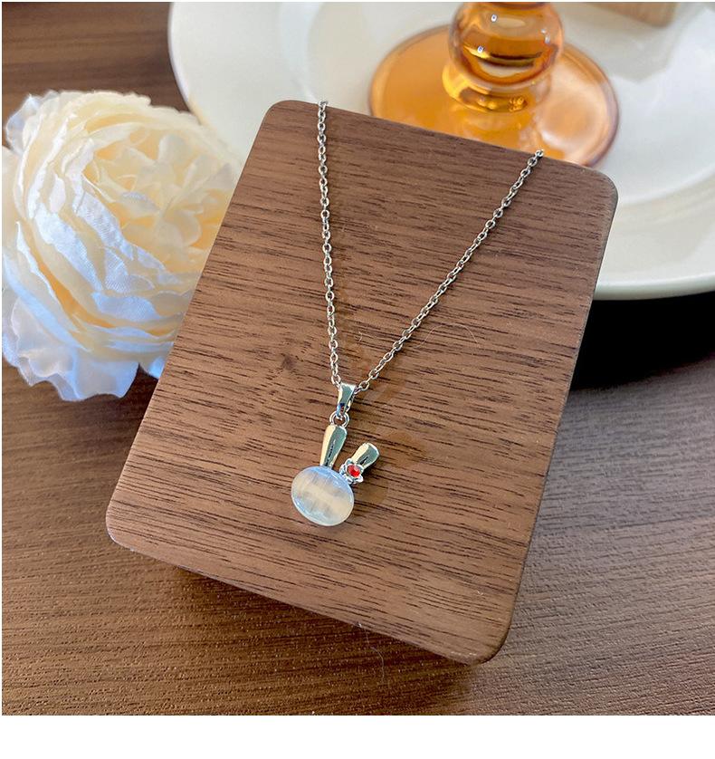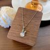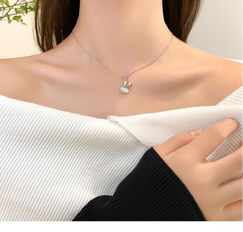 Collar de Conejito de Piedra Ojo de Gato Plateada para Mujer Diseño de Nicho de Lujo Ligero Influencer Cadena para Clavícula Acero Titanio Collar Versátil Joyería
