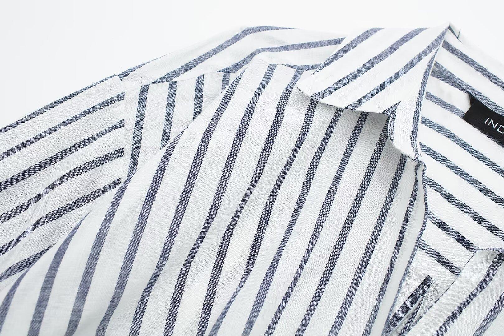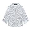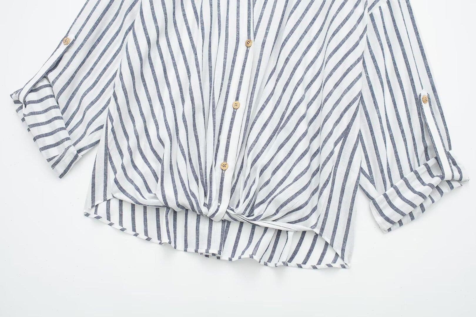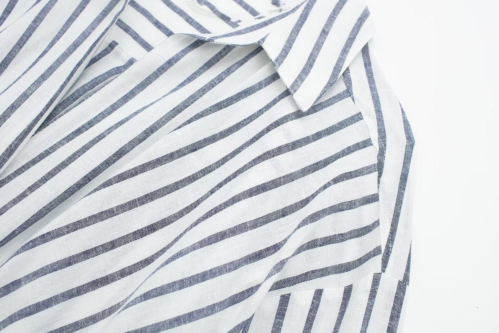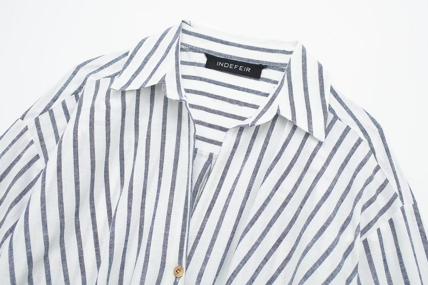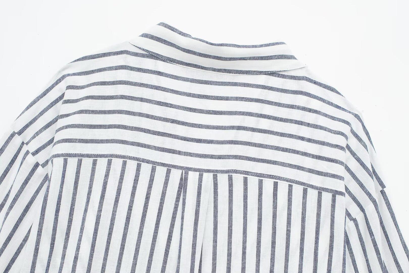 Camisa de Mezcla de Lino a Rayas de Manga Media con Solapa y Borde Enrollado de Nuevo Estilo para Mujer al Mayoreo 2024 3035787