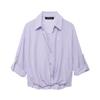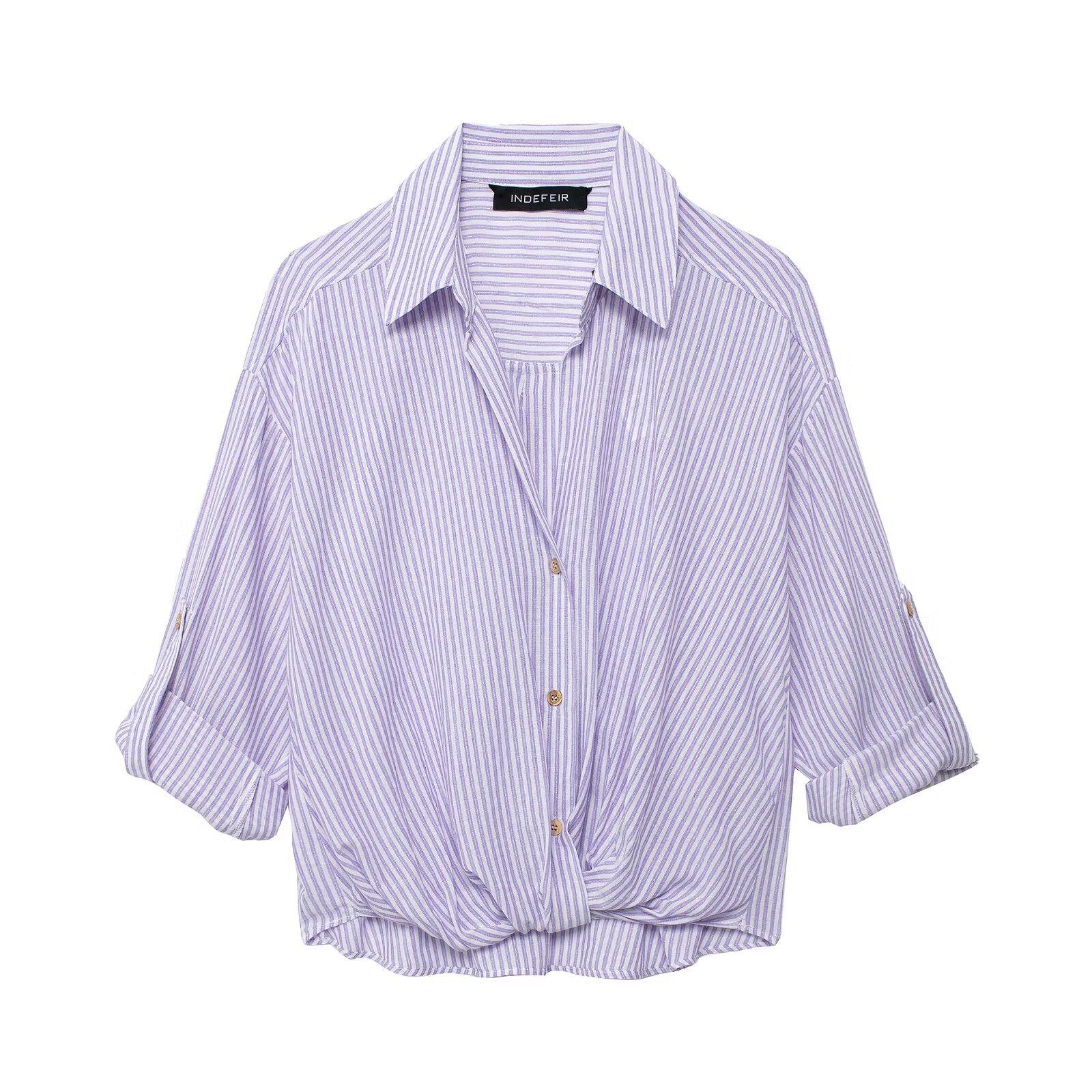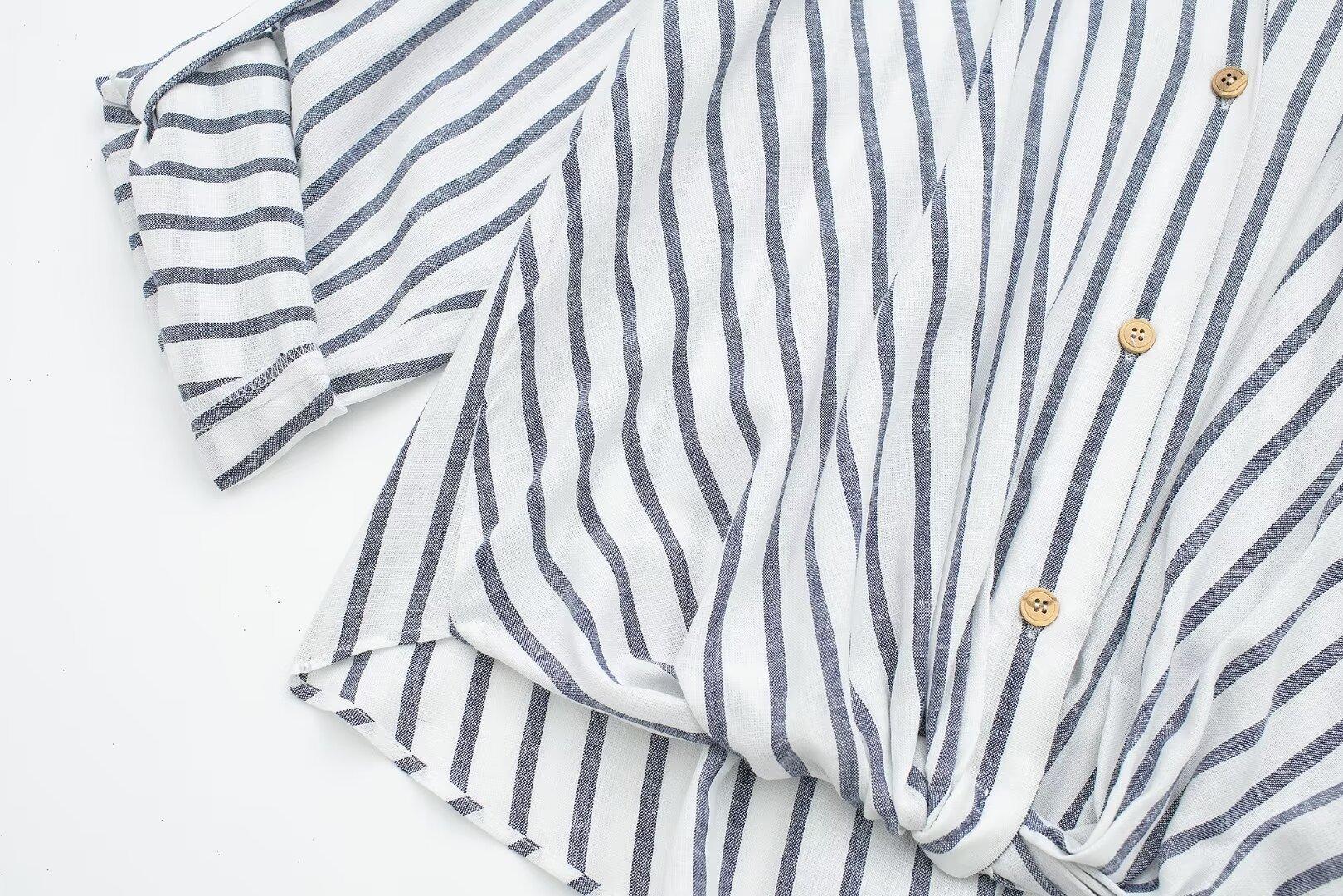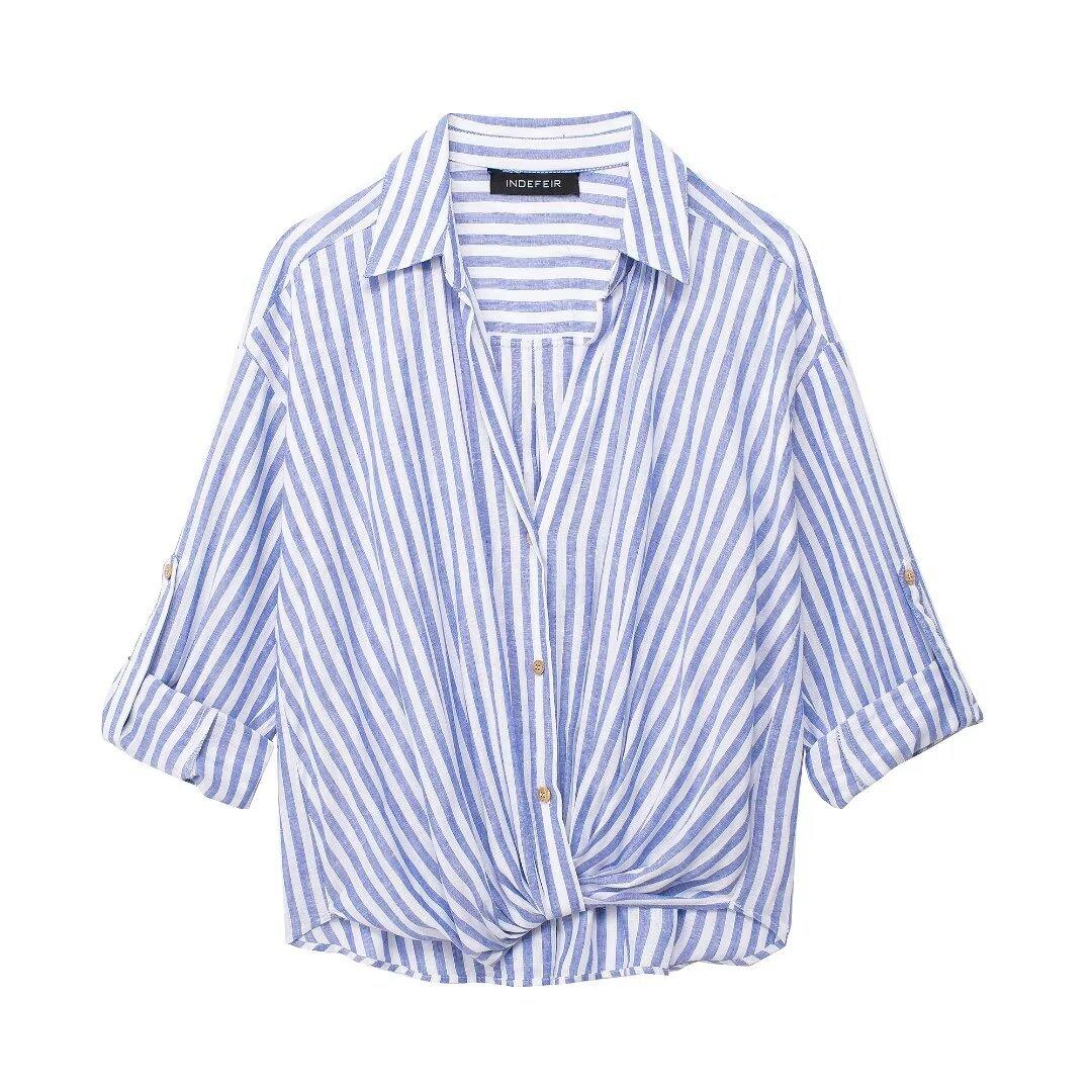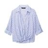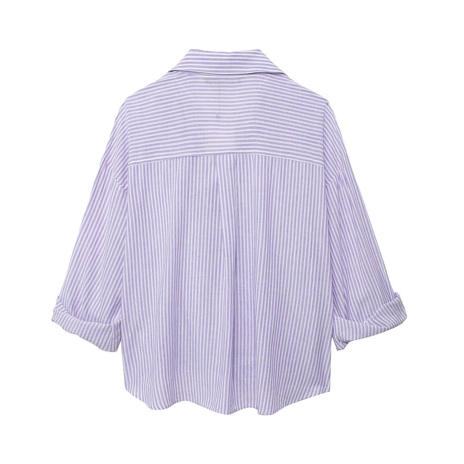 Camisa de Mezcla de Lino a Rayas de Manga Media con Solapa y Borde Enrollado de Nuevo Estilo para Mujer al Mayoreo 2024 3035787