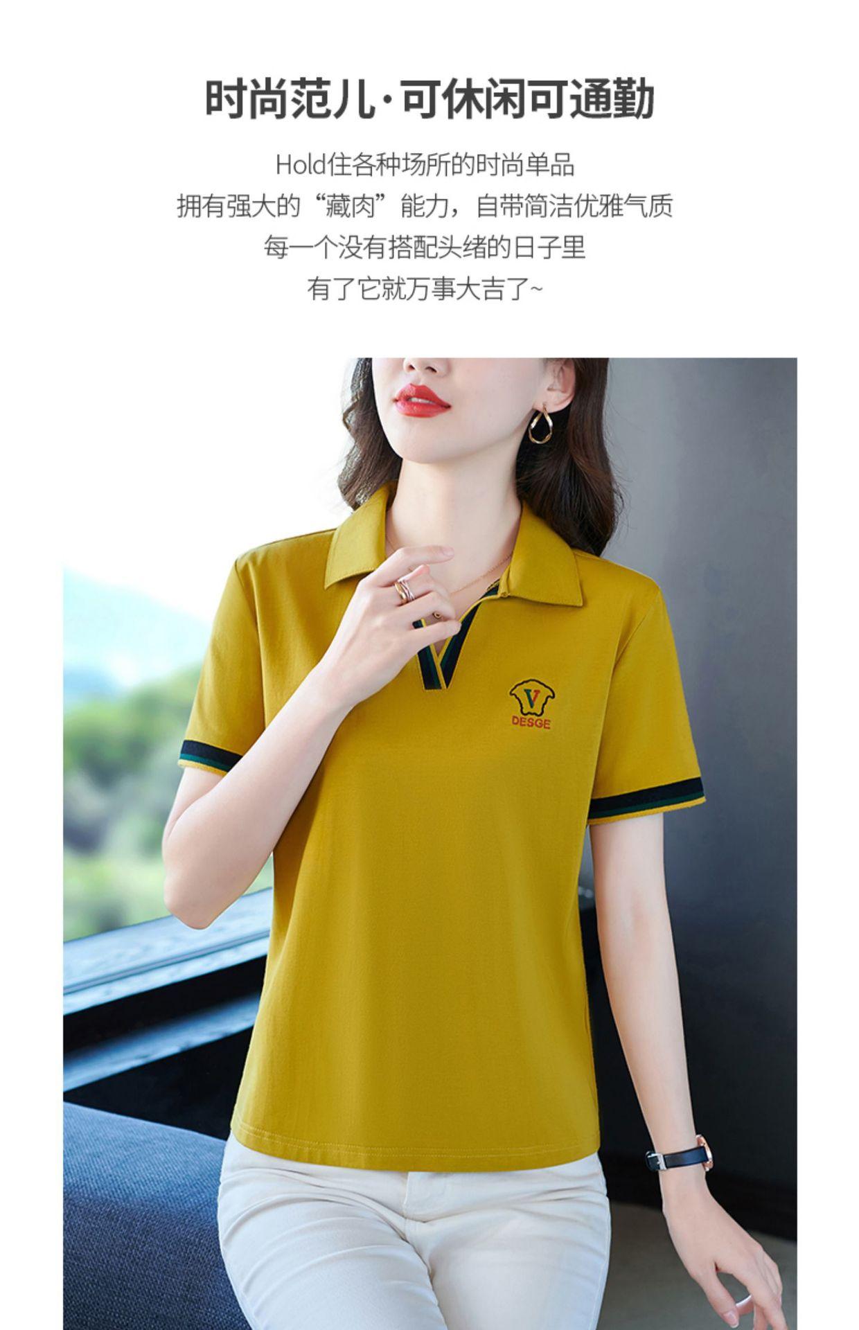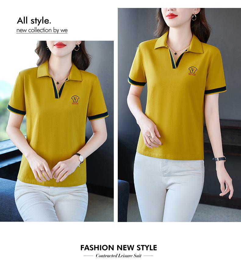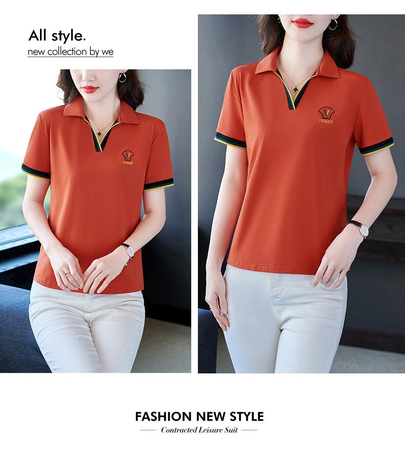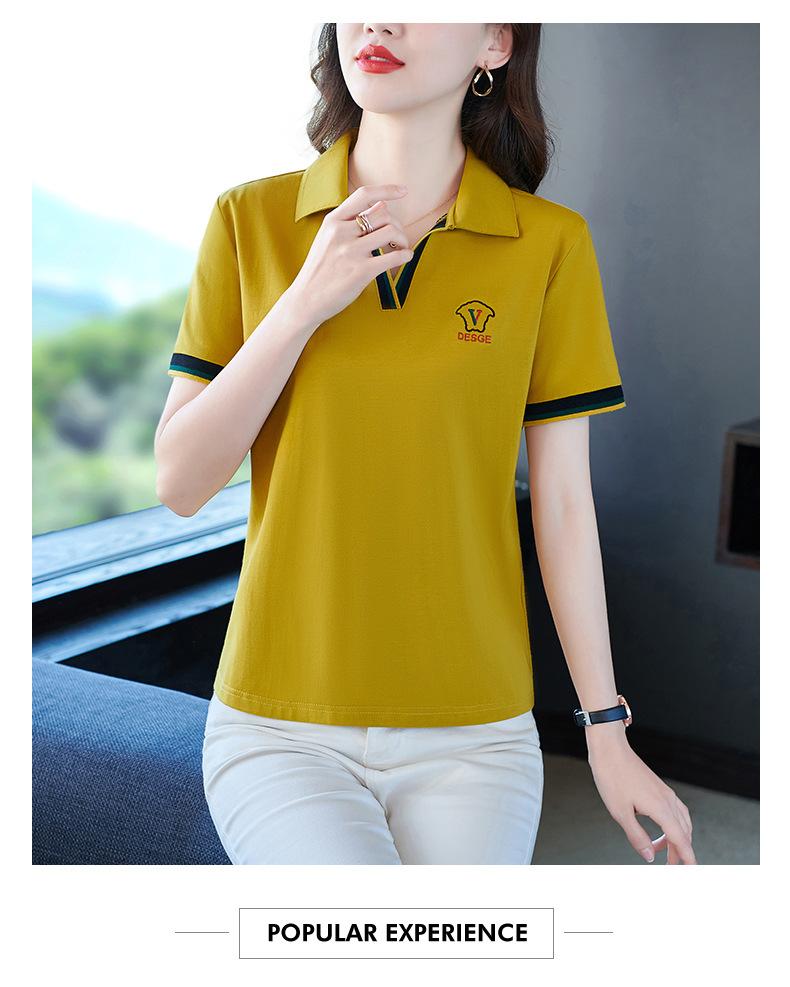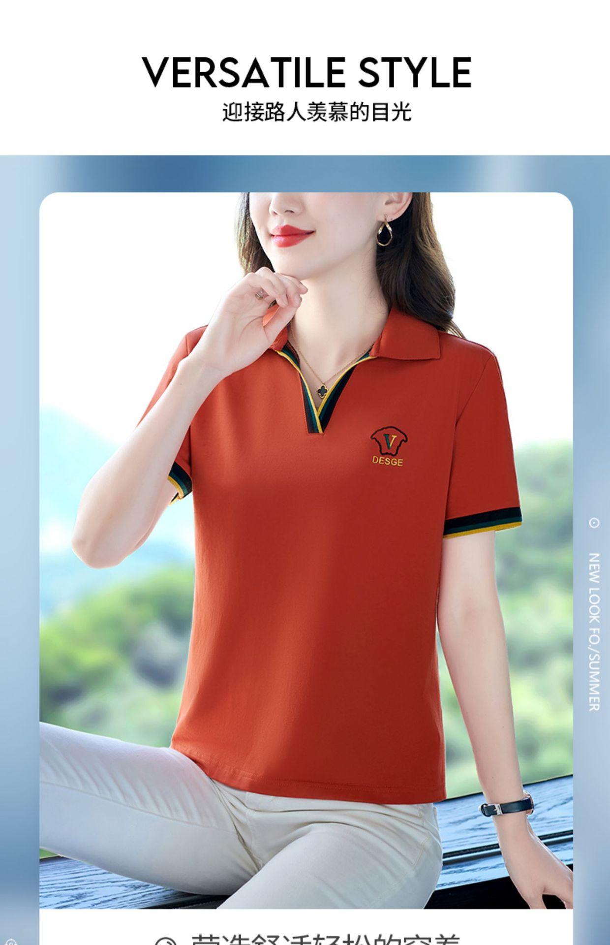 2023 Algodón POLO Cuello Camisa Pequeña Nuevo Transpirable Verano Popular Camiseta Mujer Combinable Joven Madre Nicho Manga Corta