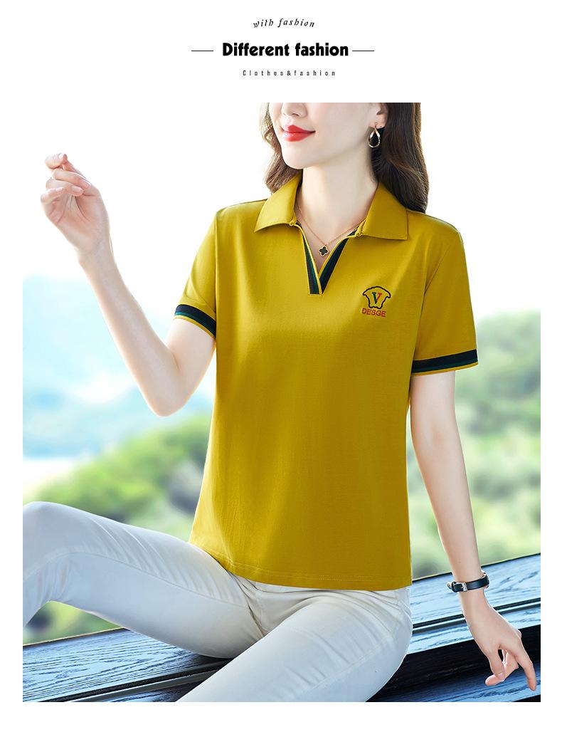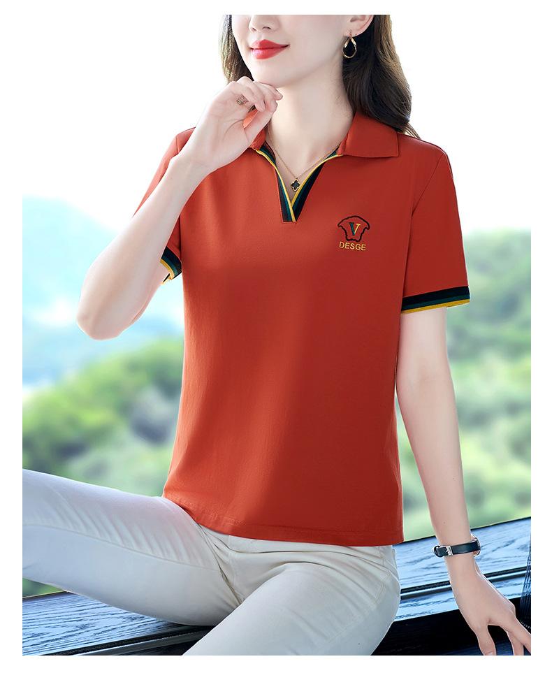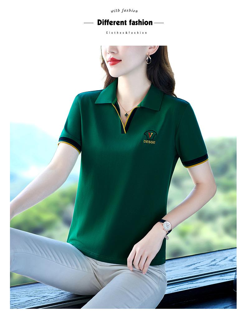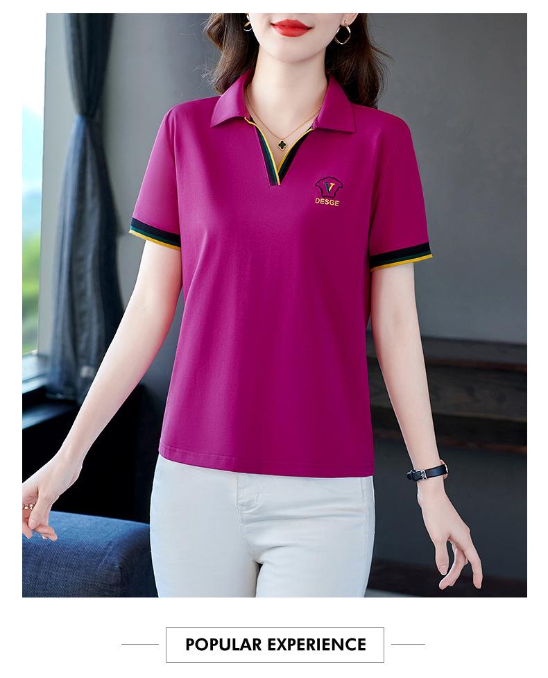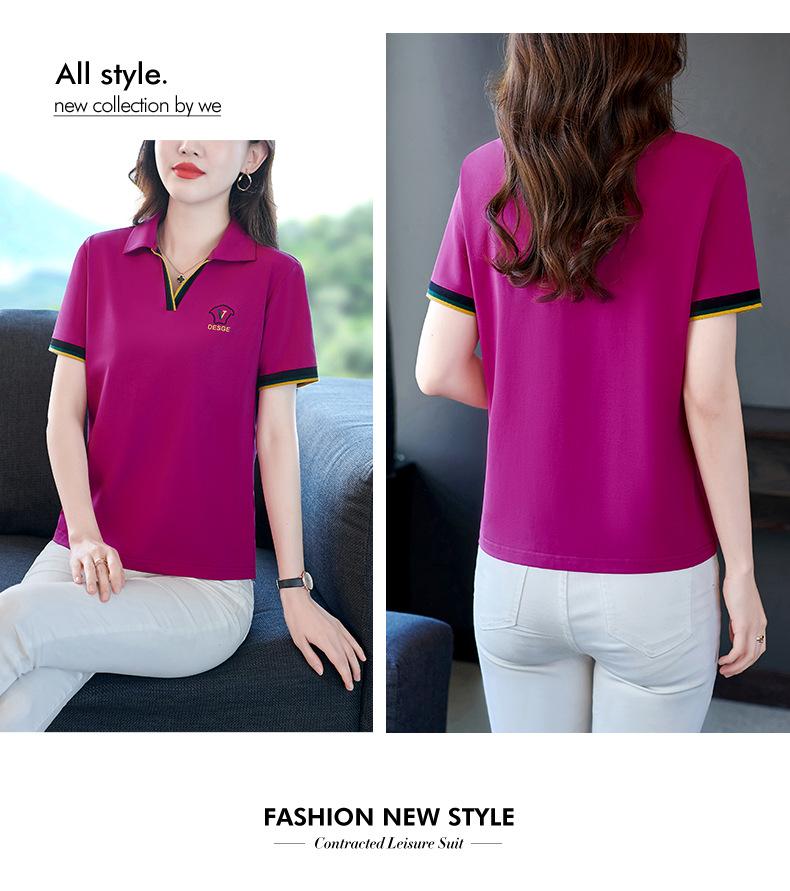 2023 Algodón POLO Cuello Camisa Pequeña Nuevo Transpirable Verano Popular Camiseta Mujer Combinable Joven Madre Nicho Manga Corta