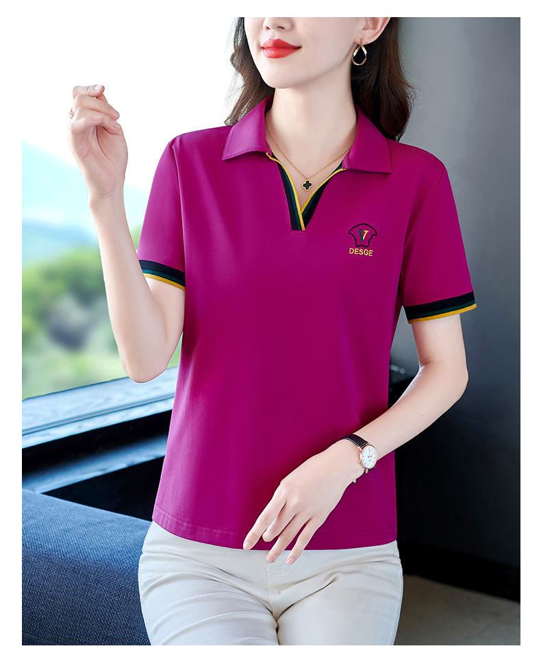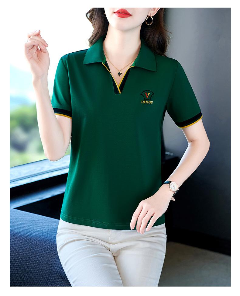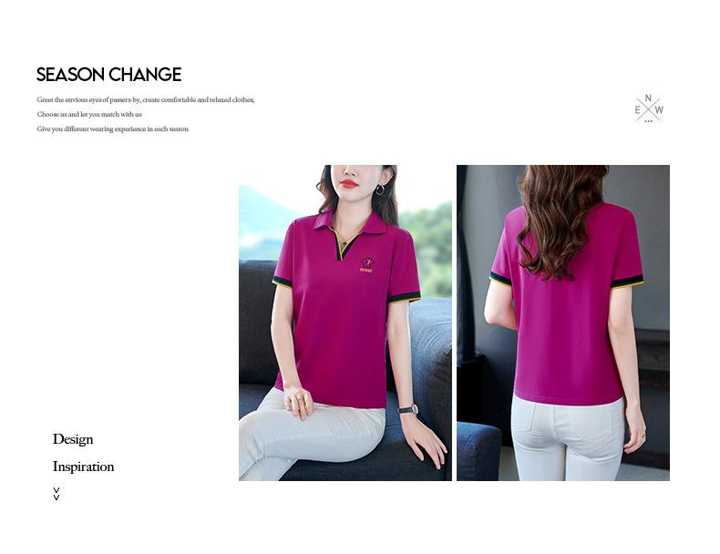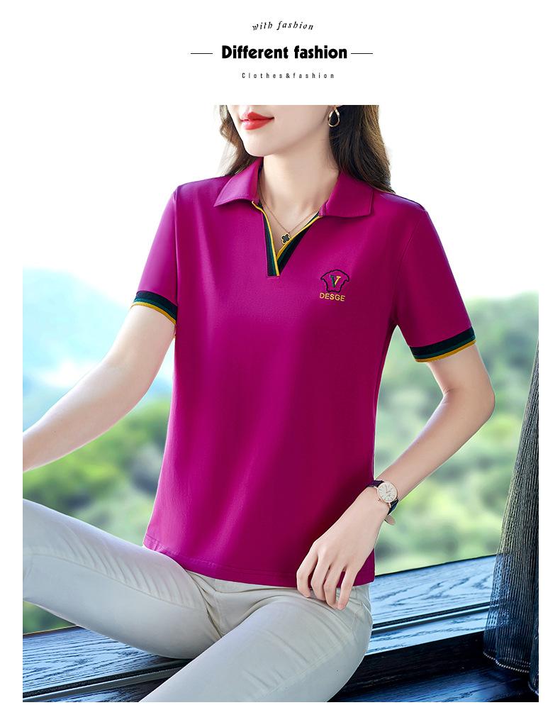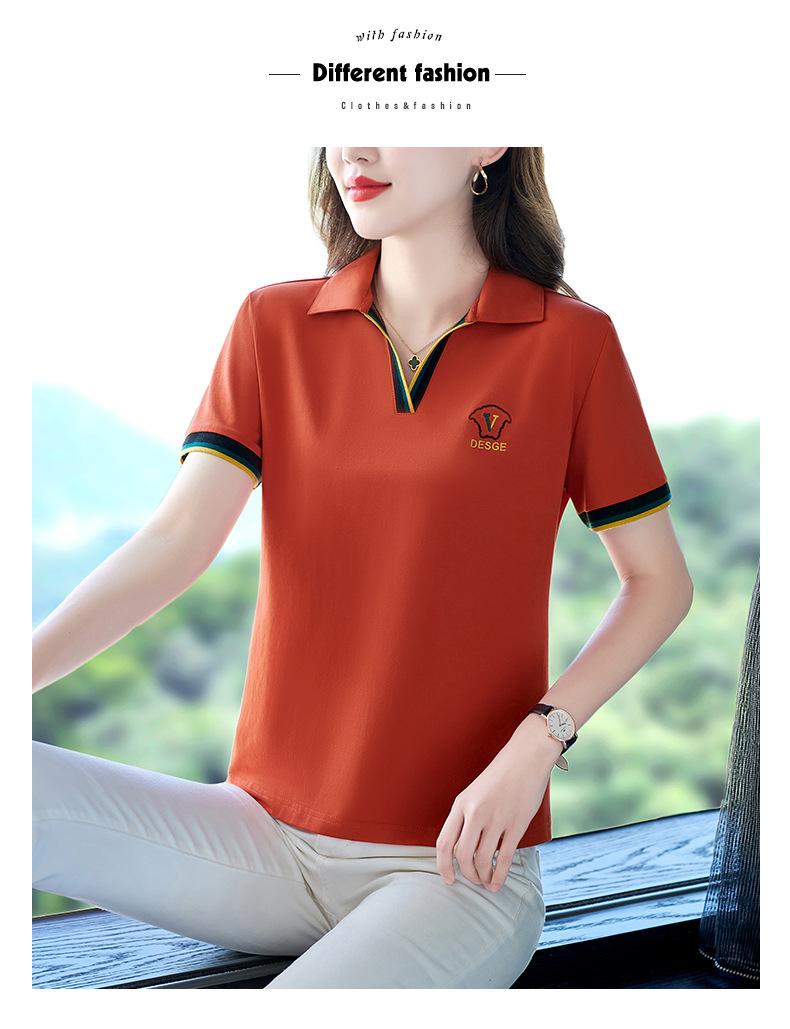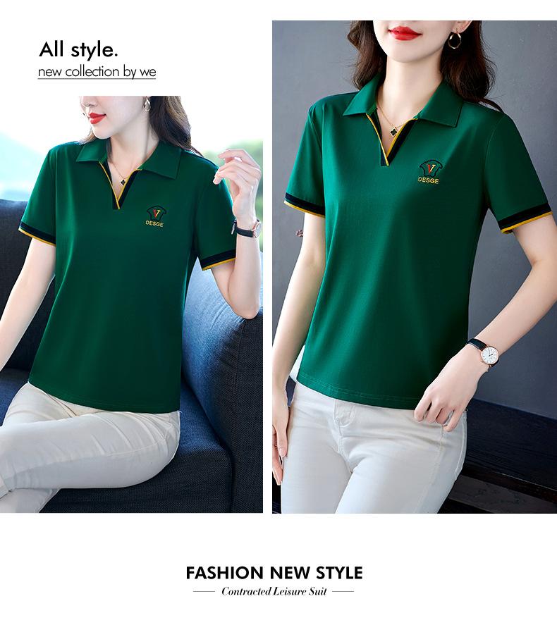 2023 Algodón POLO Cuello Camisa Pequeña Nuevo Transpirable Verano Popular Camiseta Mujer Combinable Joven Madre Nicho Manga Corta