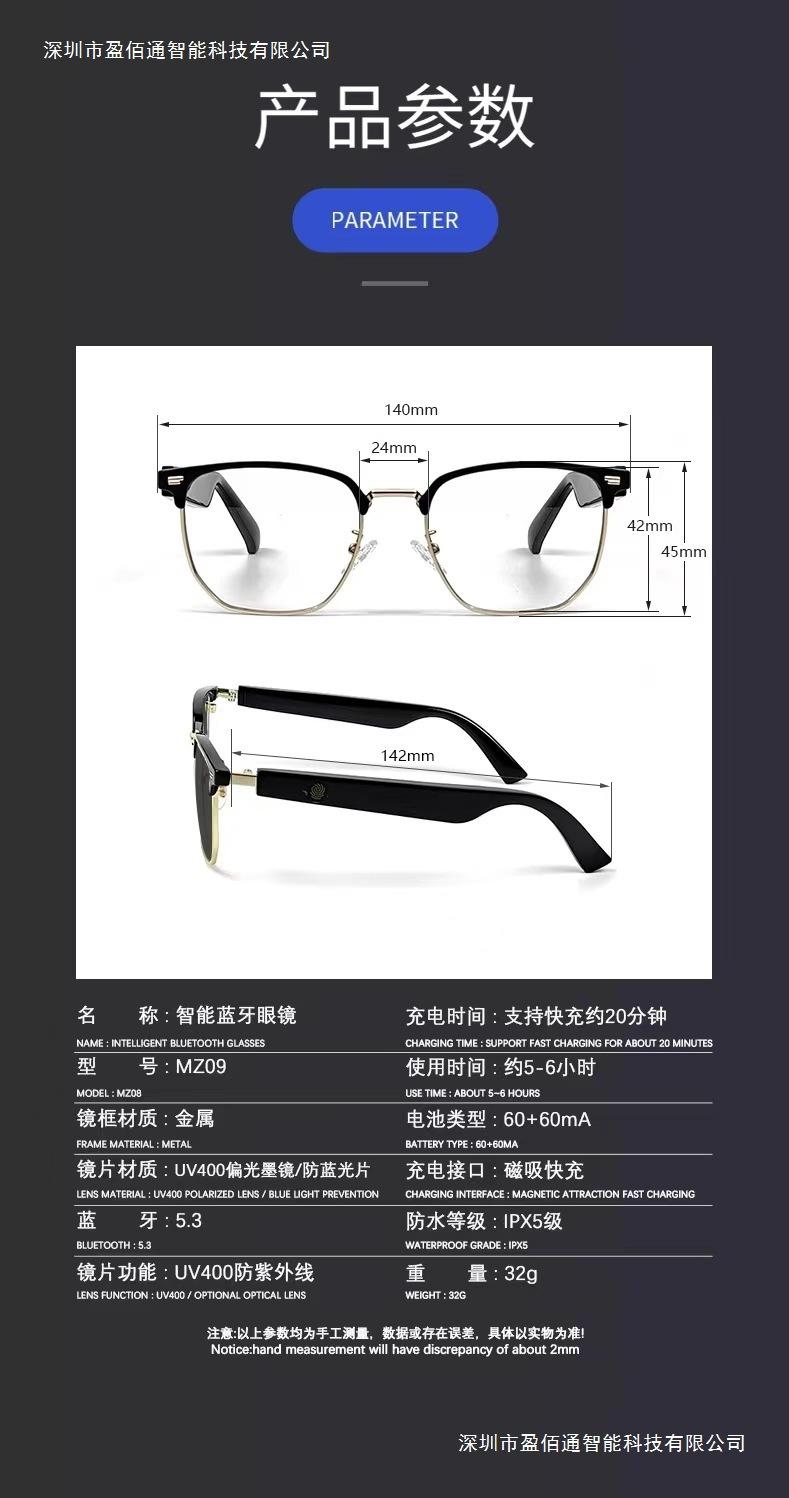 Lentes Inteligentes MZ09 Lentes Bluetooth Anti-ultravioleta Gafas de Sol Polarizadas Antirradiación Luz Azul Escuchar Canciones Llamada Navegación