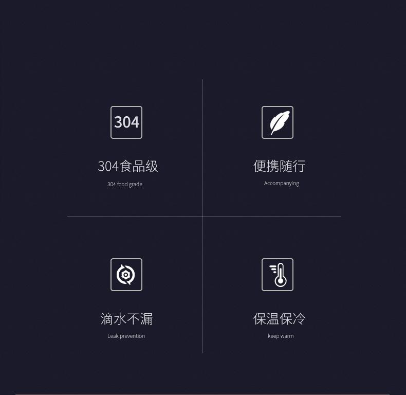 1. Estructura de termo de vacío de doble capa de acero inoxidable, excelente rendimiento de conservación del calor;
