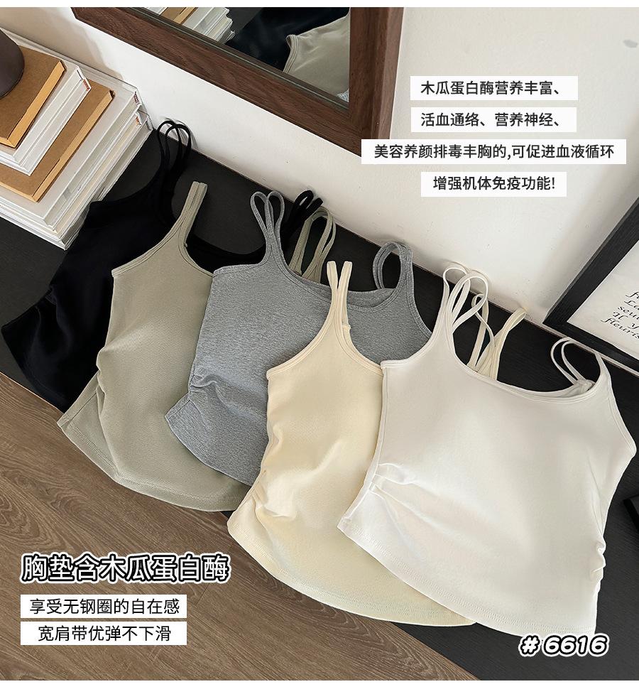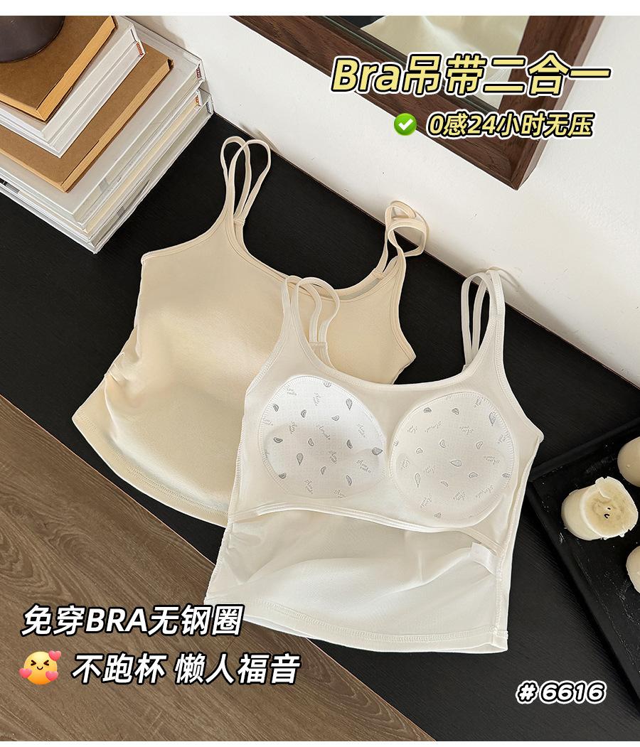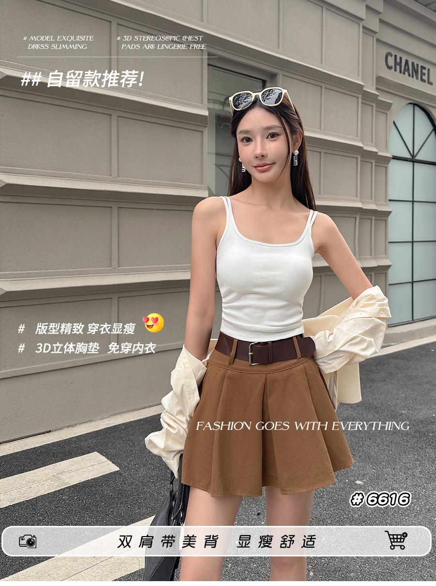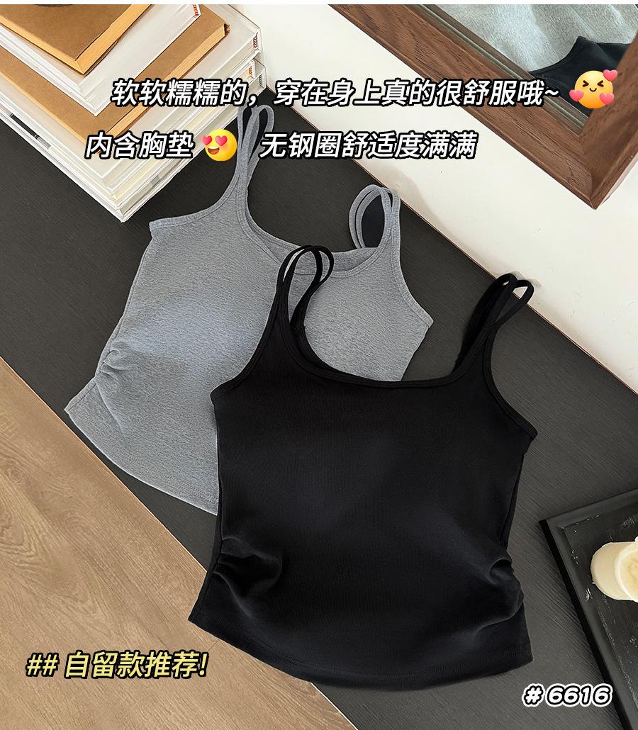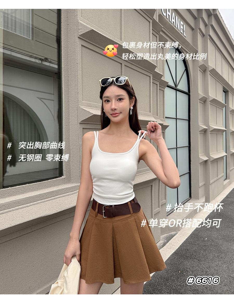 Camisola de tirantes dobles con copas de sujetador integradas, ropa interior para mujer de corte ajustado, top tubo, camisa de capa base, top de espalda hermosa, sexy