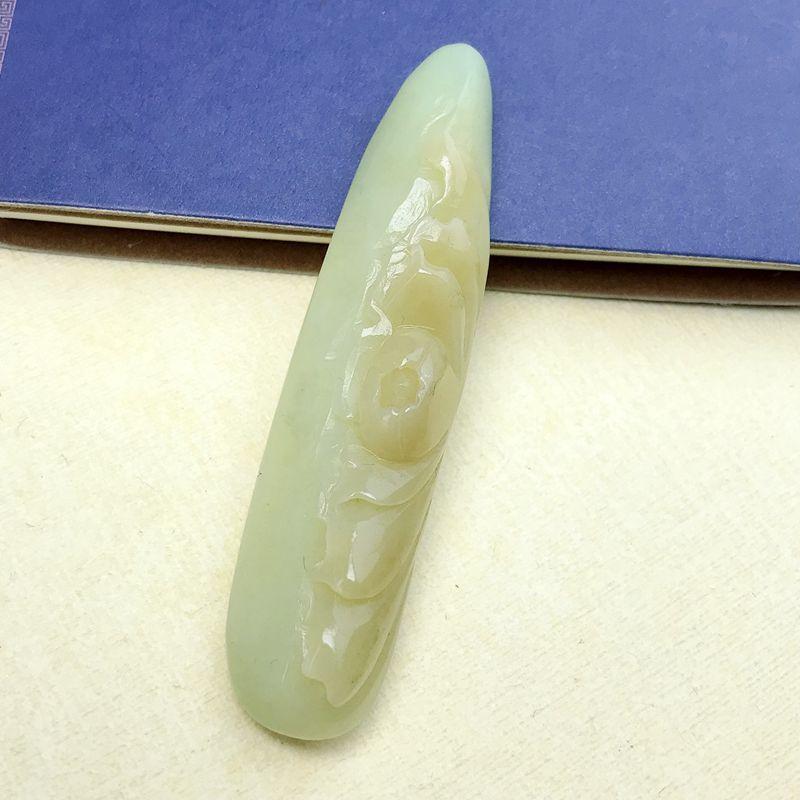 Hotan Jade Lotus pendant size 22 x 18, Hotan Jade cigarette holder 55*13mm or so, Hetian Jade Wenchang pen 60*...