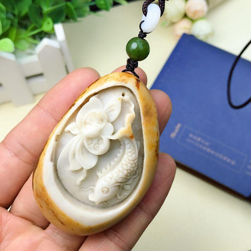 Colgante de Jade Hetian Natural Jade Hetian Tallado Verde Vintage Colgante para Hombre y Mujer Collar Colgante para Mujer Venta al por Mayor