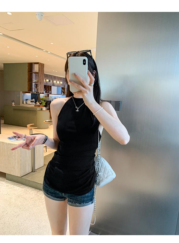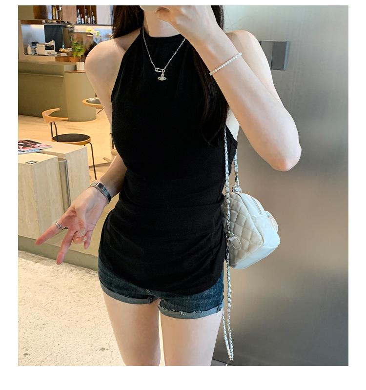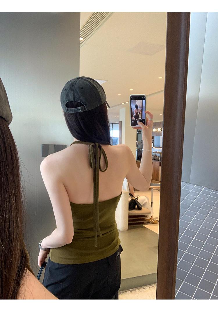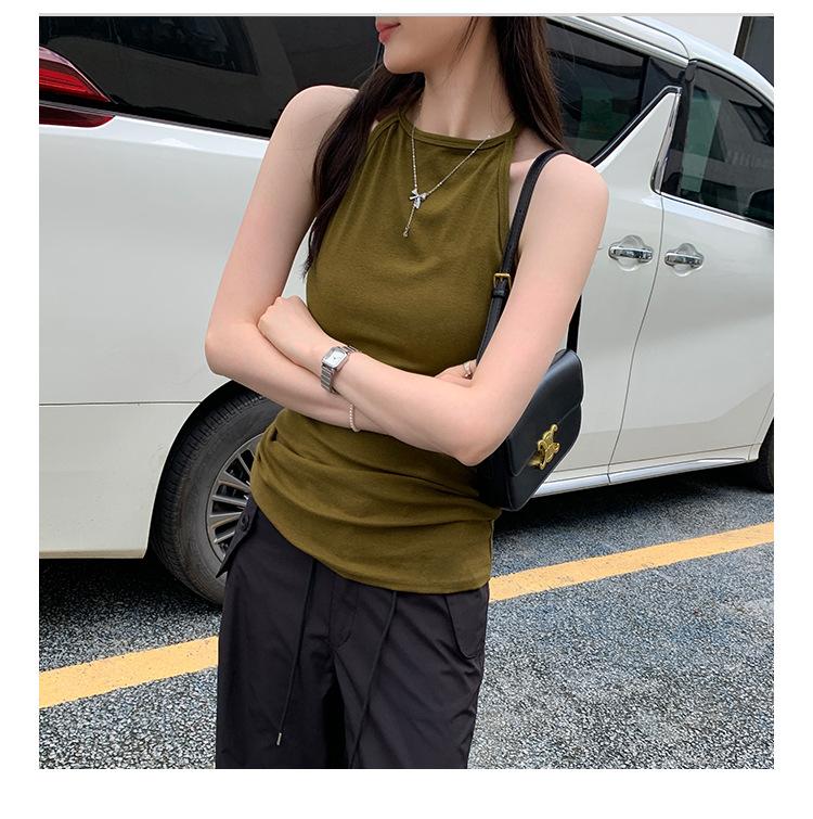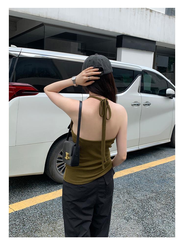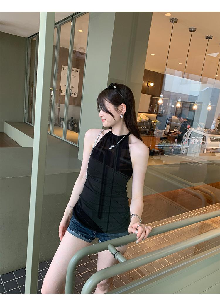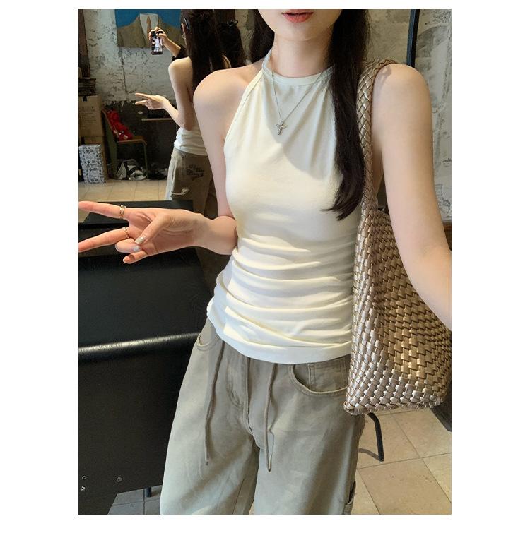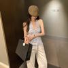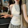 Camisola ajustada de estilo francés puro deseo para chica sexy con cuello halter y espalda atada 2025 Verano Nuevo Versión Coreana Top sin mangas