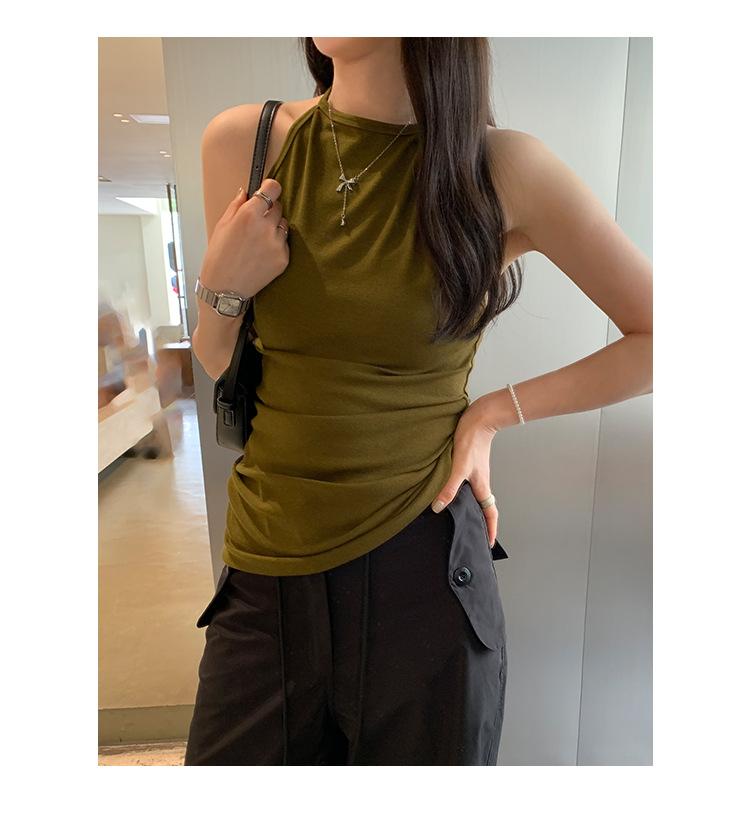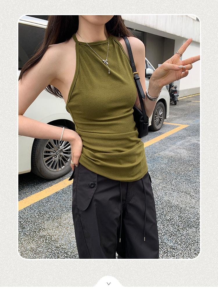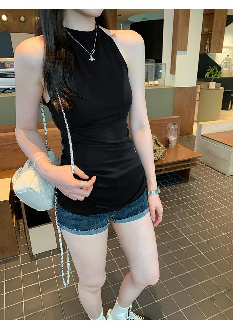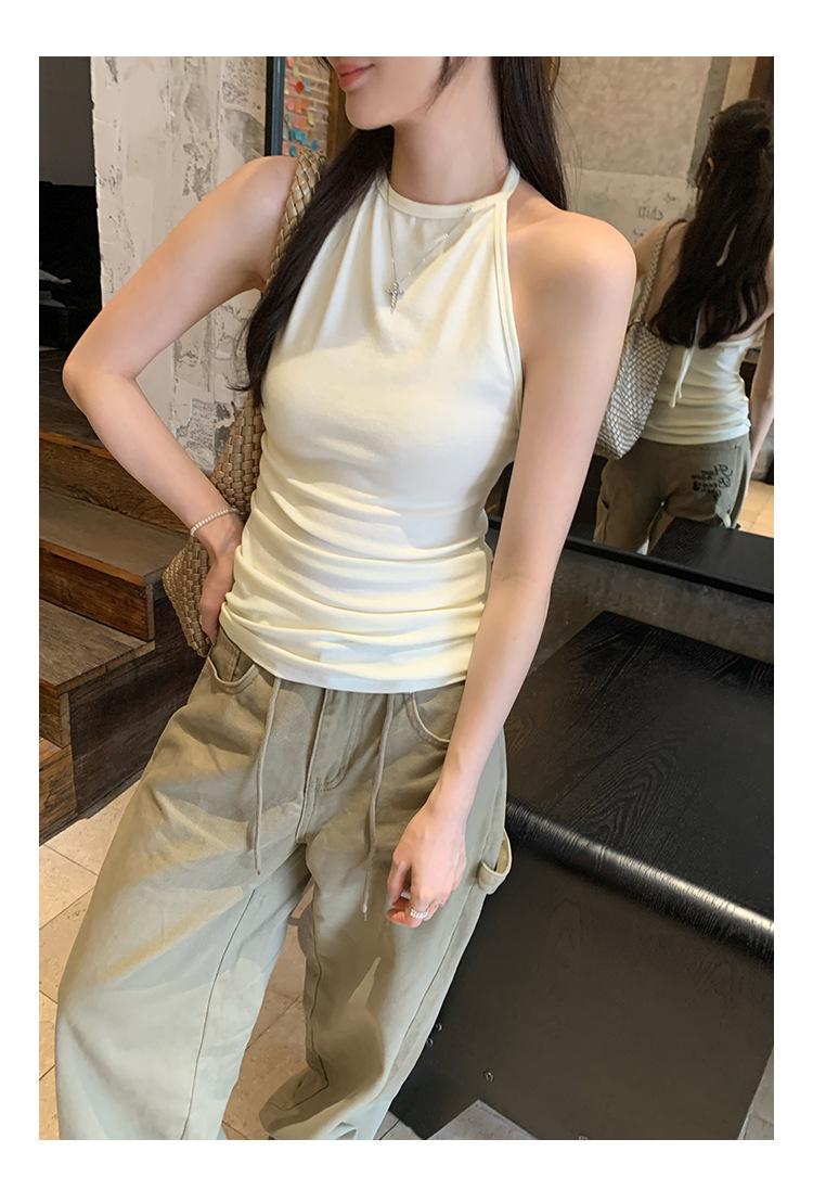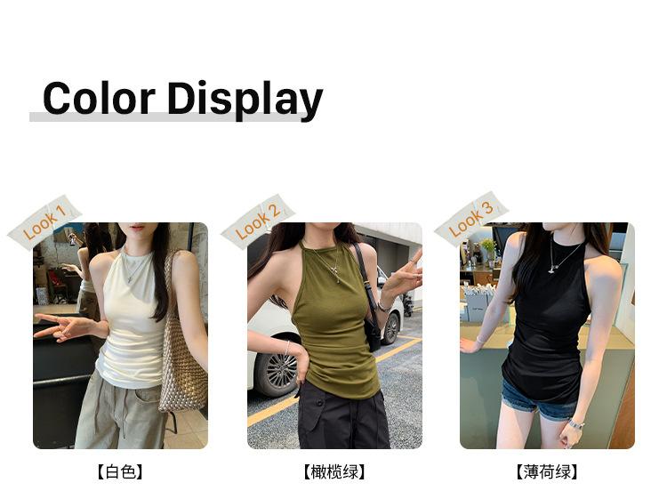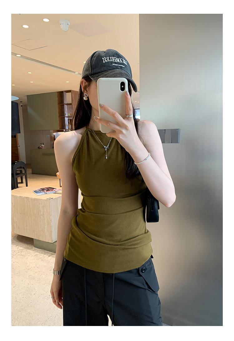 Camisola ajustada de estilo francés puro deseo para chica sexy con cuello halter y espalda atada 2025 Verano Nuevo Versión Coreana Top sin mangas