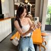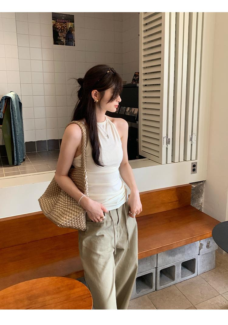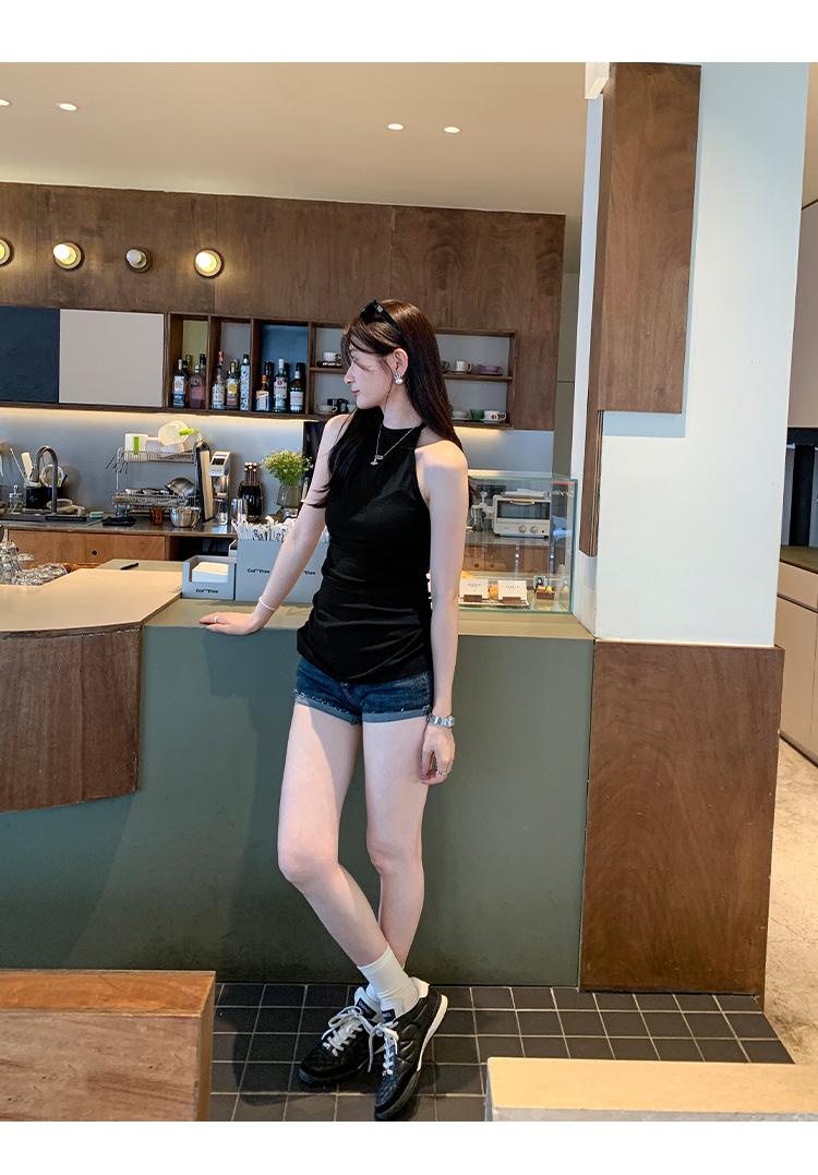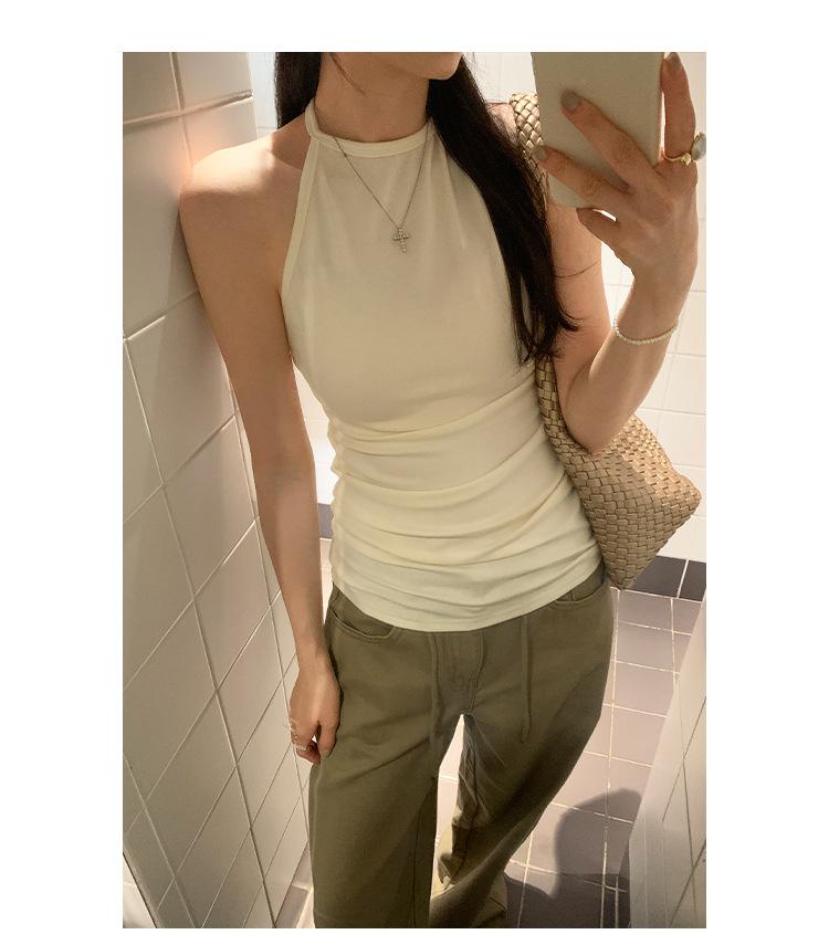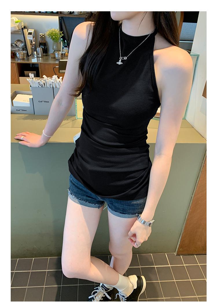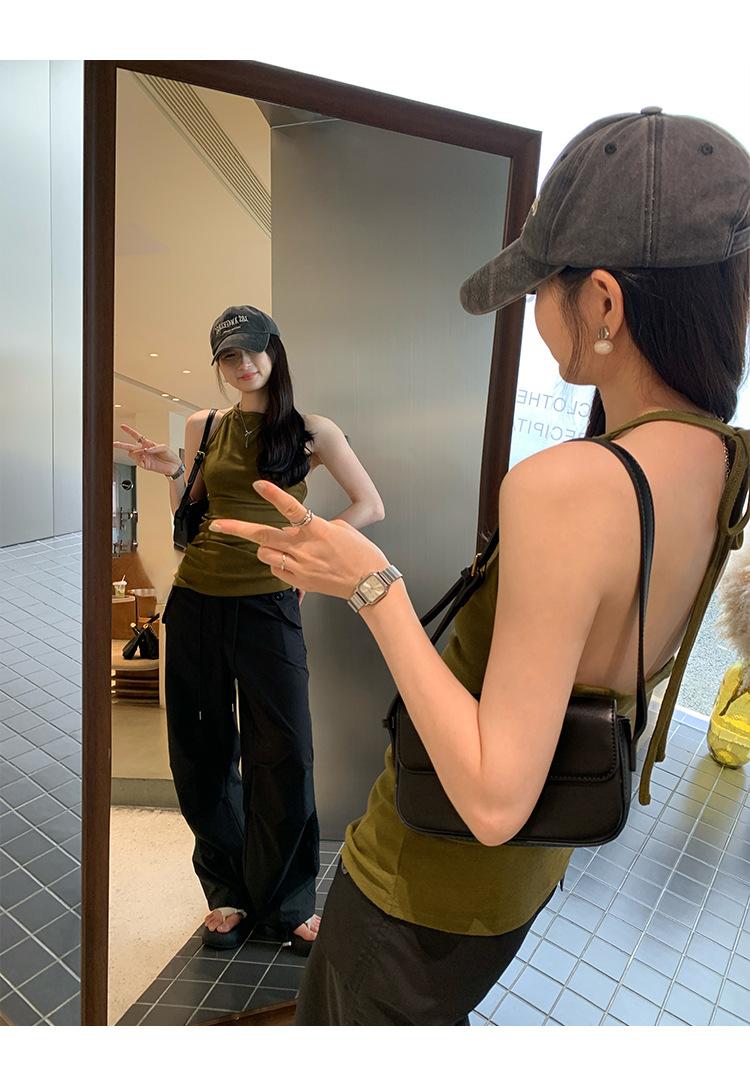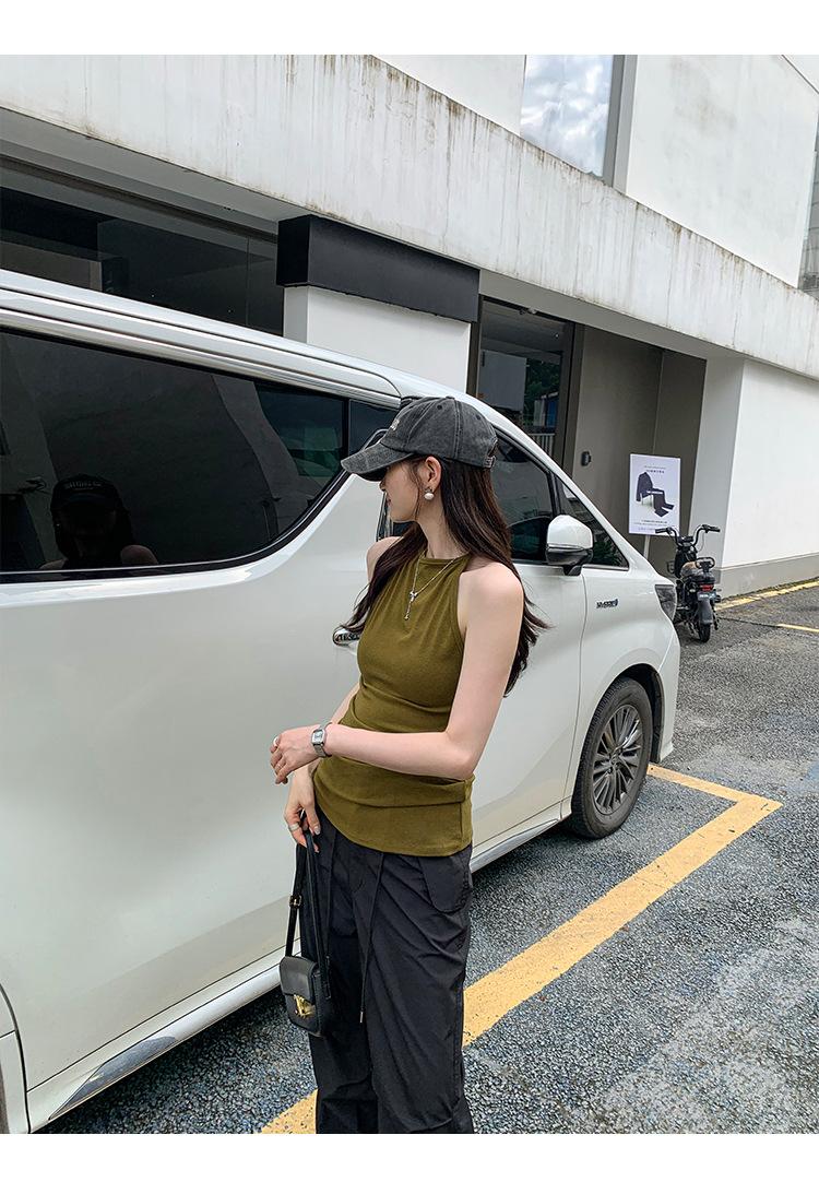 Camisola ajustada de estilo francés puro deseo para chica sexy con cuello halter y espalda atada 2025 Verano Nuevo Versión Coreana Top sin mangas