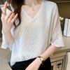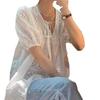 Blusa Blanca Francesa de Encaje Calado Verano 2025 Combinable Holgada de Manga Corta para Mujer Verano Manga Corta Manga Abullonada para Mujer