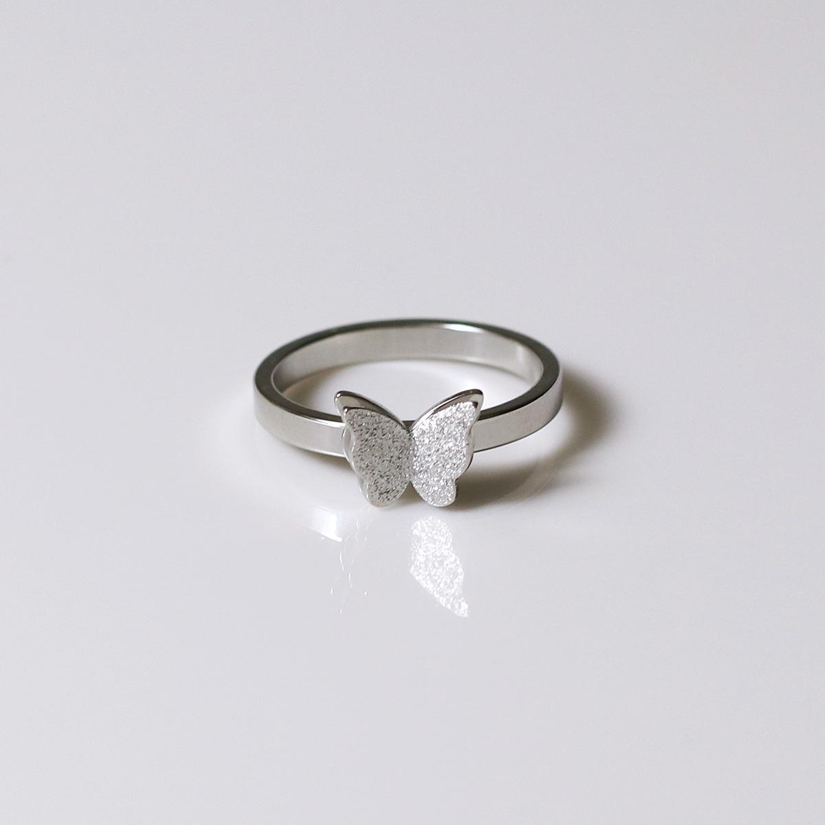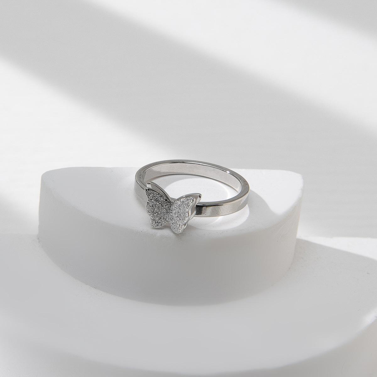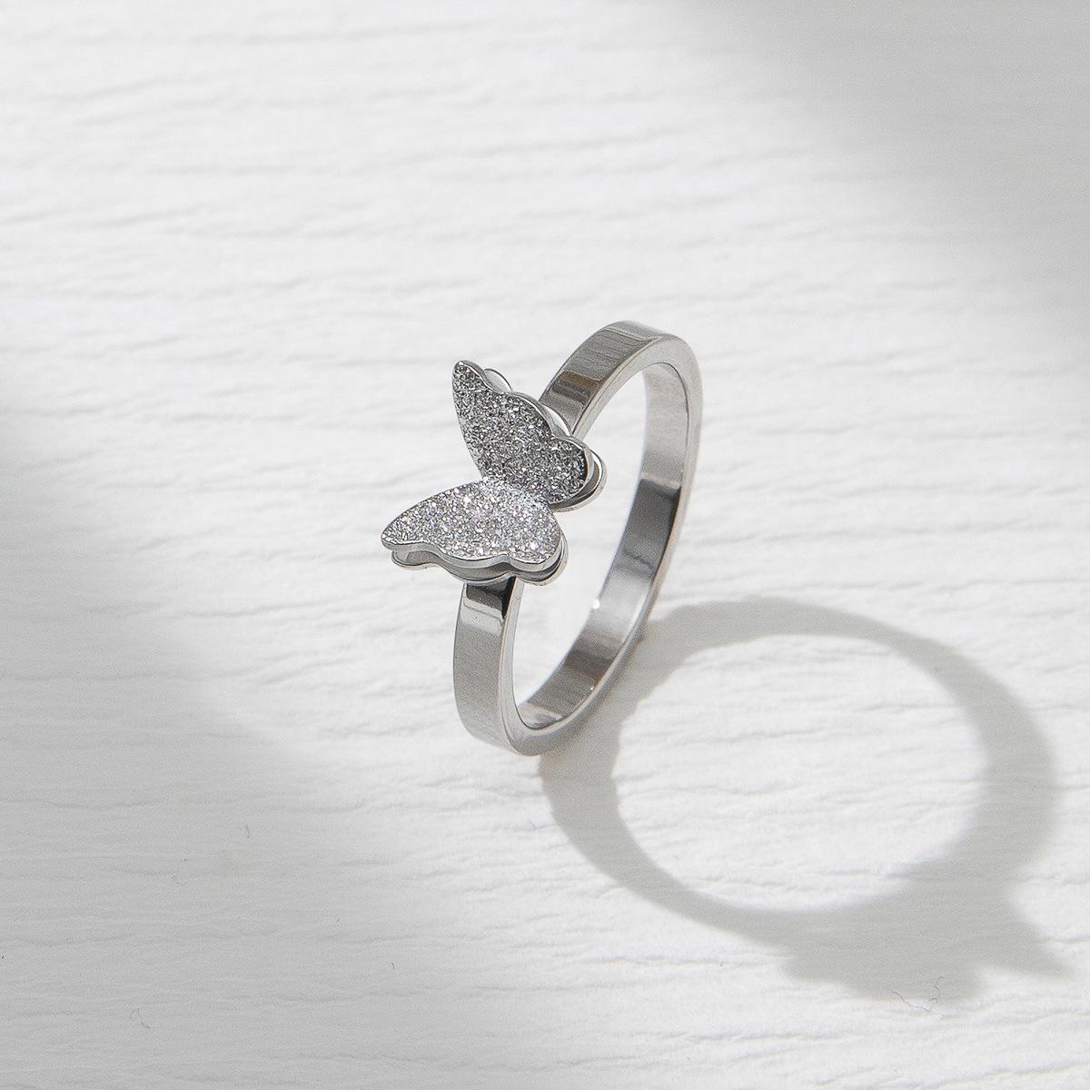 Anillo nuevo transfronterizo de mariposa, superficie de arena brillante, diamante, acero inoxidable, anillo de moda para mujer