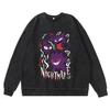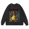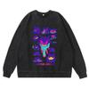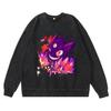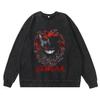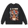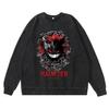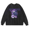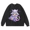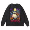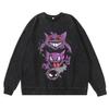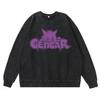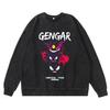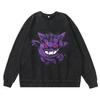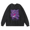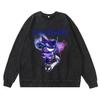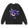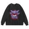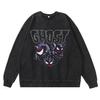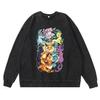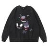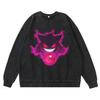 Sudadera de cuello redondo de algodón de calle de marea retro de calle de animación de elfo mascota de piedra fantasma vieja lavada pesada 360g