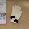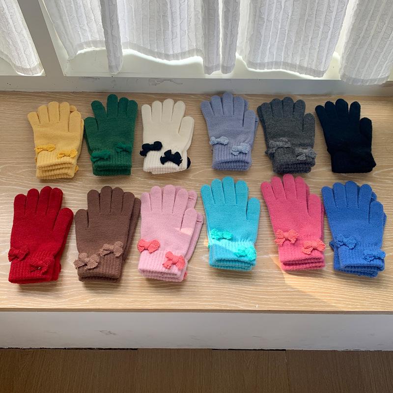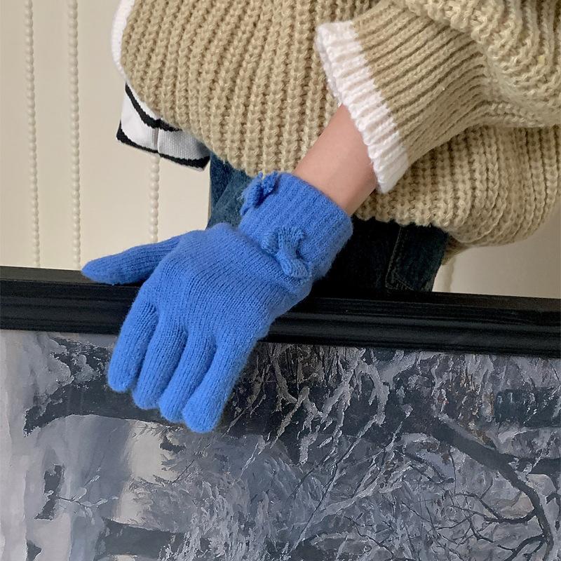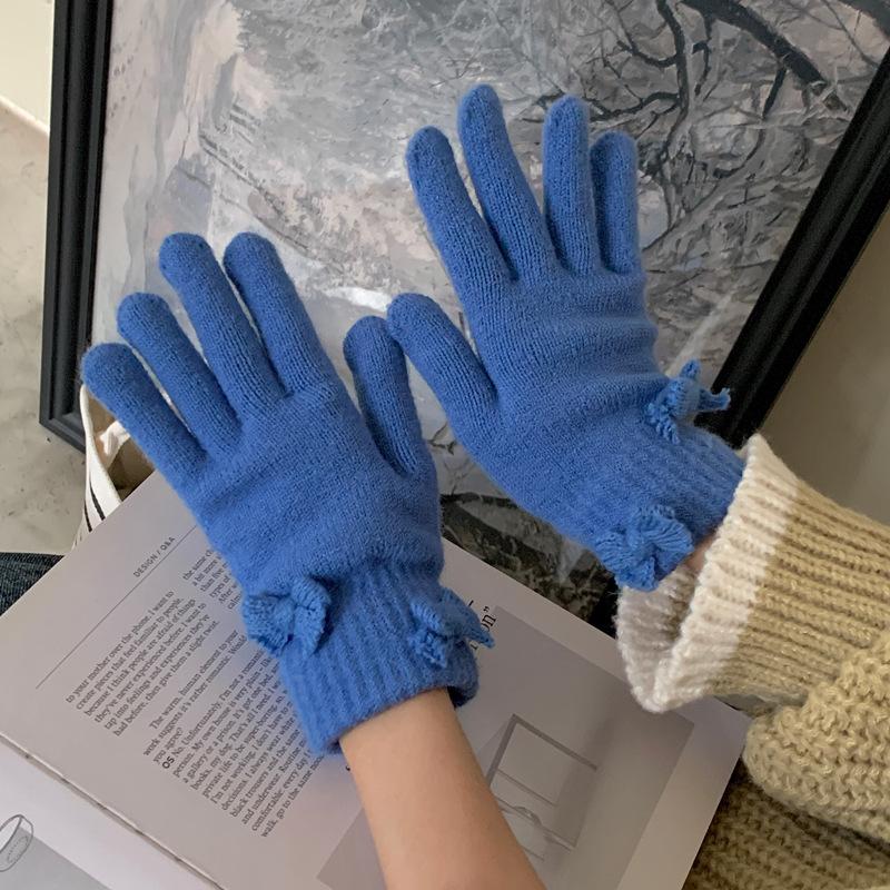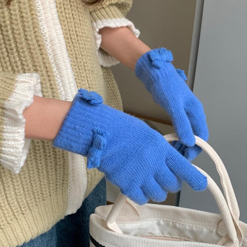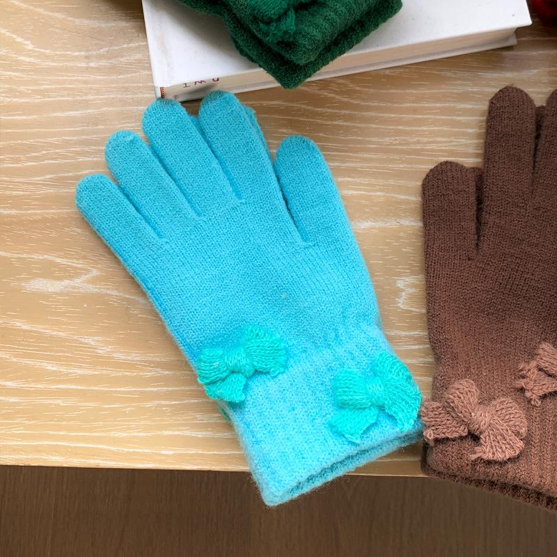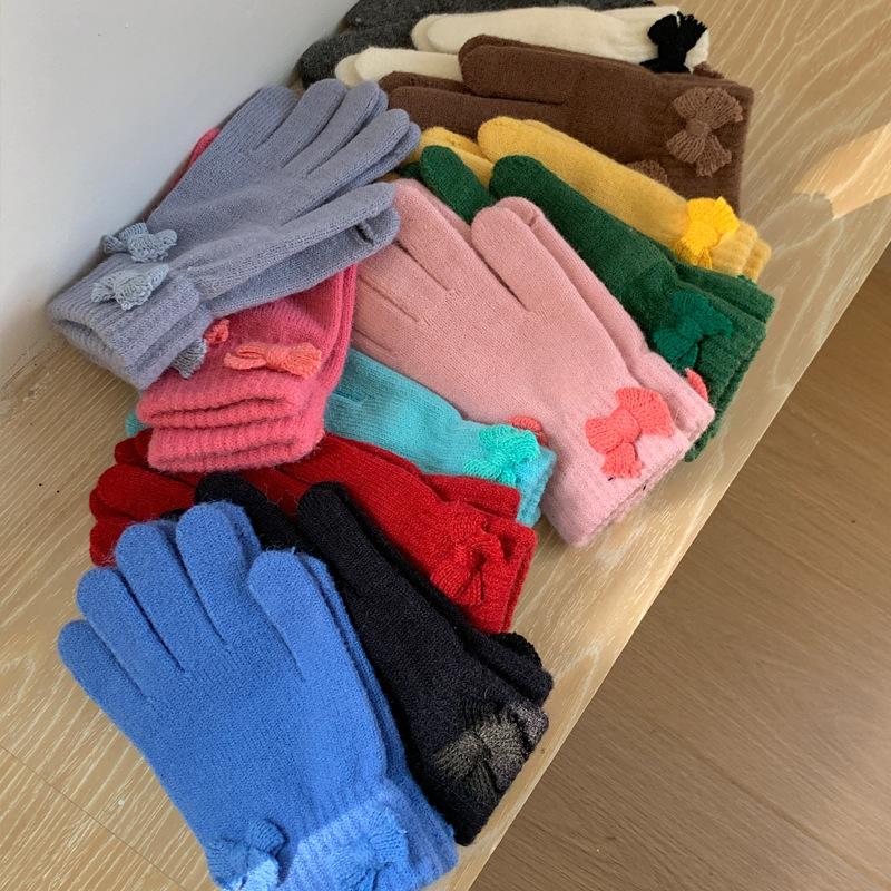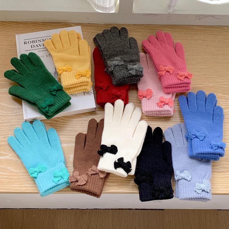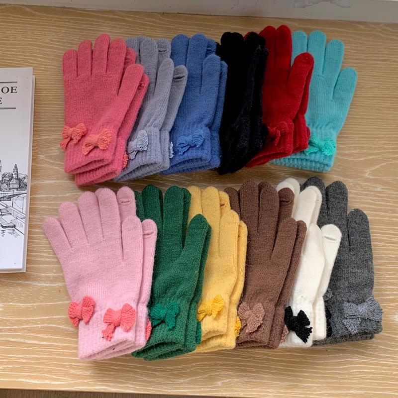 Guantes de Lazo de Color Sólido Otoño e Invierno para Mujer Lana Cálidos Sin Dedos Estudiante Escritura Pantalla Táctil Tejido Grueso Dedo Completo