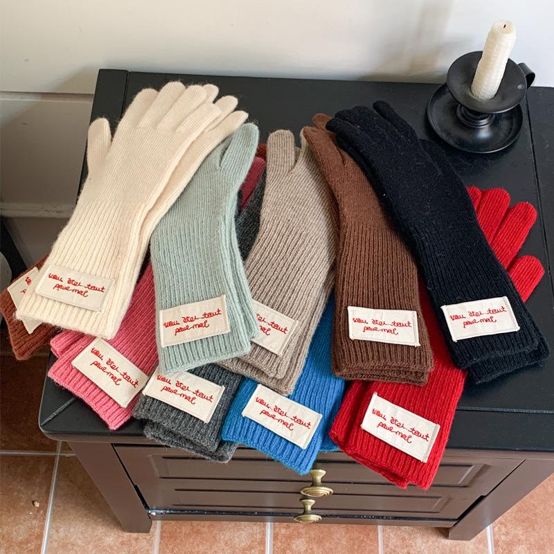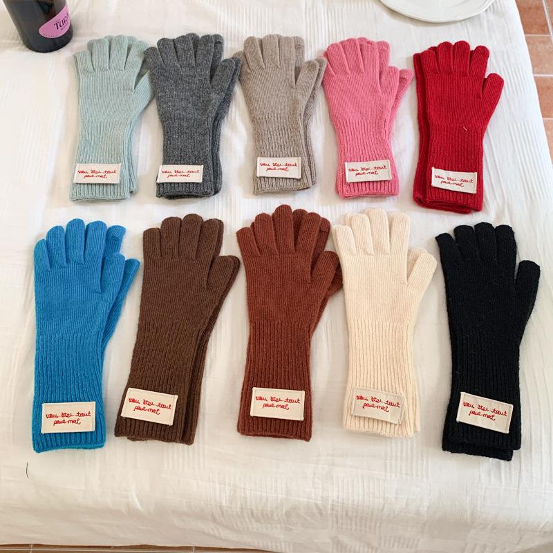 Guantes de lana gruesos para ciclismo de invierno al aire libre para mujer, color sólido, sin dedos, con pantalla táctil, a prueba de frío, cálidos, tejidos