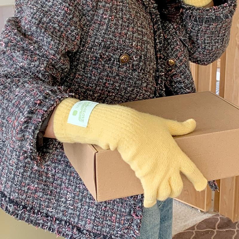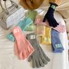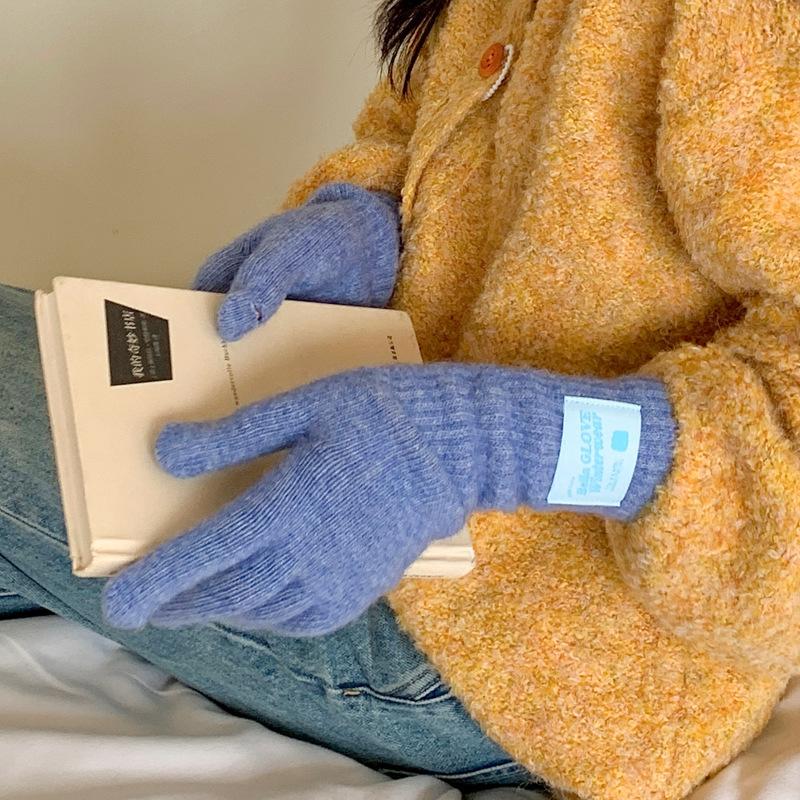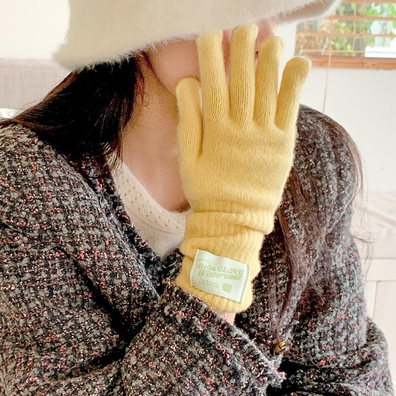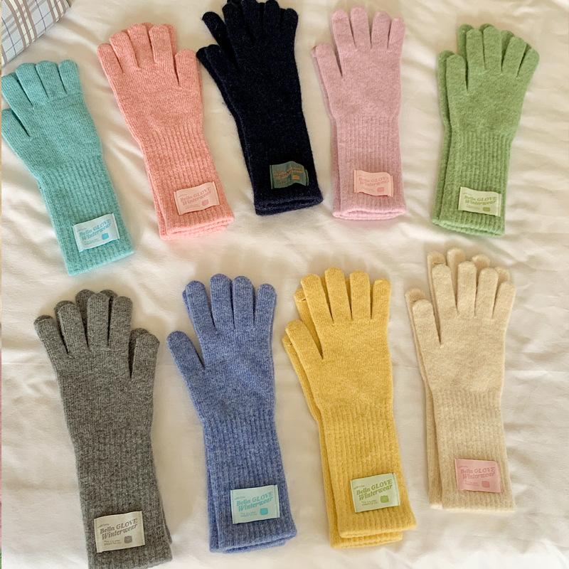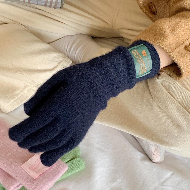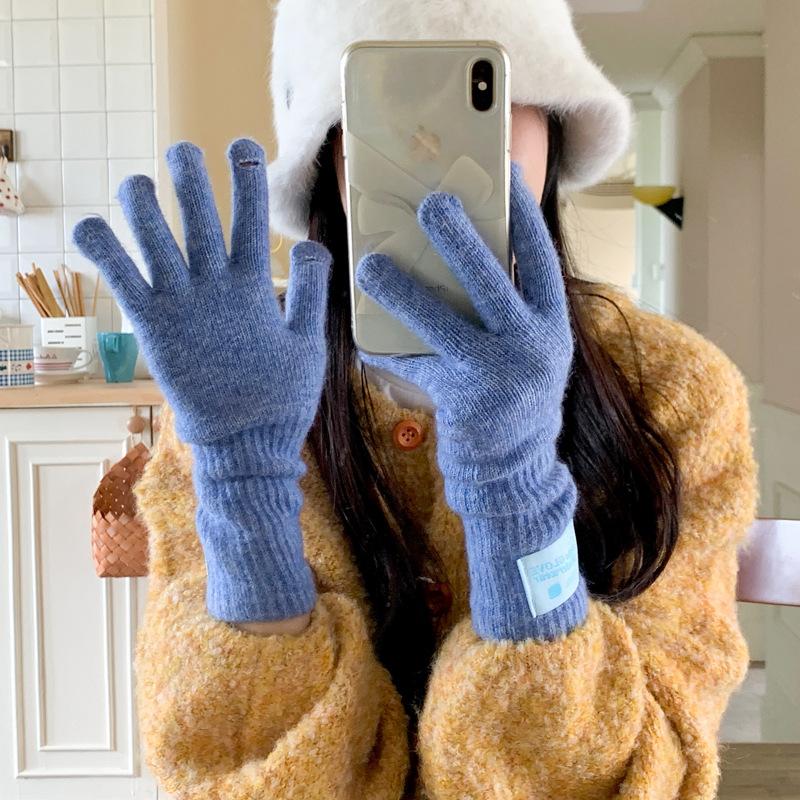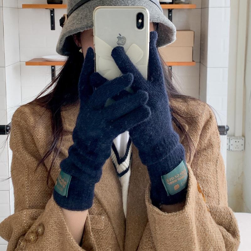 Guantes de otoño e invierno para mujer, lindos, cálidos, para ciclismo, tejidos, largos, con etiqueta, invierno, pantalla táctil, versátiles, de cinco dedos, color sólido
