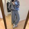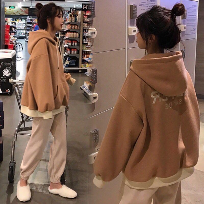Ins súper popular otoño e invierno estilo coreano suelto casual traje deportivo suéter con forro polar pantalones harem traje de dos piezas para estudiante moda femenina