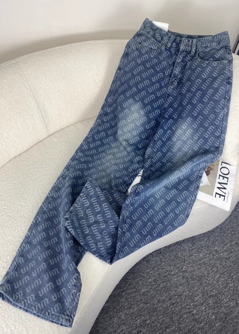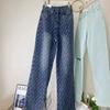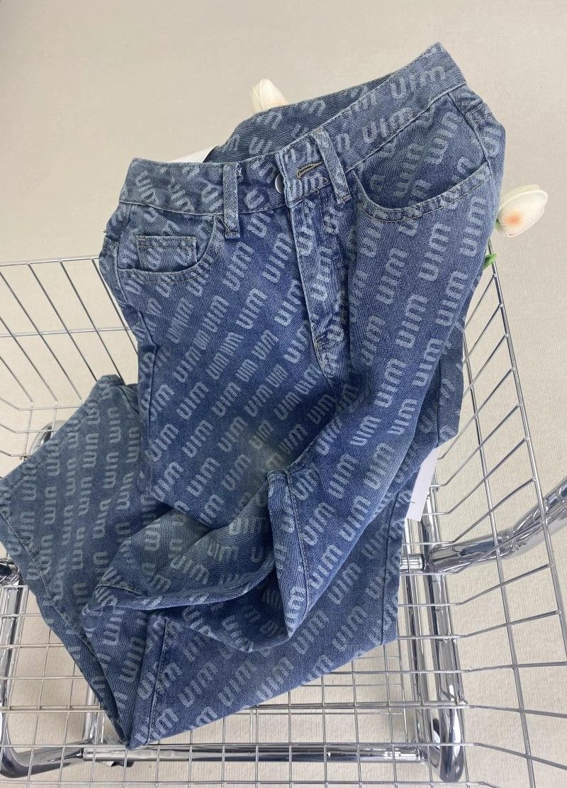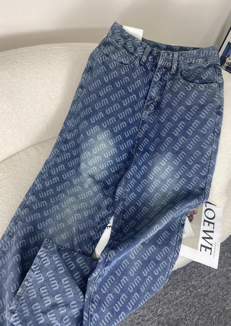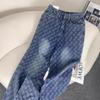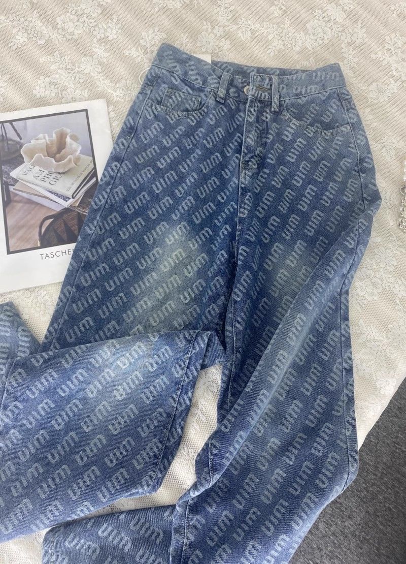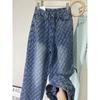 Otoño 2024 Jacquard Alfabeto Nuevo Sentido del Diseño Pantalones de Pierna Ancha Estampados Sueltos Adelgazantes Jeans de Pierna Recta
