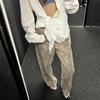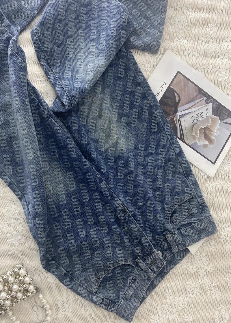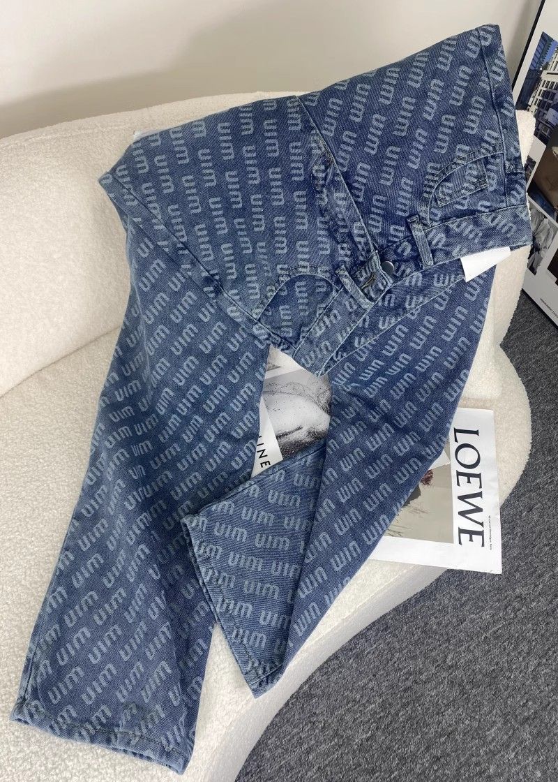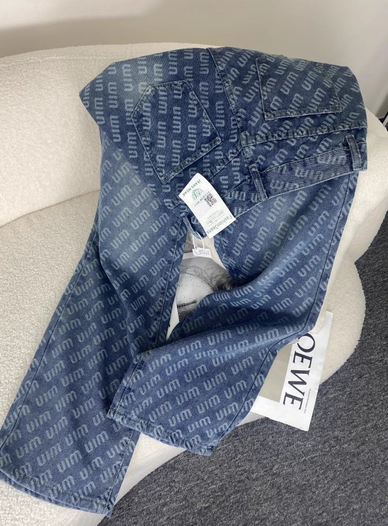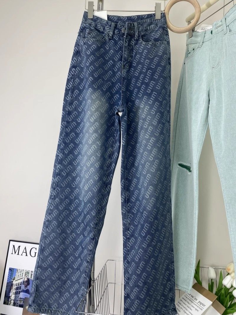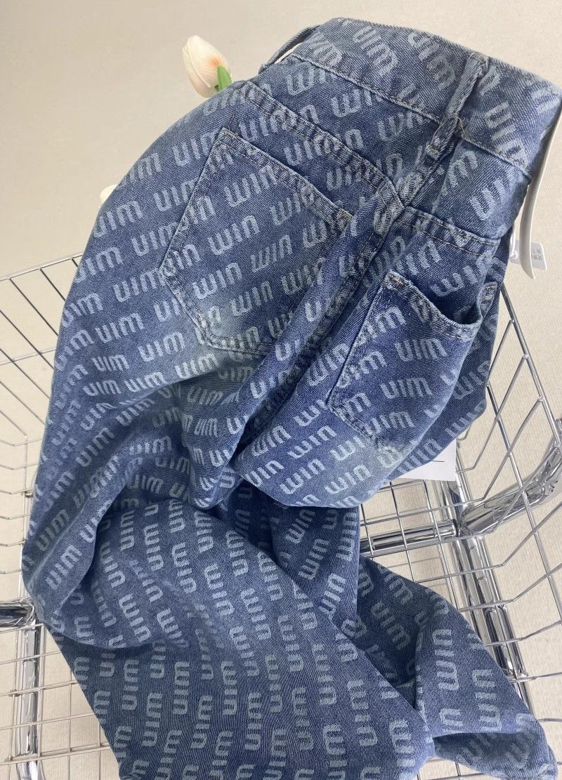 Otoño 2024 Jacquard Alfabeto Nuevo Sentido del Diseño Pantalones de Pierna Ancha Estampados Sueltos Adelgazantes Jeans de Pierna Recta