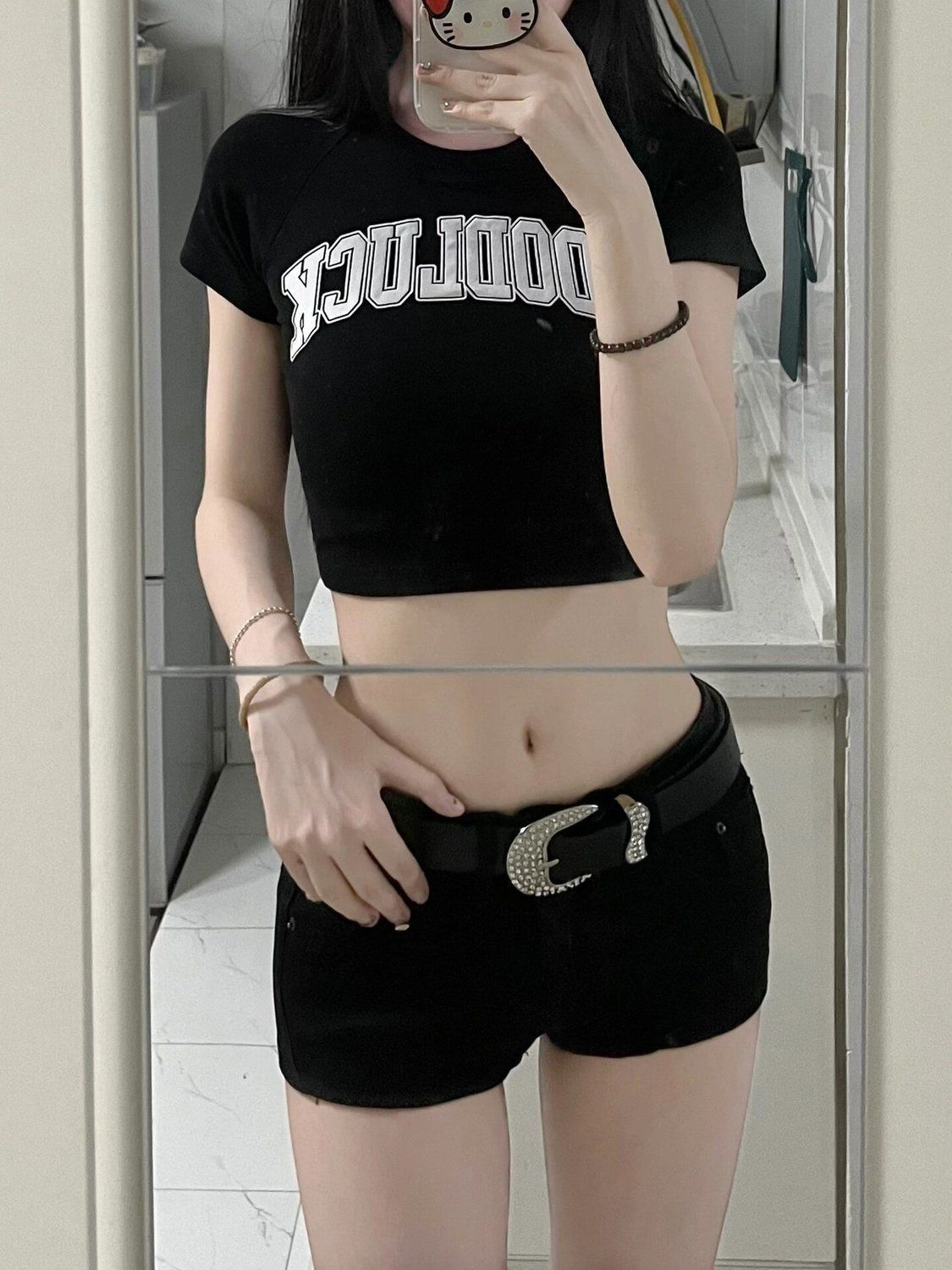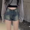 Shorts de mezclilla retro americanos dulces y picantes para mujer 2024 Ropa de verano Sexy Cintura alta Ajustados Adelgazantes Look Desgastado Línea A Hot