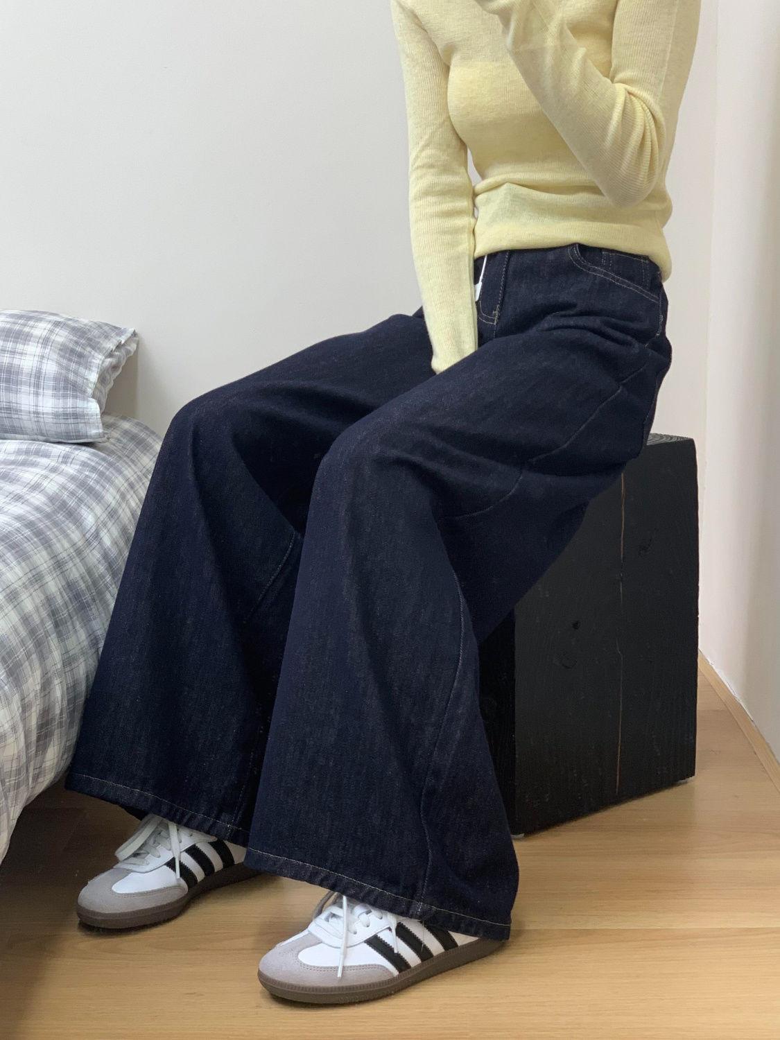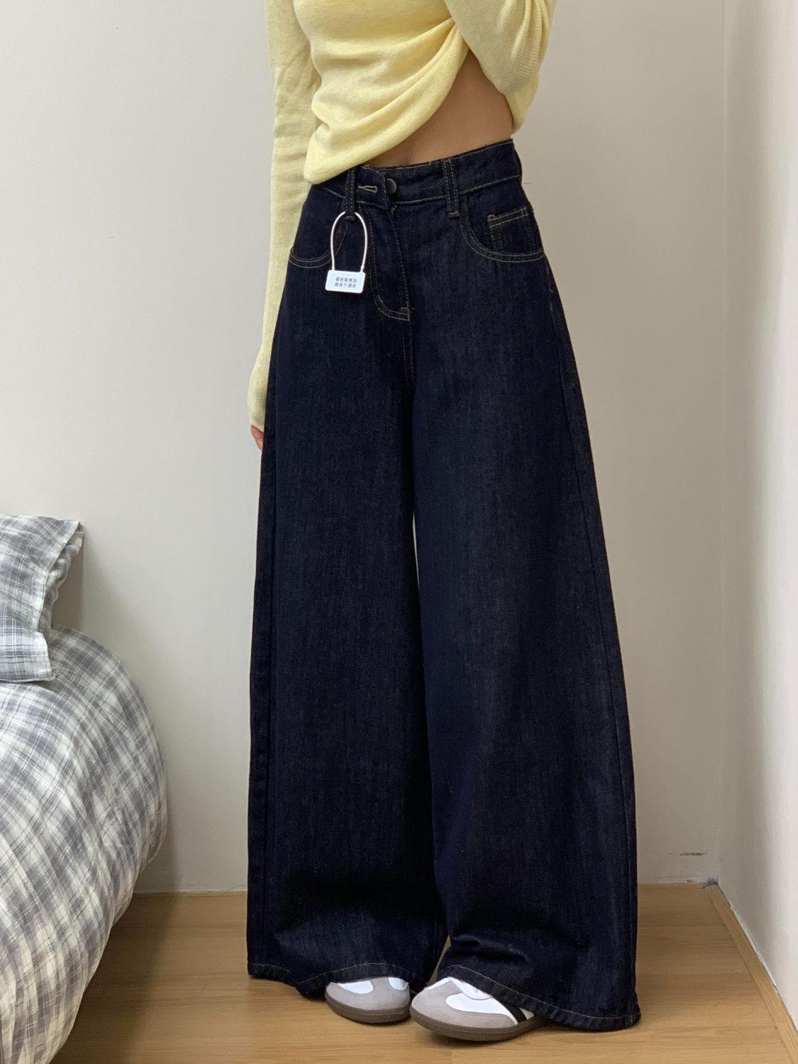 Jeans Retro Americanos 2024 Nuevos azul oscuro Pierna Ancha Cintura Alta Pantalones Holgados Pantalones Rectos