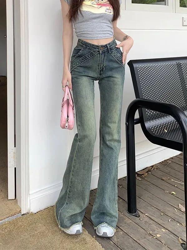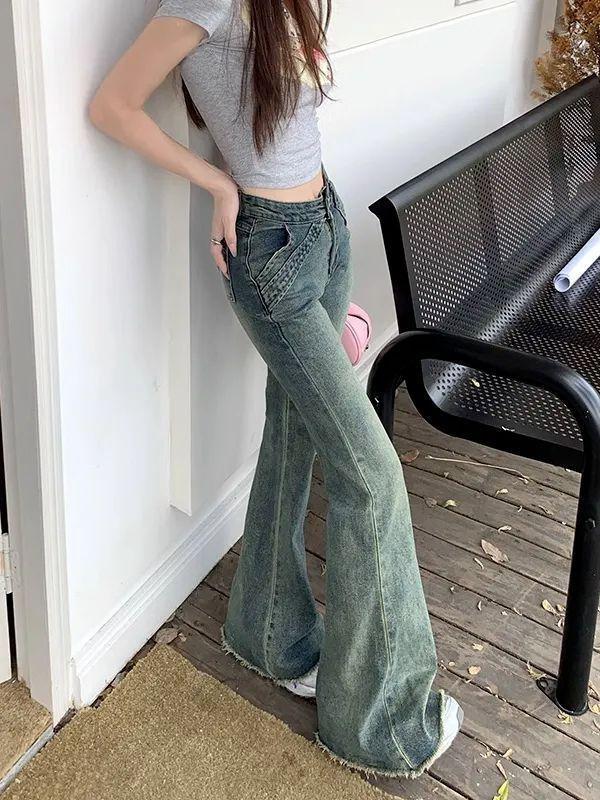 2024 Primavera y Otoño Nuevo Estilo Micro-lar Jeans para Mujer Estilo Americano Chica Caliente Cintura Alta Elásticos Ajustados Adelgazantes Pantalones de Herradura