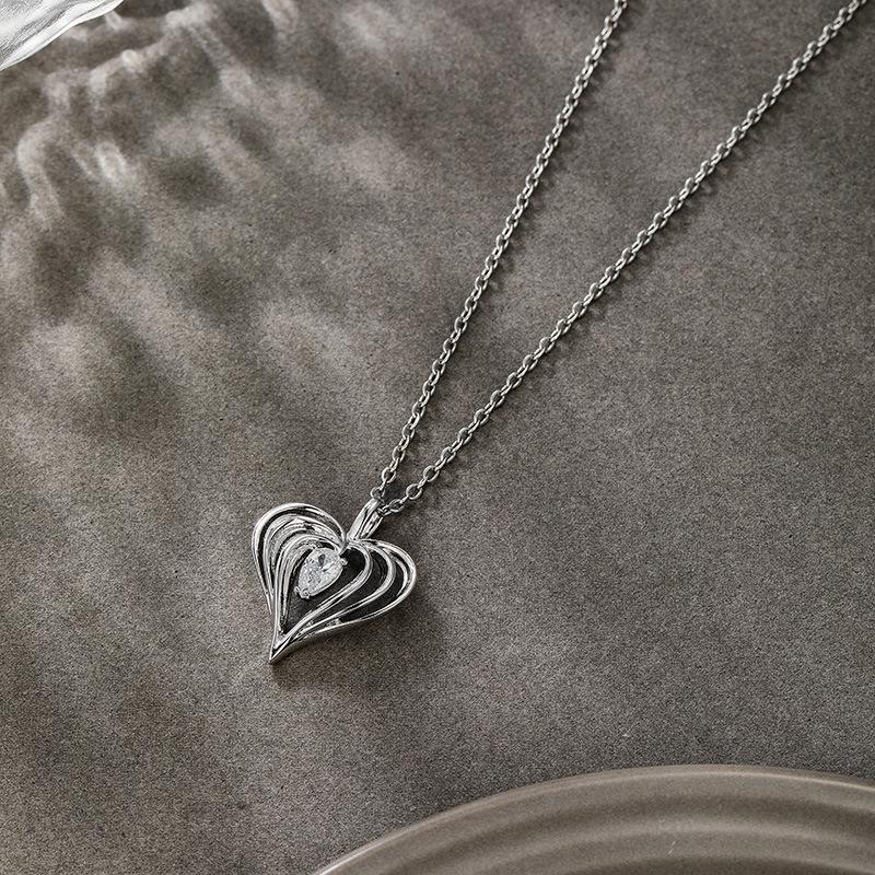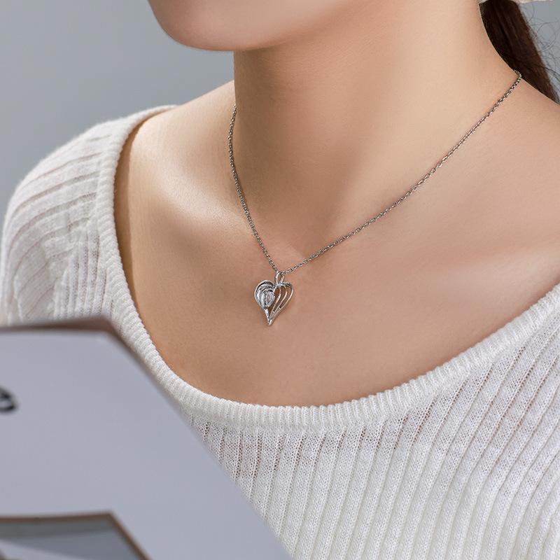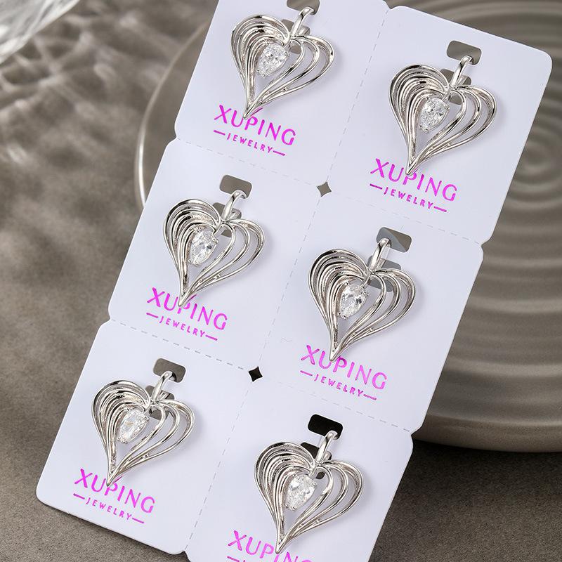 Nuevo Collar Colgante de Corazón Calado de Aleación Chapado en Oro Blanco de Moda de Xuping con Micropavé de Zirconia