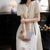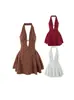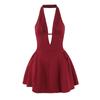Vestido Dulce y Picante Estilo Francés Estilo Europeo Lujo Ligero Plisado Cuello en V Profundo Sin Espalda Vestido de Cuello Ajustado Adelgazante