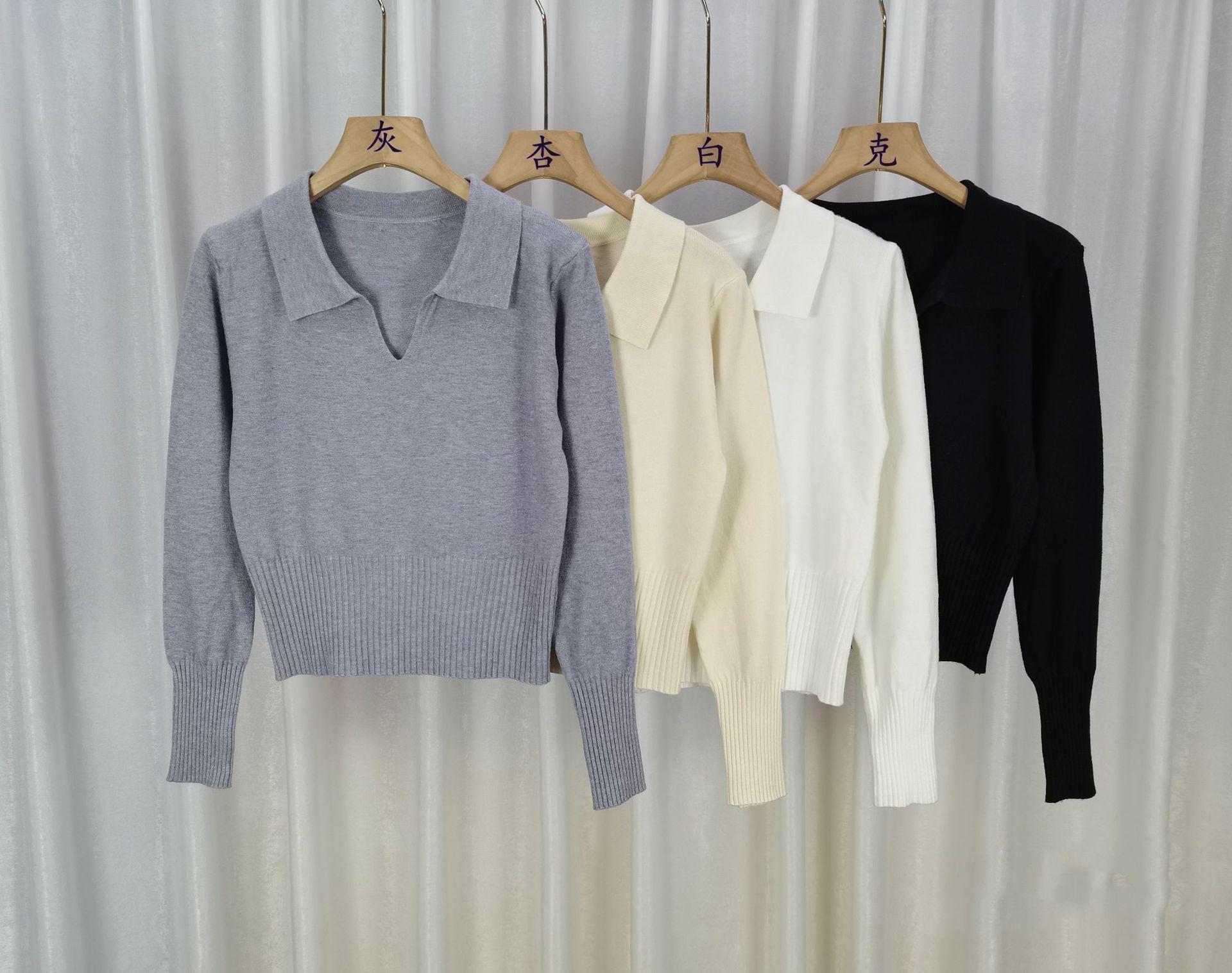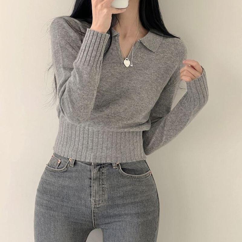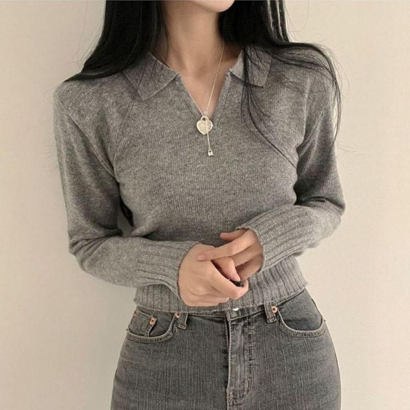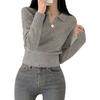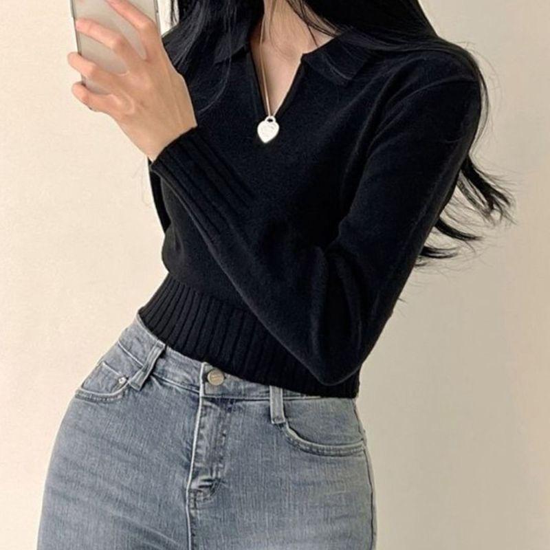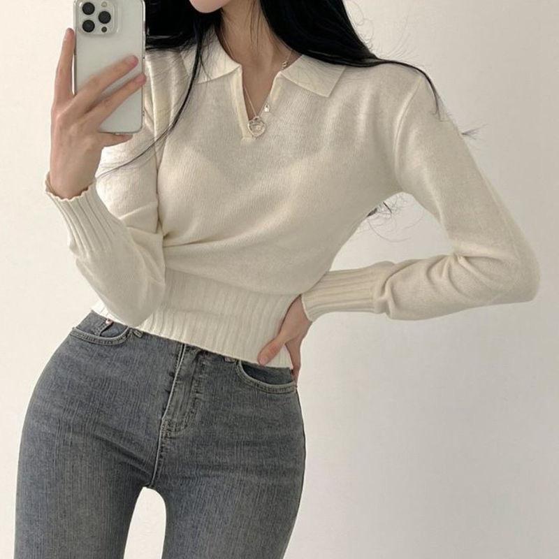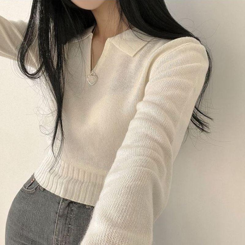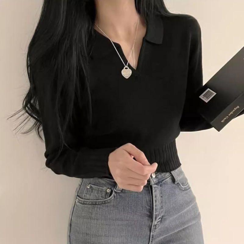 Pequeño suéter básico POLO de otoño e invierno, ajustado, corto, para chica hot, ceñido a la cintura, nicho, francés, top de manga larga