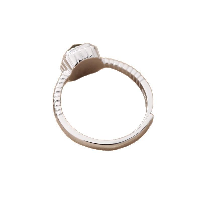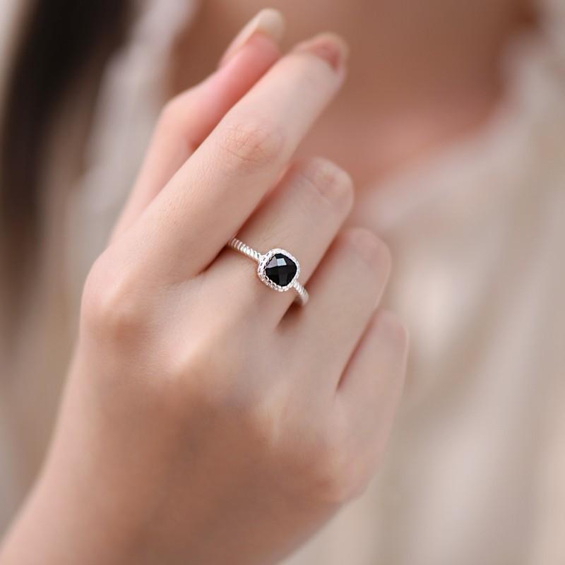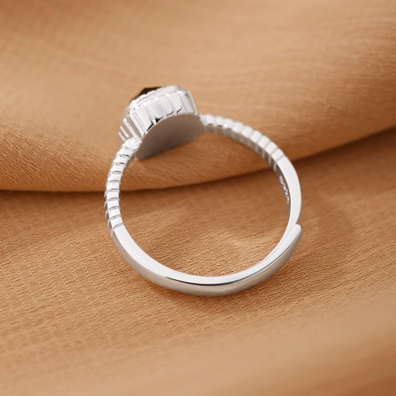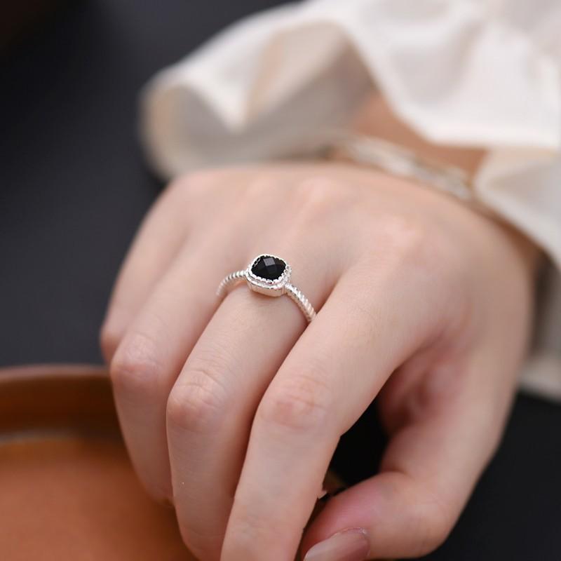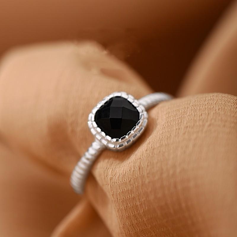 Anillo Nuevo Retro de Plata Chapada con Zircón Negro Diseño Nicho de Alta Gama para Mujer Anillo Banda para Dedo Índice Regalo