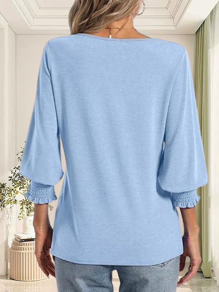 2025 Verano Amazon Nueva Estación Independiente Europeo y Americano TikTok Transfronterizo Comercio Exterior Ropa de Mujer Camiseta de Siete Mangas con Cuello en V