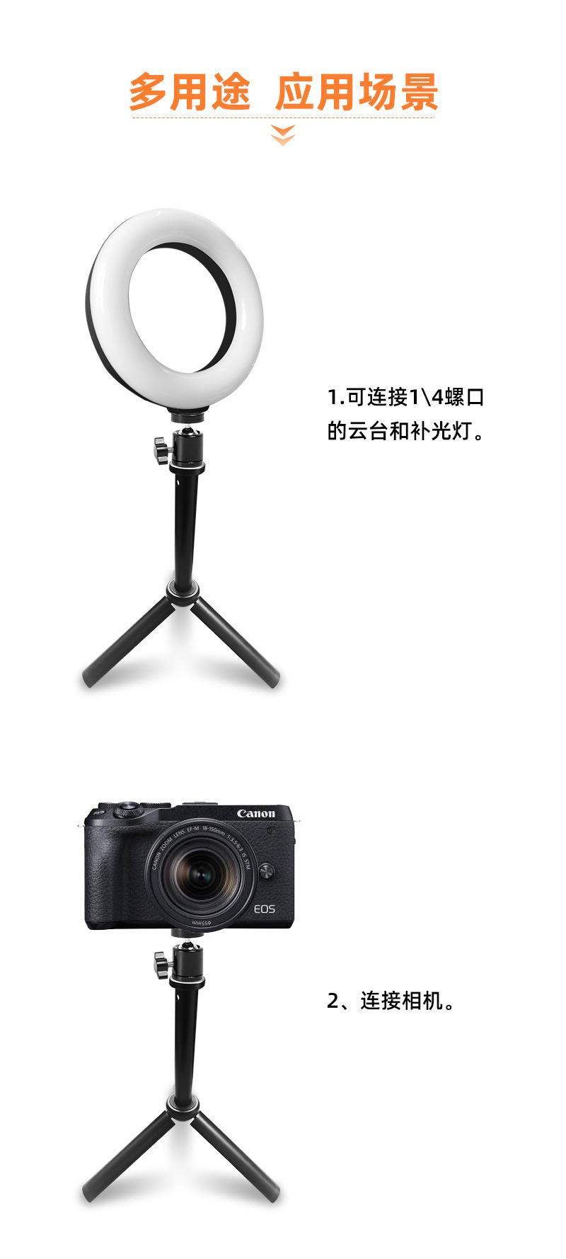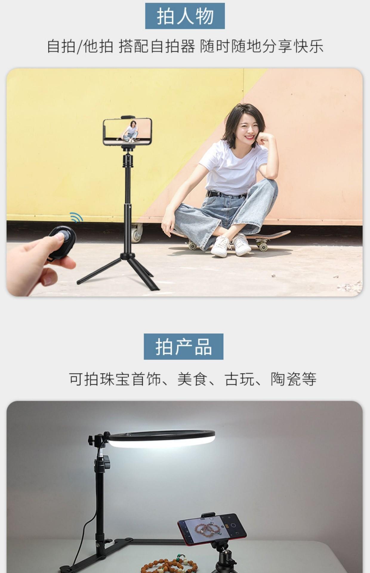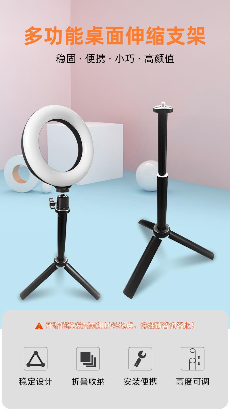2 section telescopic pole desktop tripod 10 inch ring lamp