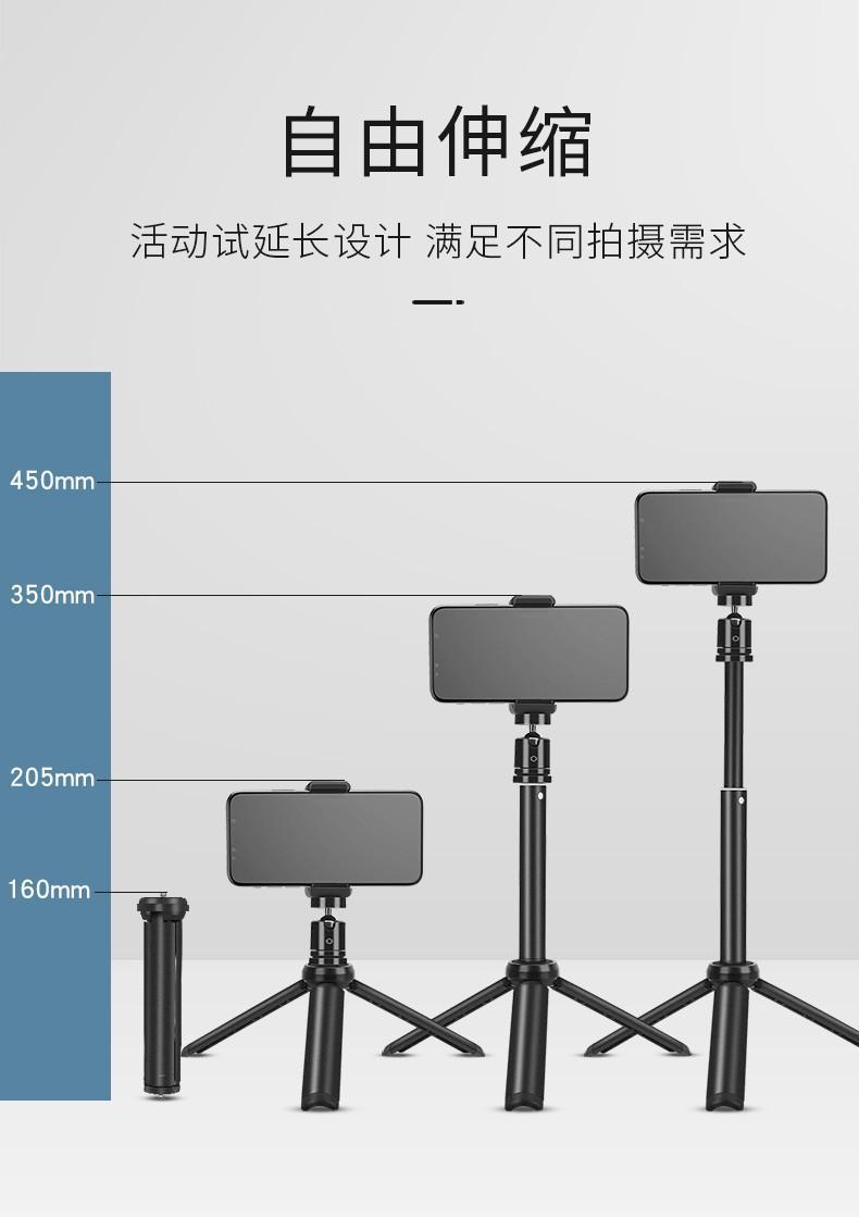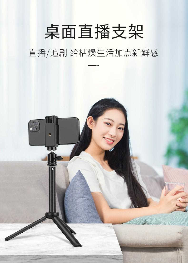 Luz de elevación de escritorio en vivo, dos trípodes telescópicos, cámara, mini trípode, soporte de escritorio para teléfono móvil